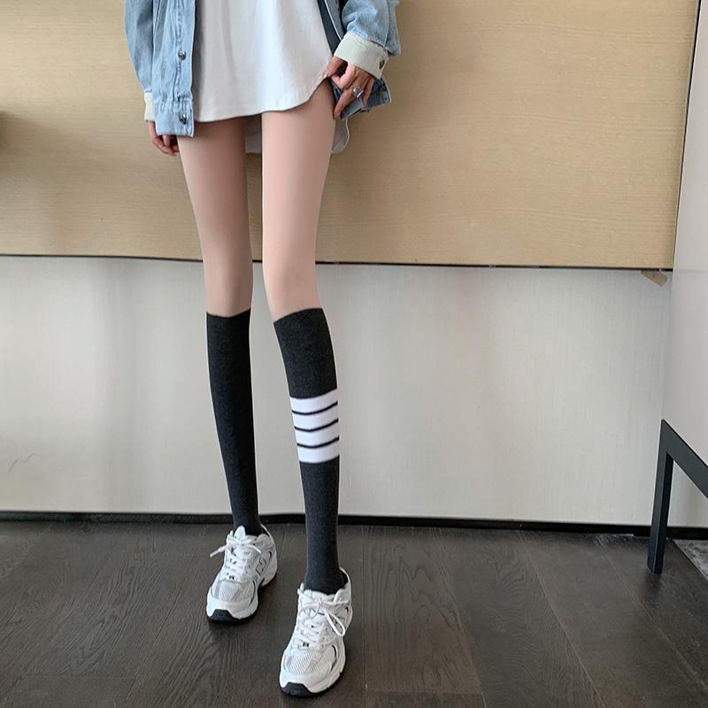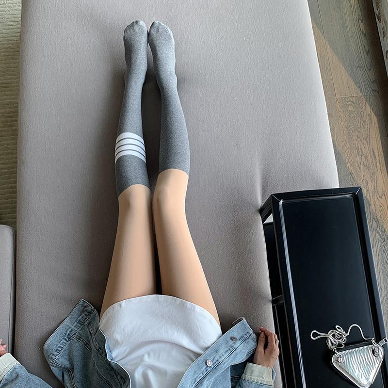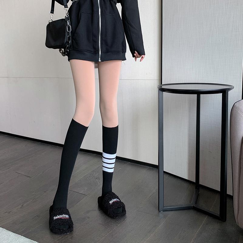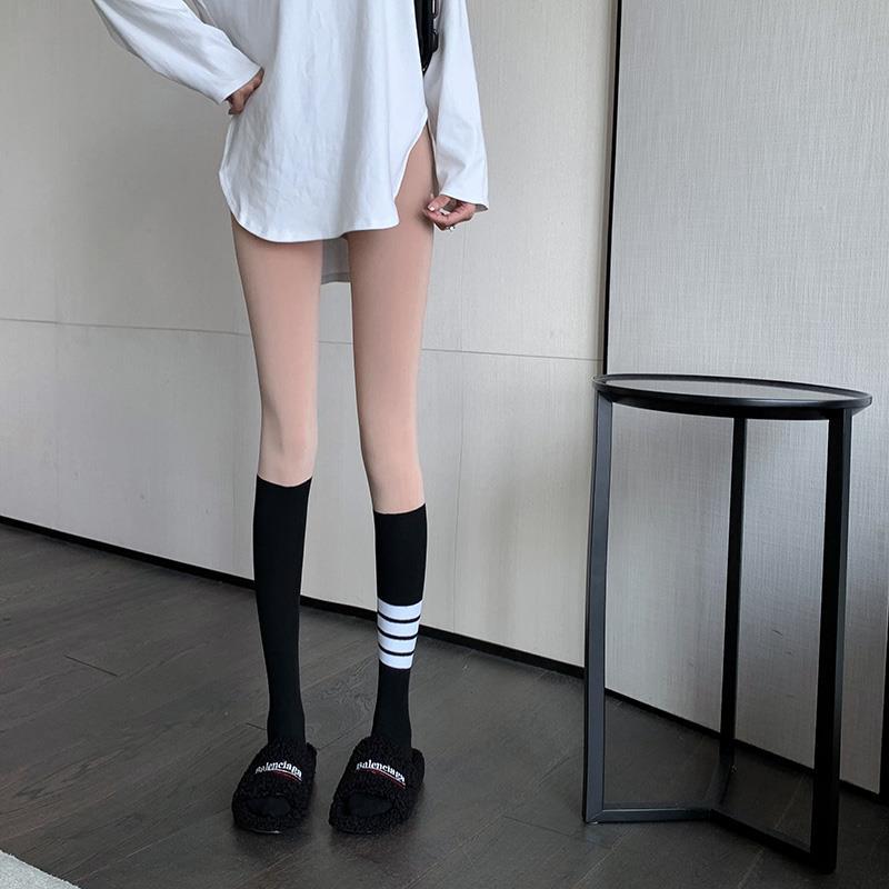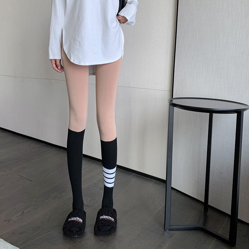 Calcetines ligeros para mujer, artefacto de costura fina, falsos de dos piezas, forrados de vellón, color carne desnuda, primavera y otoño, cintura alta, parte inferior, calcetines de pantalón de una pieza