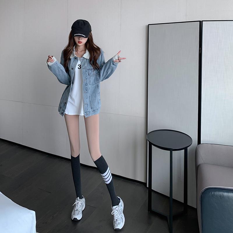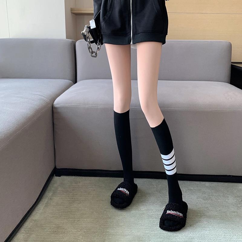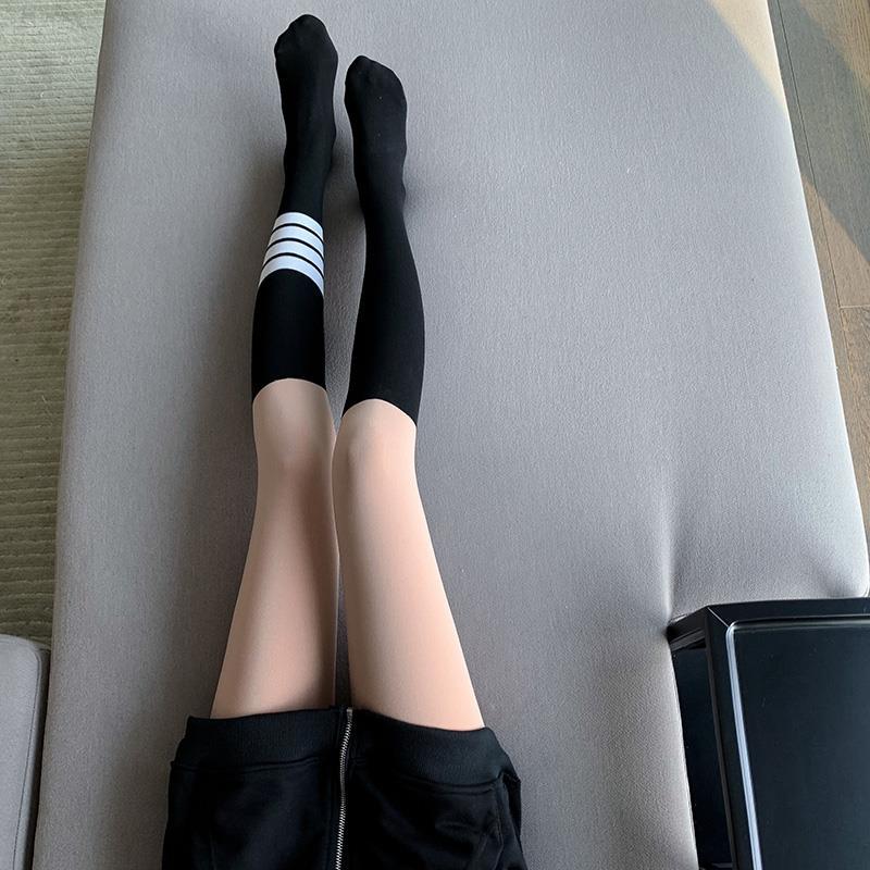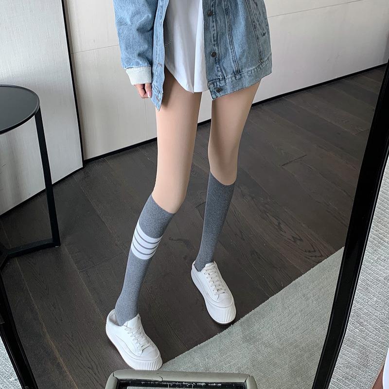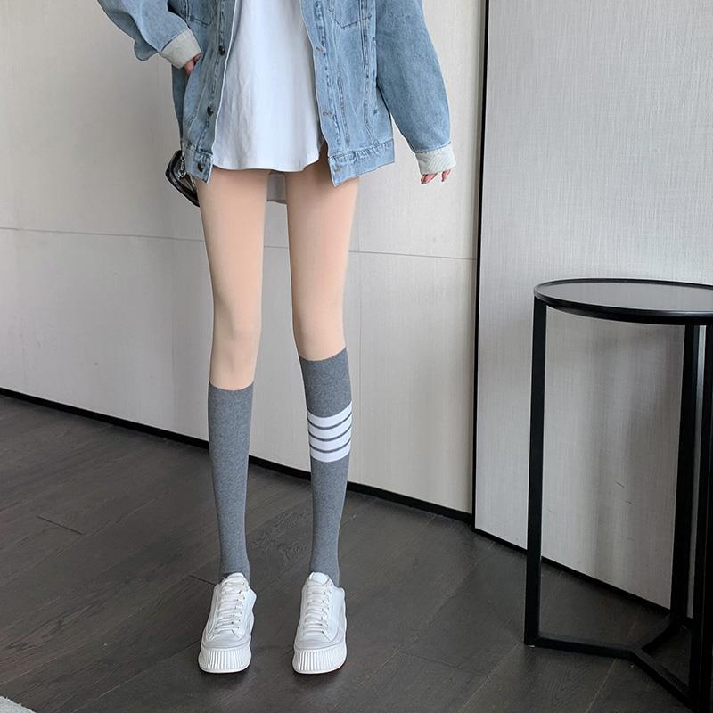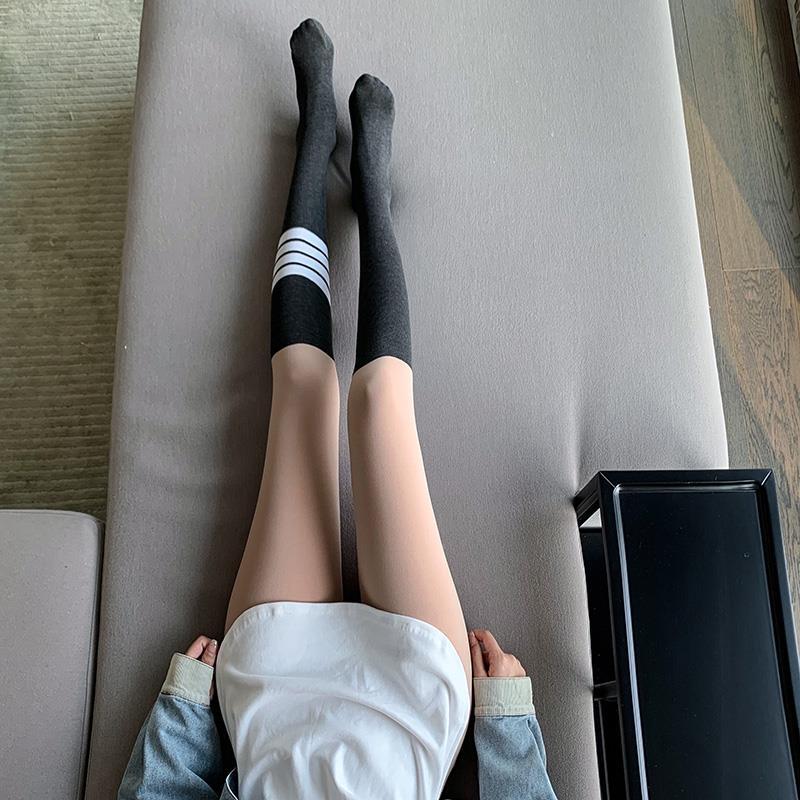 Calcetines ligeros para mujer, artefacto de costura fina, falsos de dos piezas, forrados de vellón, color carne desnuda, primavera y otoño, cintura alta, parte inferior, calcetines de pantalón de una pieza
