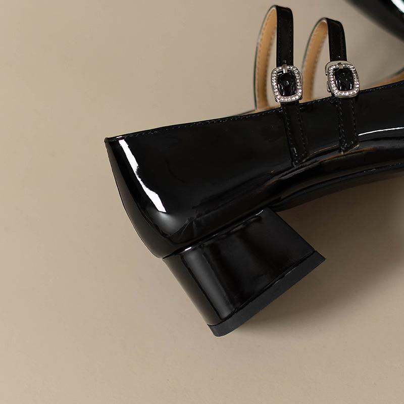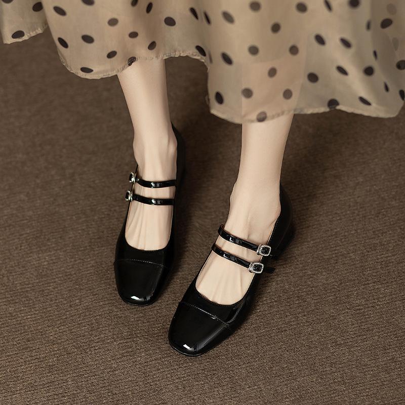 Zapatos Mary Jane retro versátiles plateados para mujer 2023 primavera y otoño tacón grueso hebilla corte bajo tacón medio