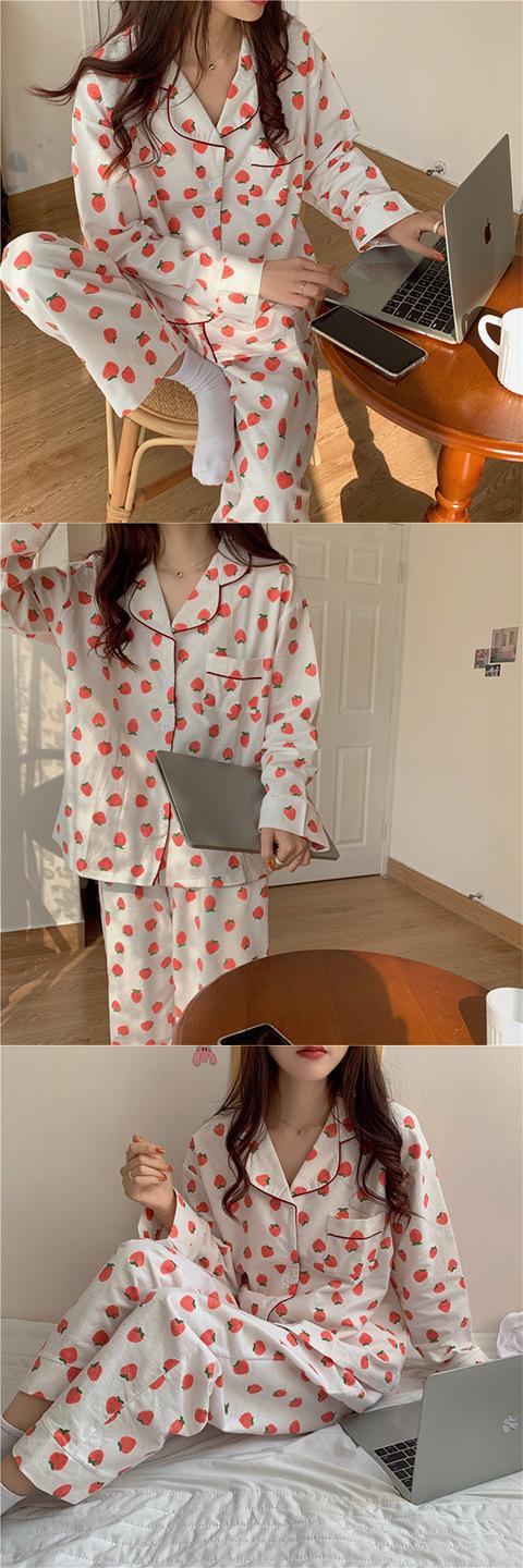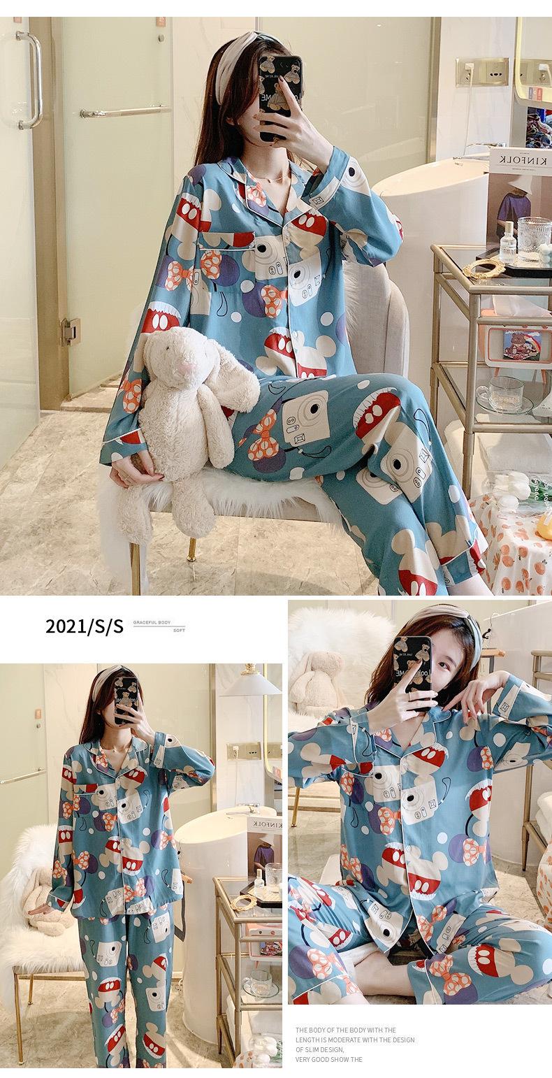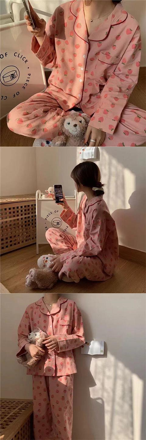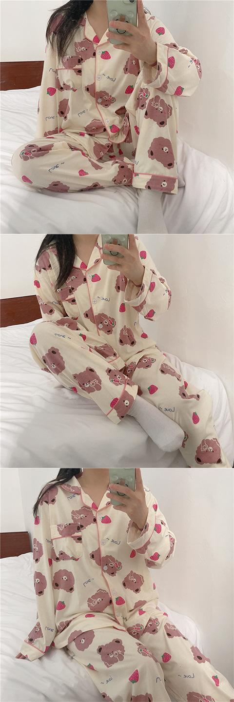 Pijama Lindo para Niña Pijama de Primavera y Otoño de Verano de Manga Larga Cárdigan Dulce Conjunto de Dos Piezas Estilo Coreano Ropa para el Hogar de Estudiante Dulce