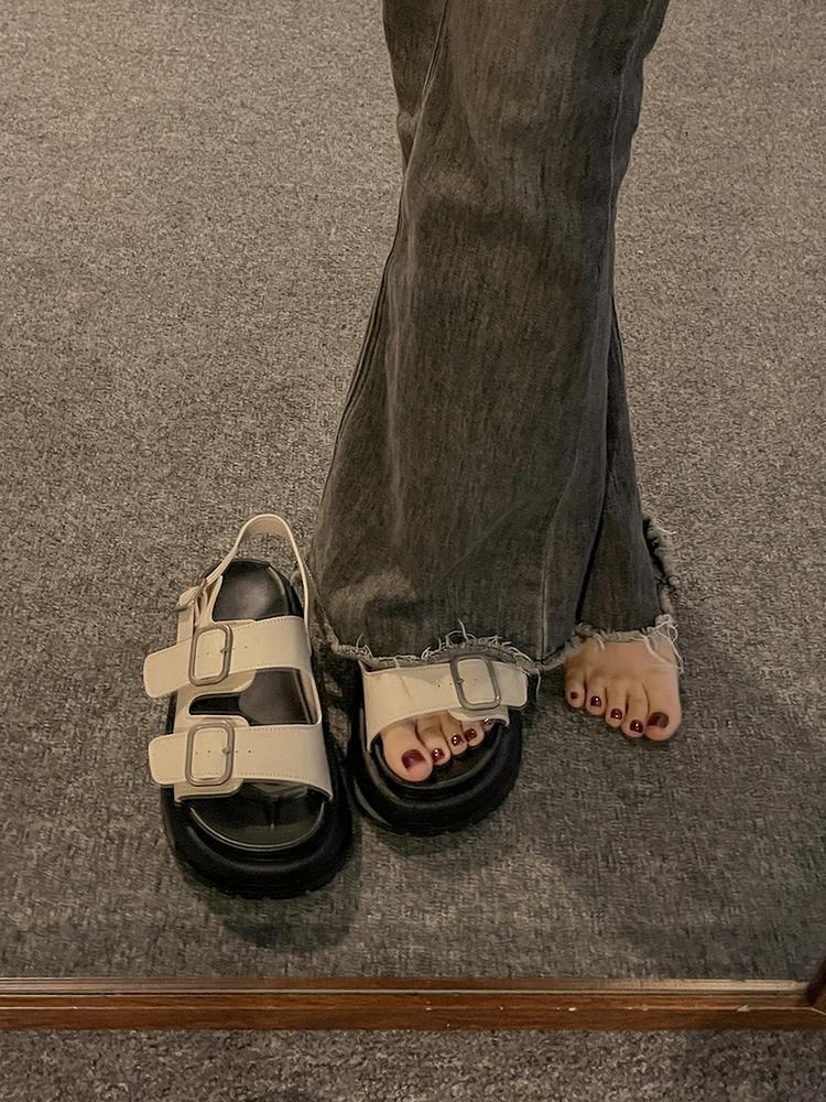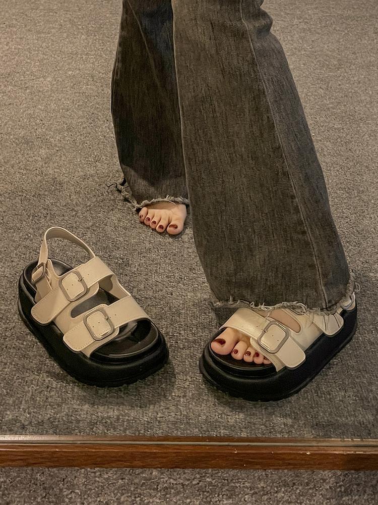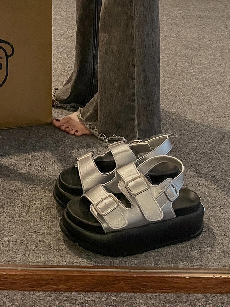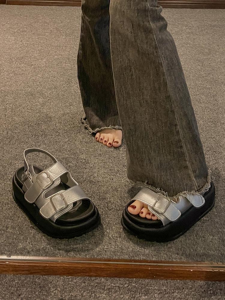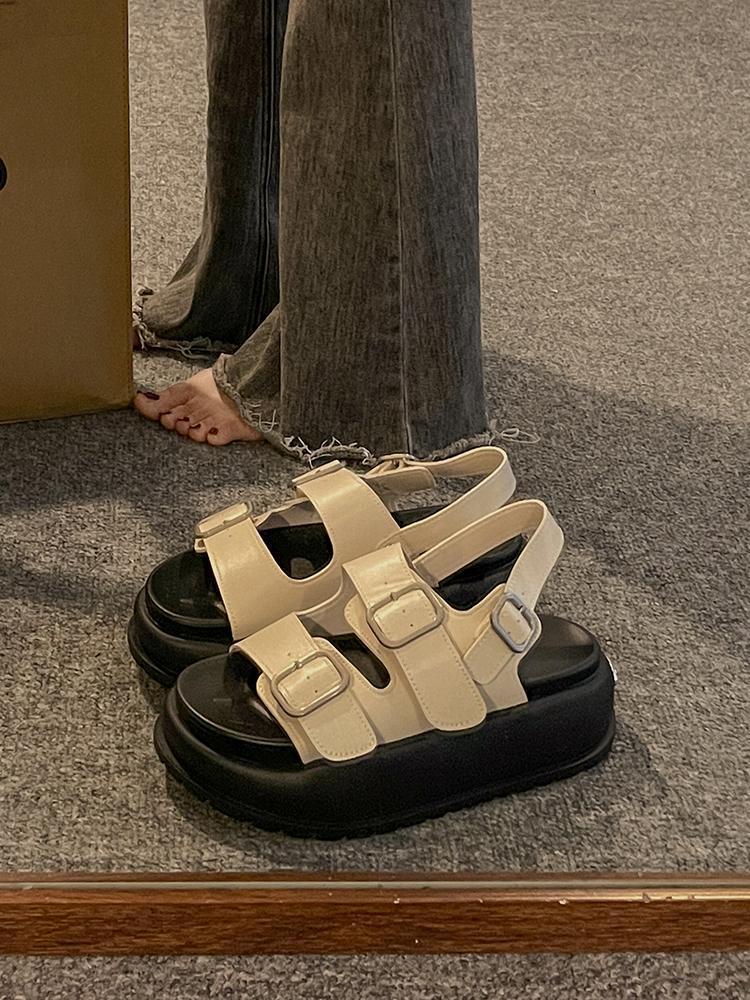 Sandalias de Plataforma de Suela Gruesa para Ropa Exterior de Mujer 2025 Verano Nuevo Casual Versátil Hebilla Metálica Altura Aumentada Sandalias de Playa para Mujer