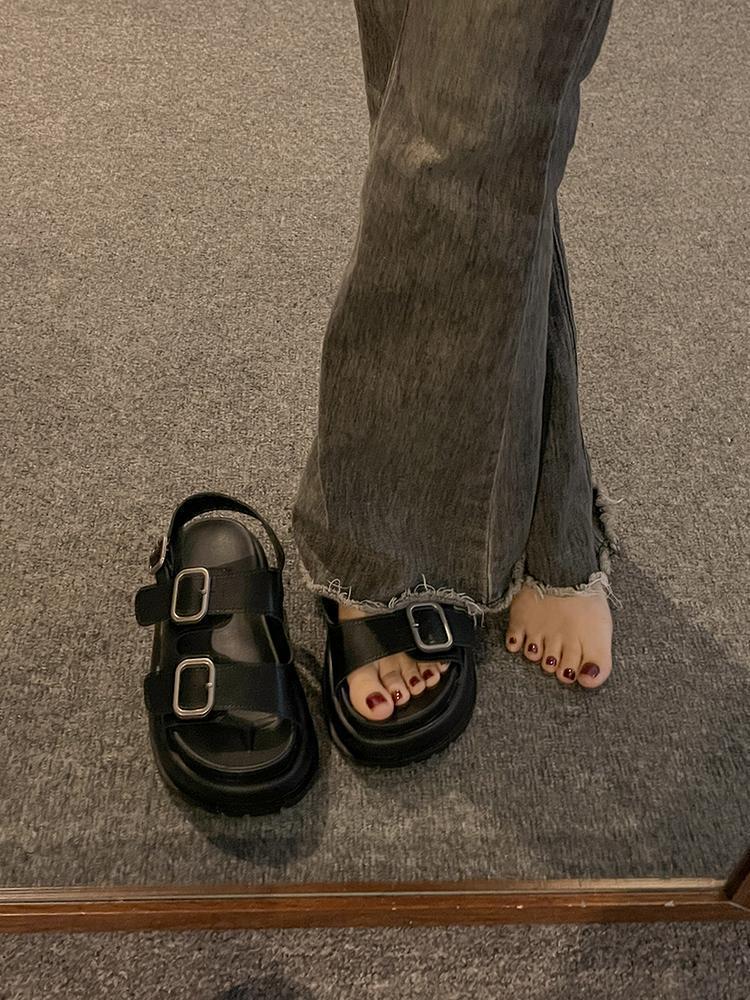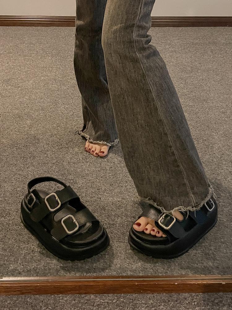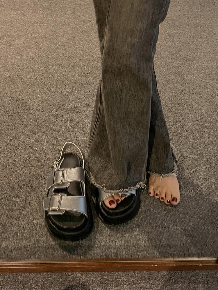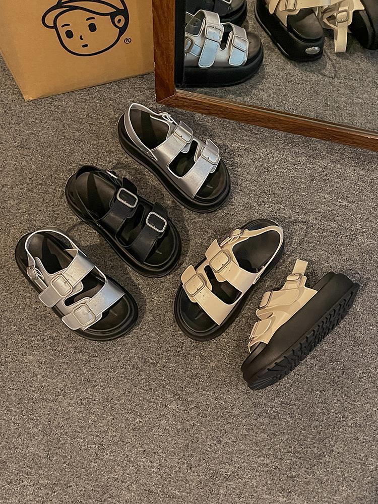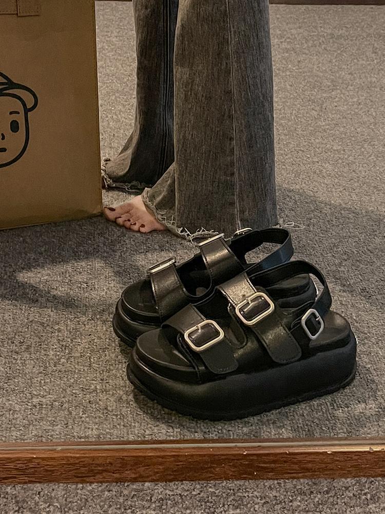 Sandalias de Plataforma de Suela Gruesa para Ropa Exterior de Mujer 2025 Verano Nuevo Casual Versátil Hebilla Metálica Altura Aumentada Sandalias de Playa para Mujer