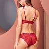 | Venta caliente europeo y americano sujetador de encaje con tiras tentación sexy ropa interior de gran tamaño fruncido año del zodíaco conjunto de sujetador rojo |