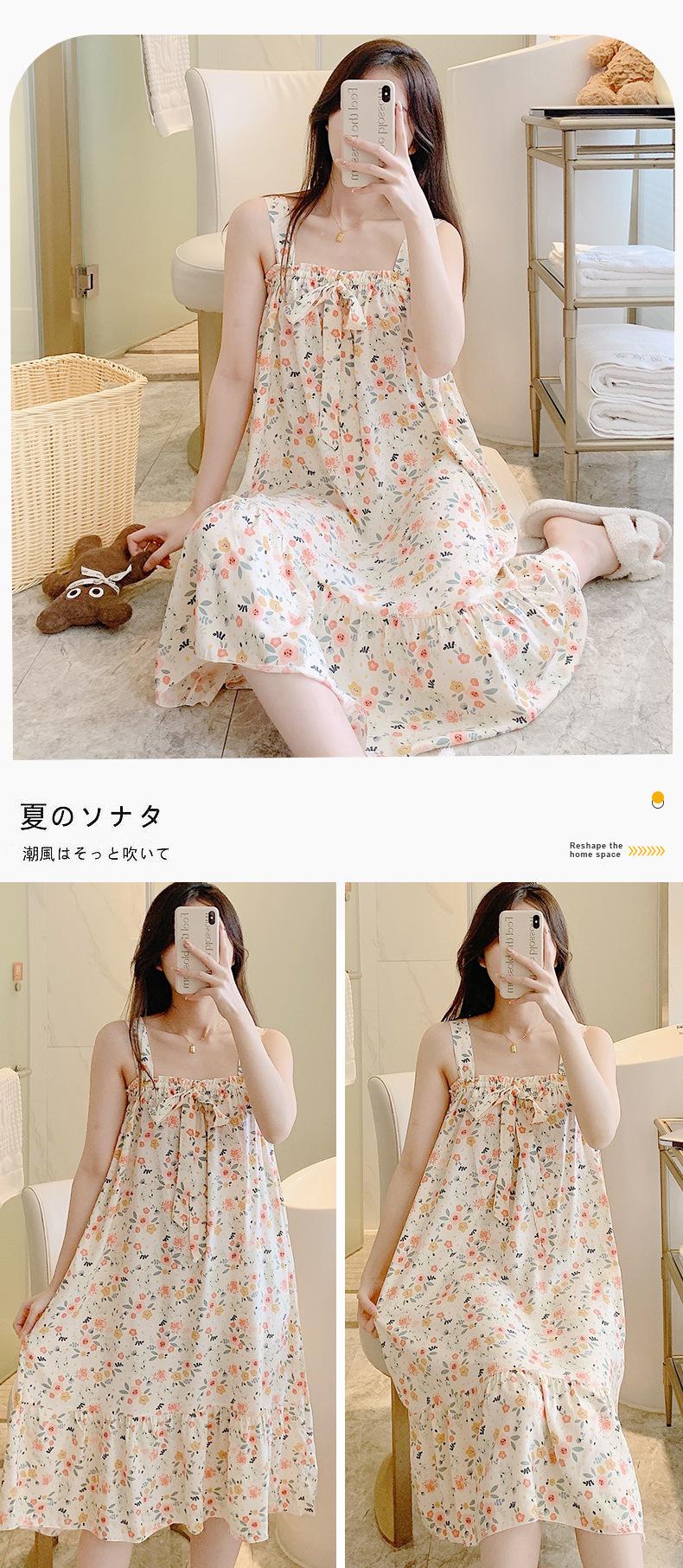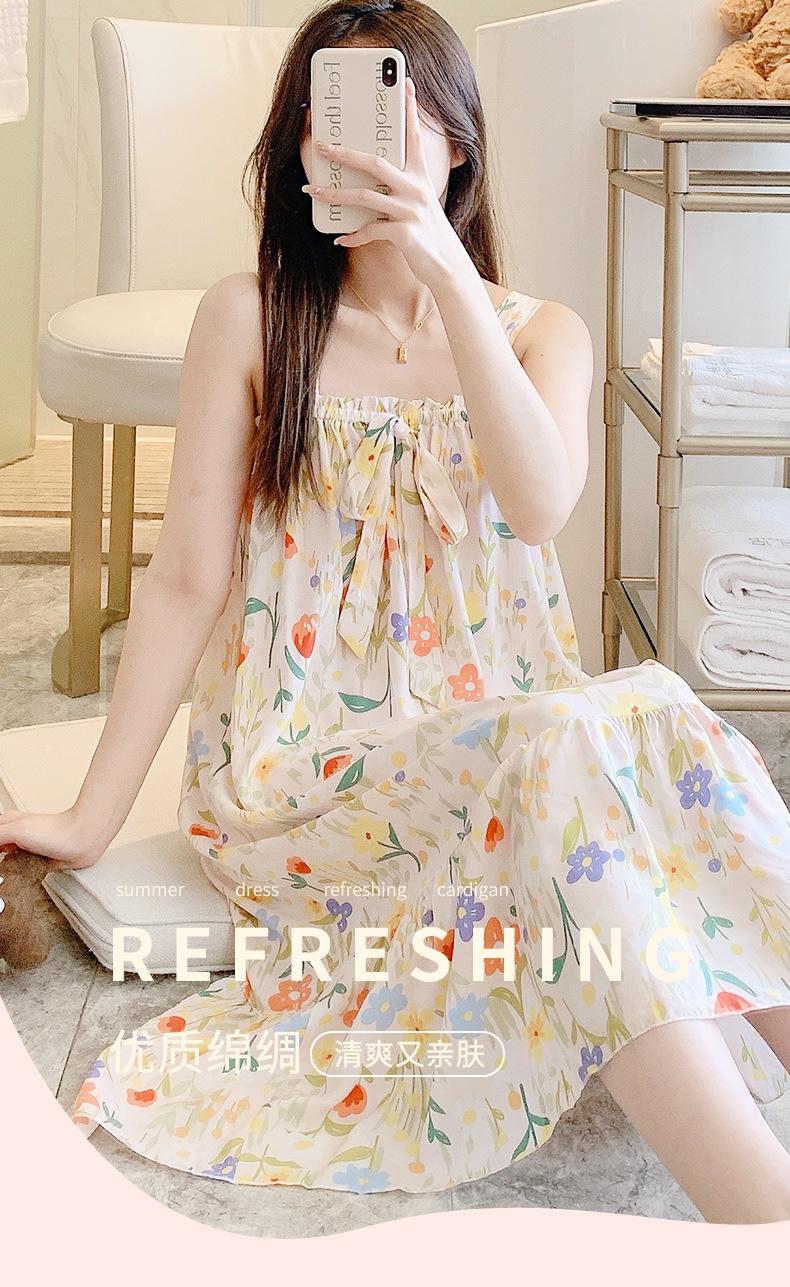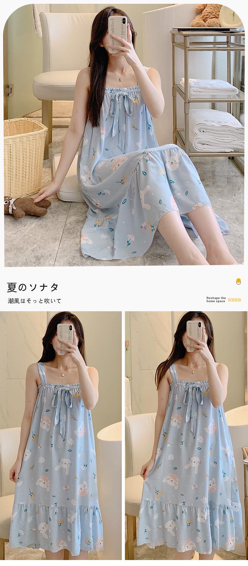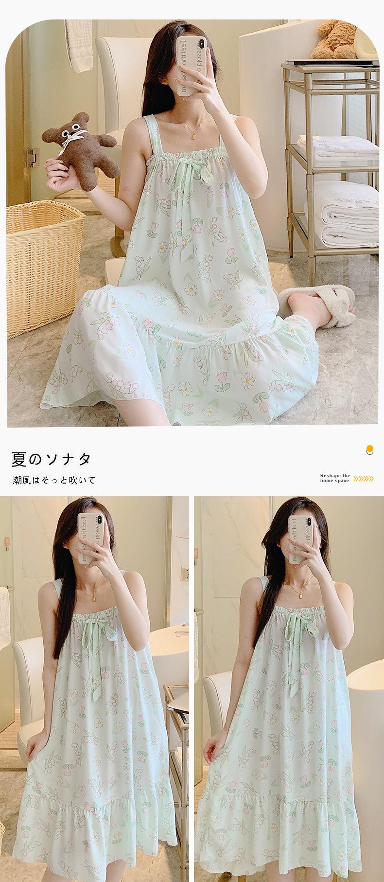 2023 Nuevo Camisón de Algodón Seda con Tirantes para Mujer Verano Fino Pijama Ropa para el Hogar Estudiantes Pueden Usar Vestido Largo de Algodón Seda