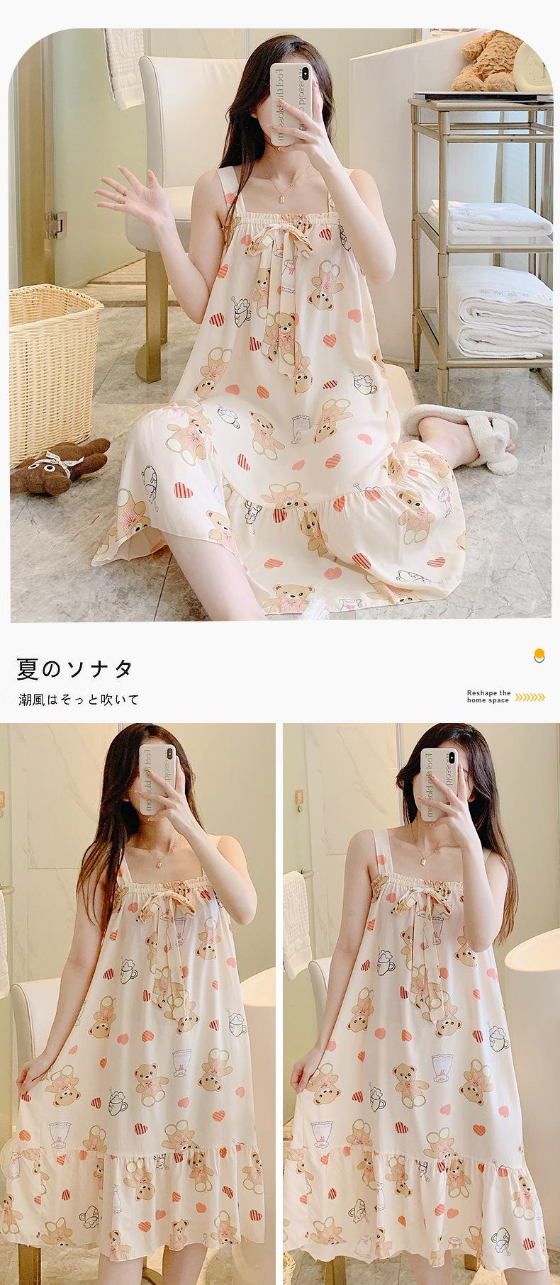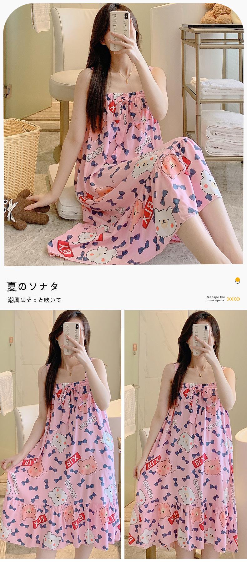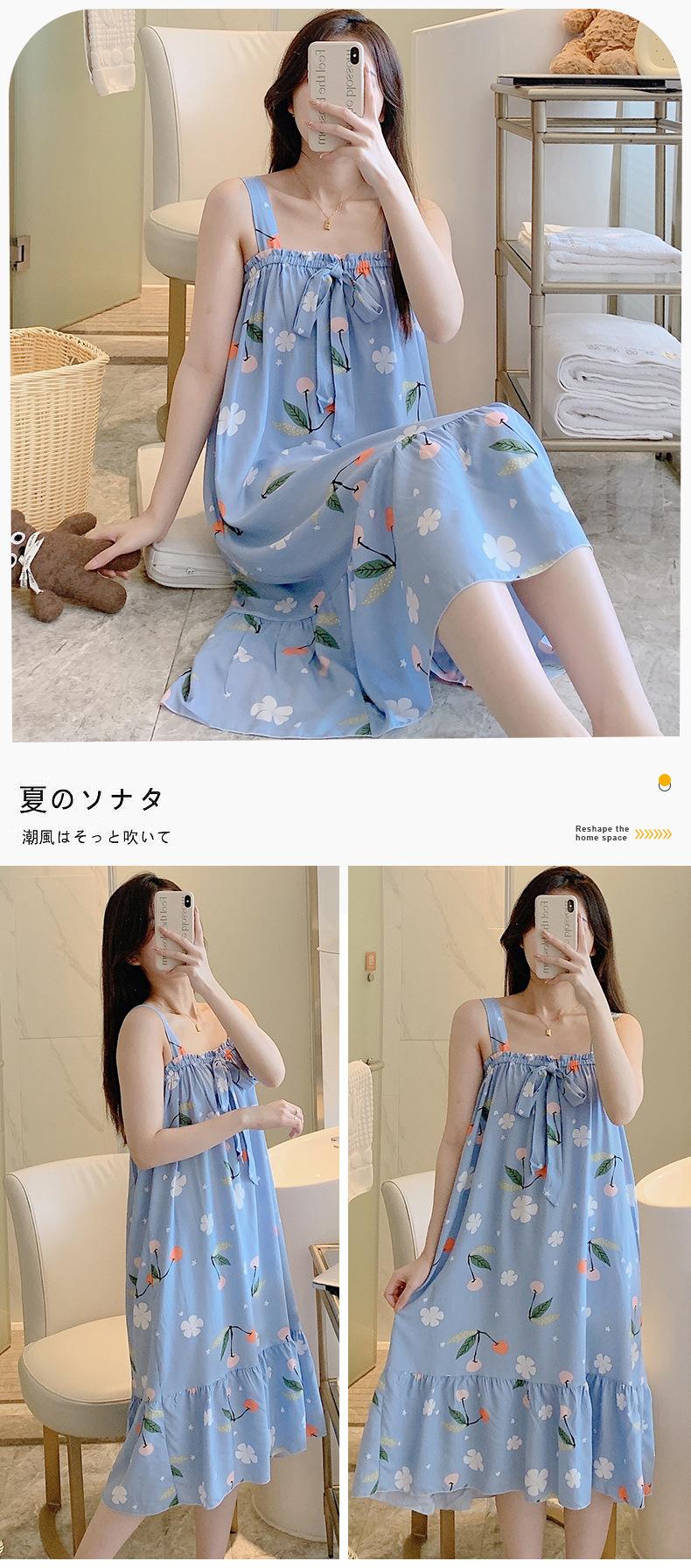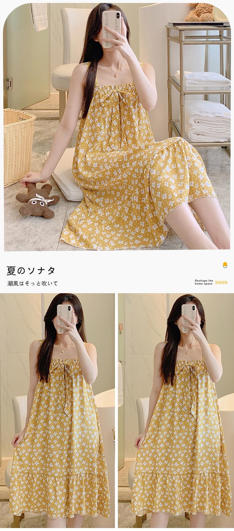 2023 Nuevo Camisón de Algodón Seda con Tirantes para Mujer Verano Fino Pijama Ropa para el Hogar Estudiantes Pueden Usar Vestido Largo de Algodón Seda