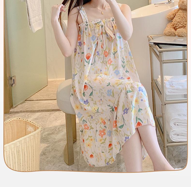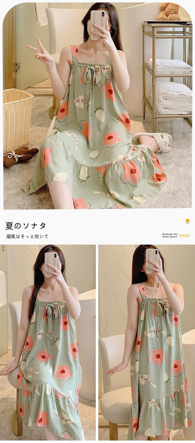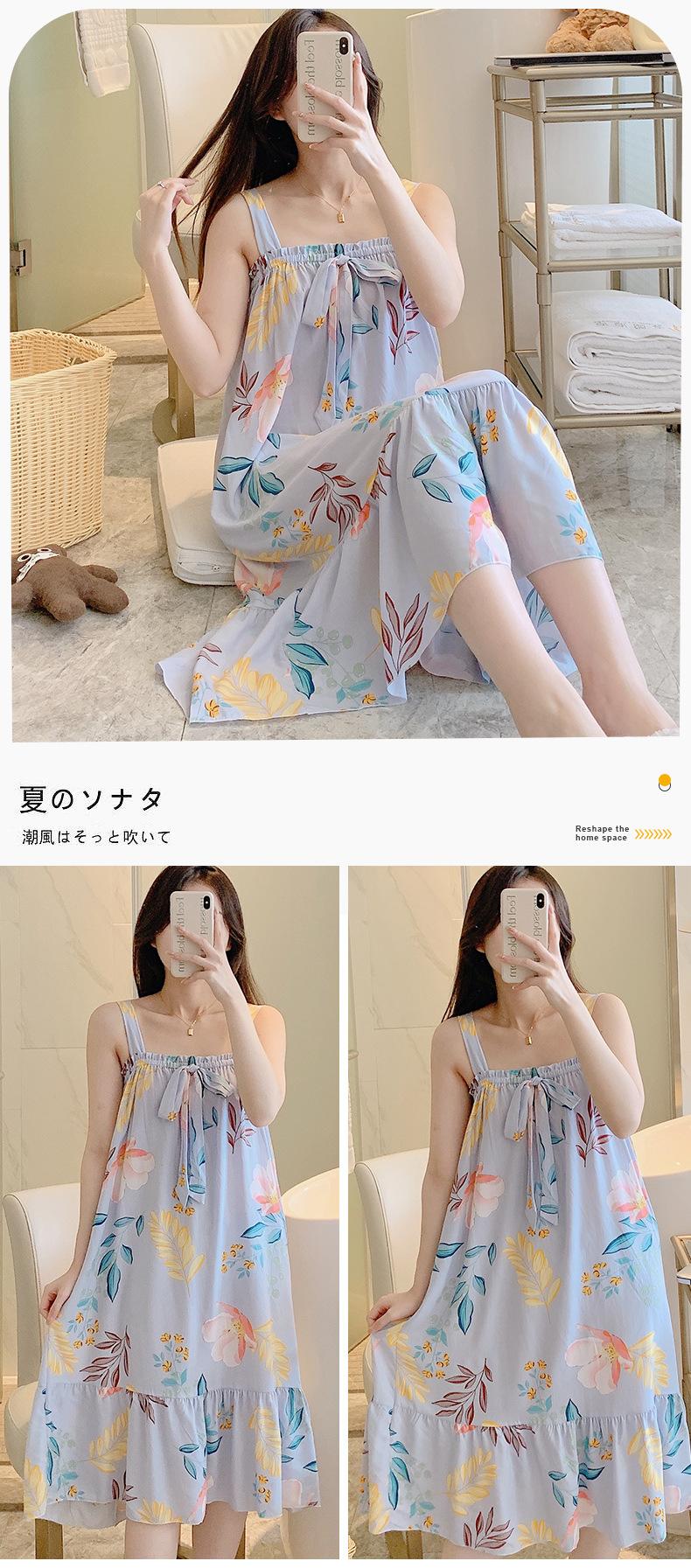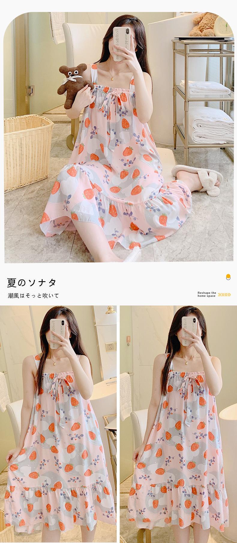 2023 Nuevo Camisón de Algodón Seda con Tirantes para Mujer Verano Fino Pijama Ropa para el Hogar Estudiantes Pueden Usar Vestido Largo de Algodón Seda
