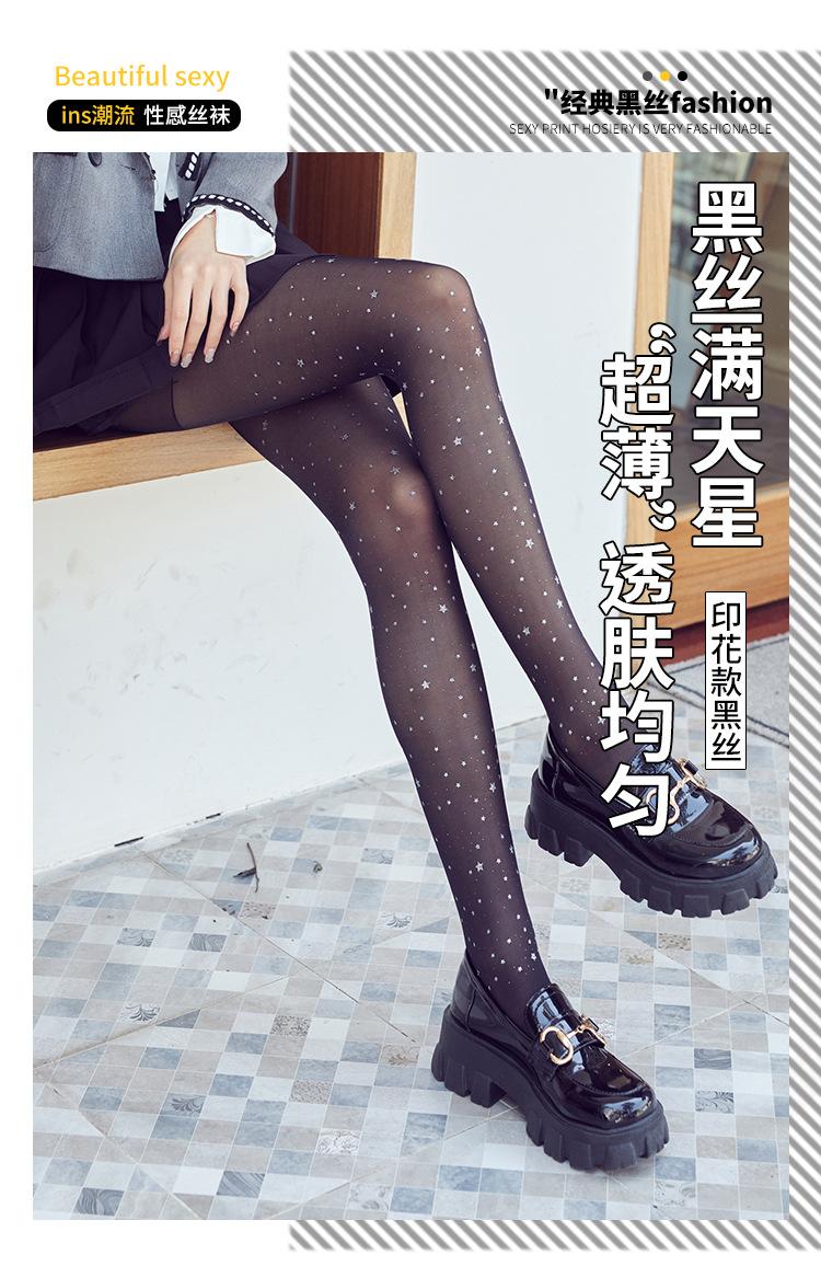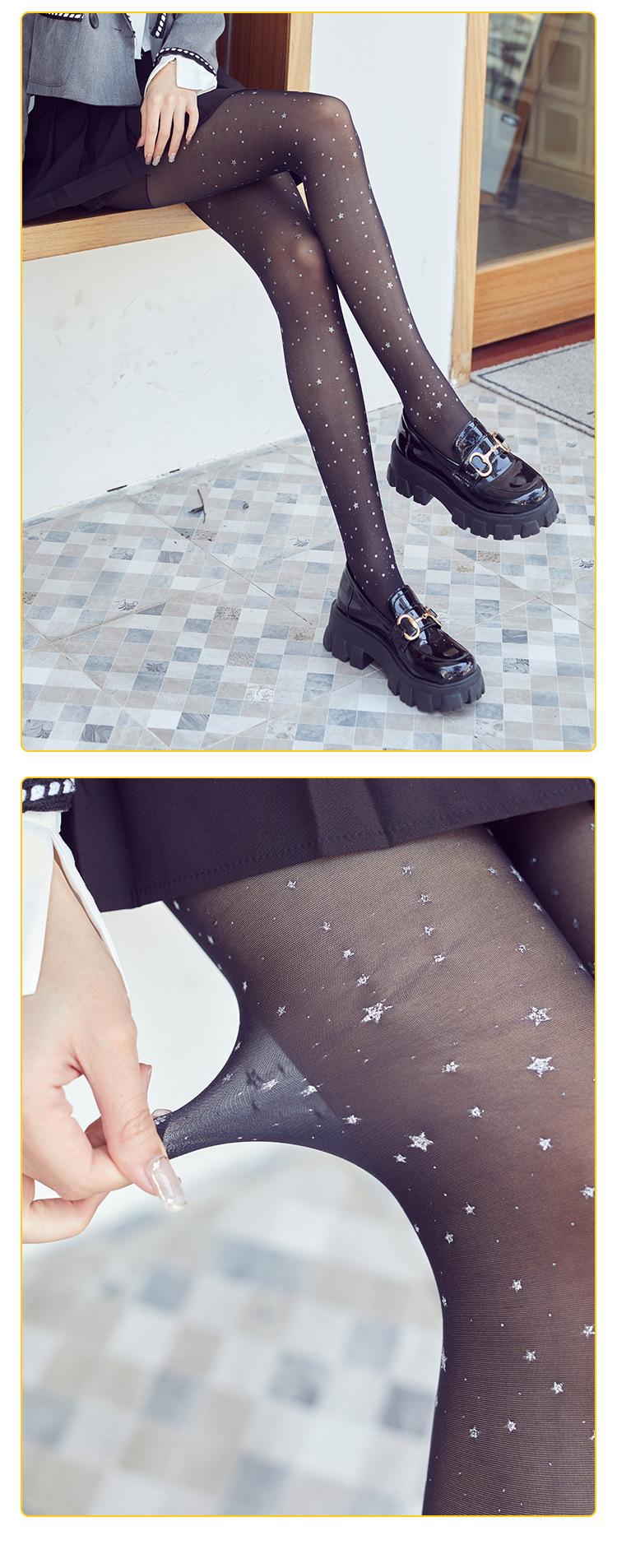 Romántico Galaxia Estrella Plata Caliente Delgado Transparente Calcetines de Seda Personalizado Estrella Estampado Medias Finas Medias de Seda Negras