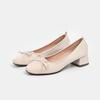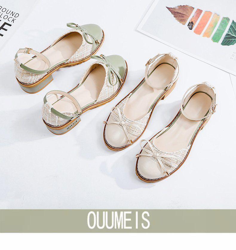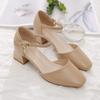 Tacón grueso punta cerrada para mujer Estilo coreano 2020 nuevos zapatos de mujer en línea rojos tacón medio versátiles de una sola capa zapatos de boca baja