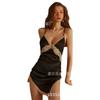 Pijama sexy de otoño e invierno para mujer, pijama con costuras de encaje, camisón de tirantes huecos con abertura y espalda descubierta para el hogar 1555
