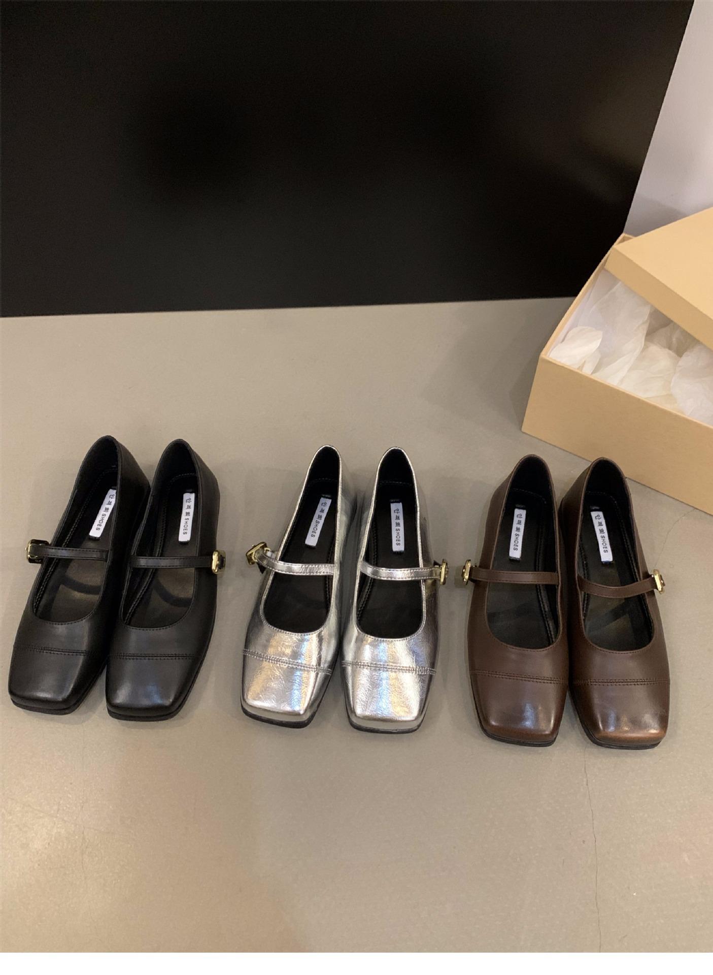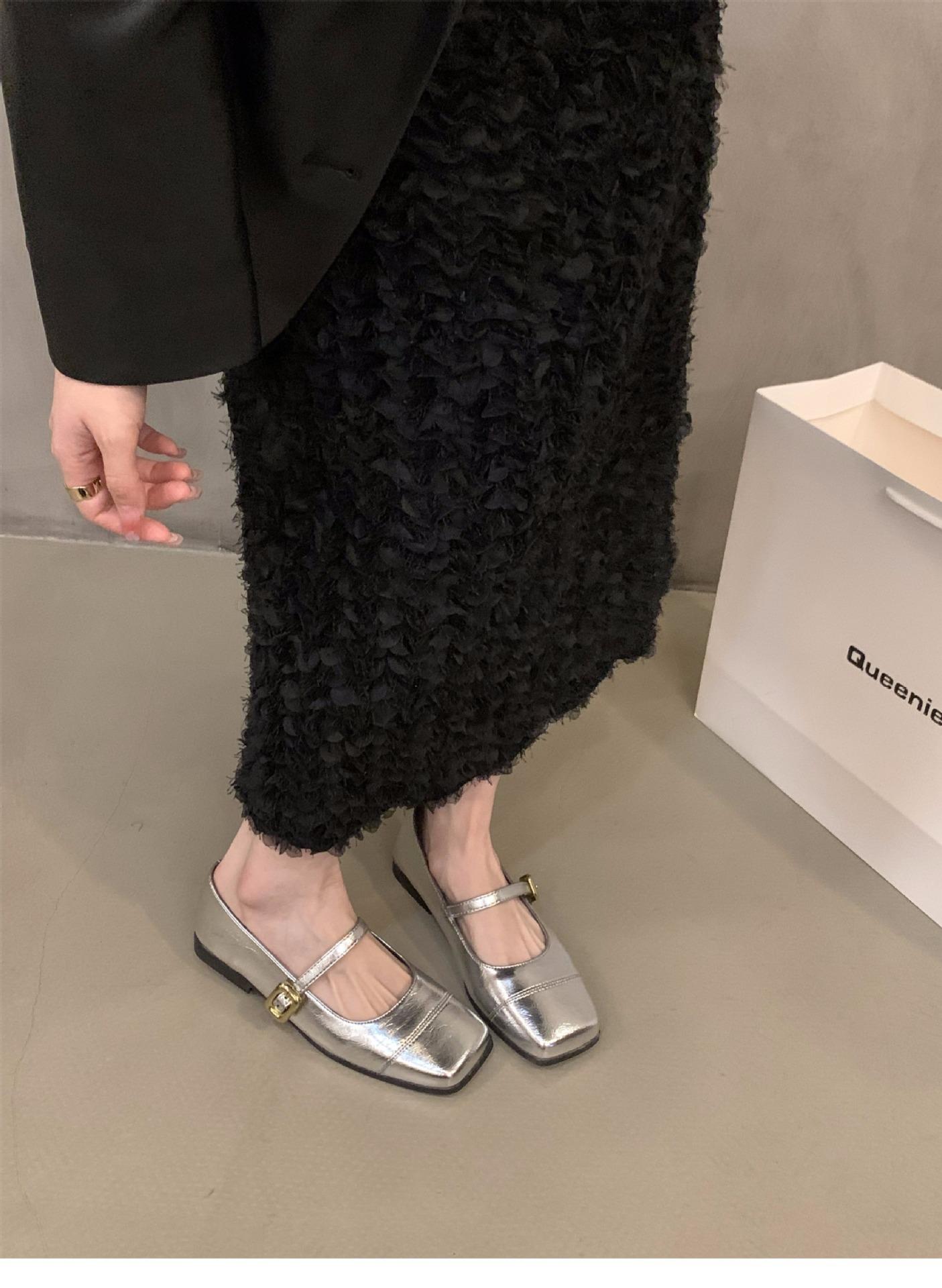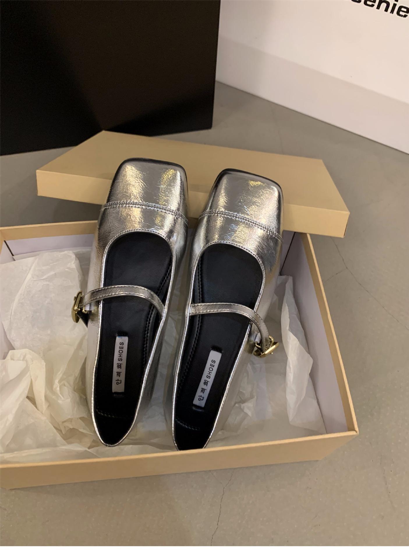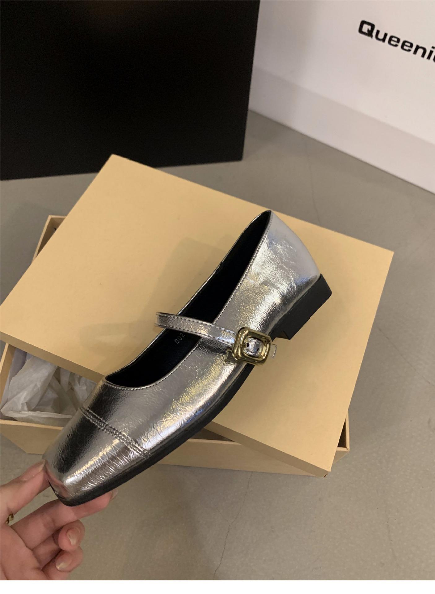 Zapatos Mary Jane plateados planos zapatos de mujer primavera y otoño 2024 nuevos primavera con falda zapatos de noche franceses suaves