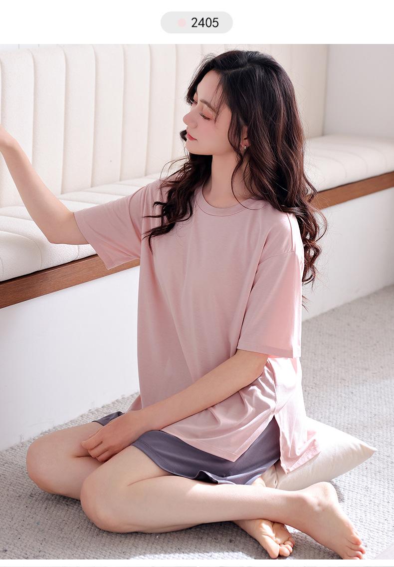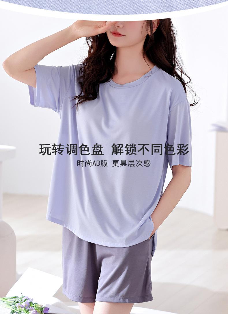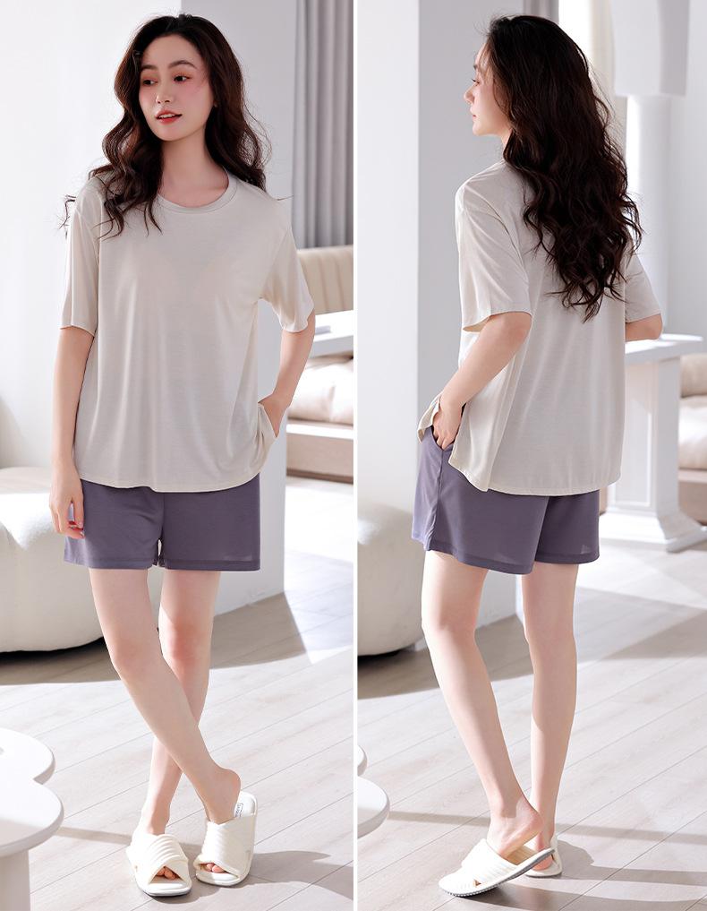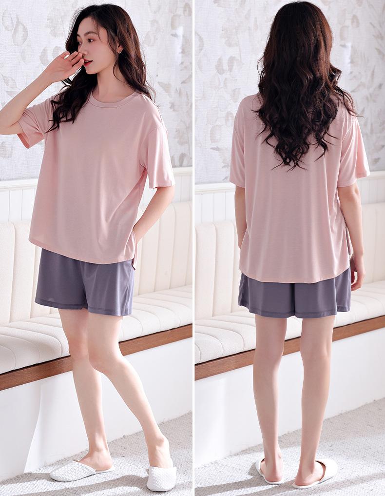 Pijama de verano para mujer, de modal, de manga corta, para el hogar, informal, fino, transpirable, talla grande, traje de dos piezas