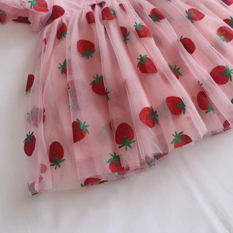 Vestido de Verano para Niñas vestido Bebé Elegante Infantil Personalizado Moderno Marca Estilo Coreano Fresco Fresa Malla Hada Princesa Vestido