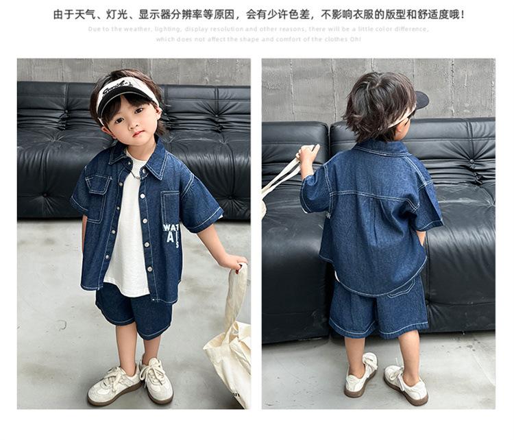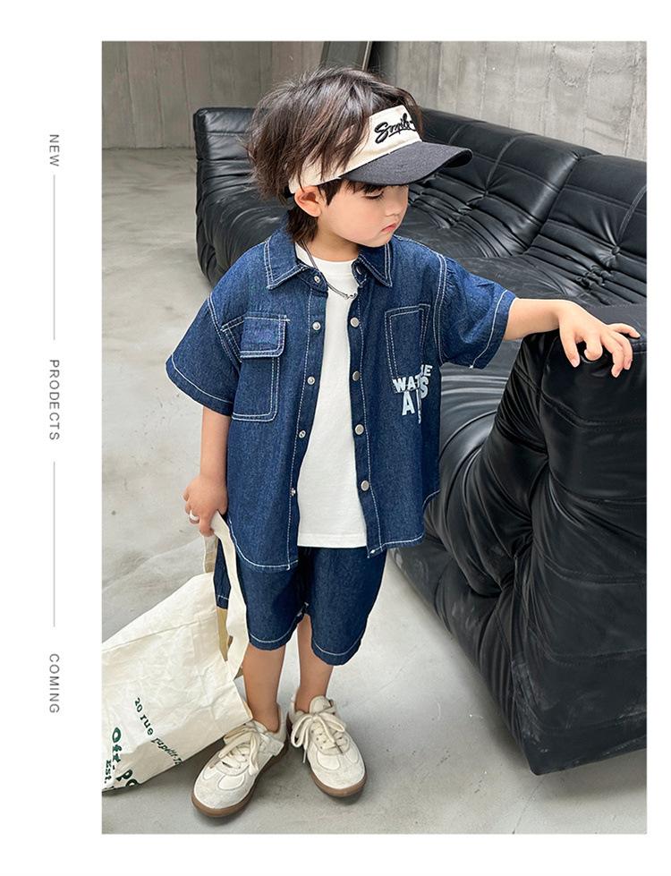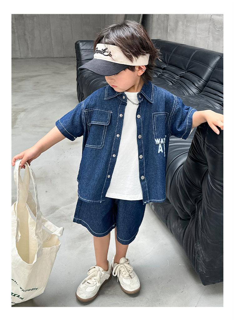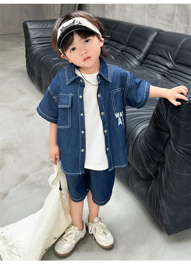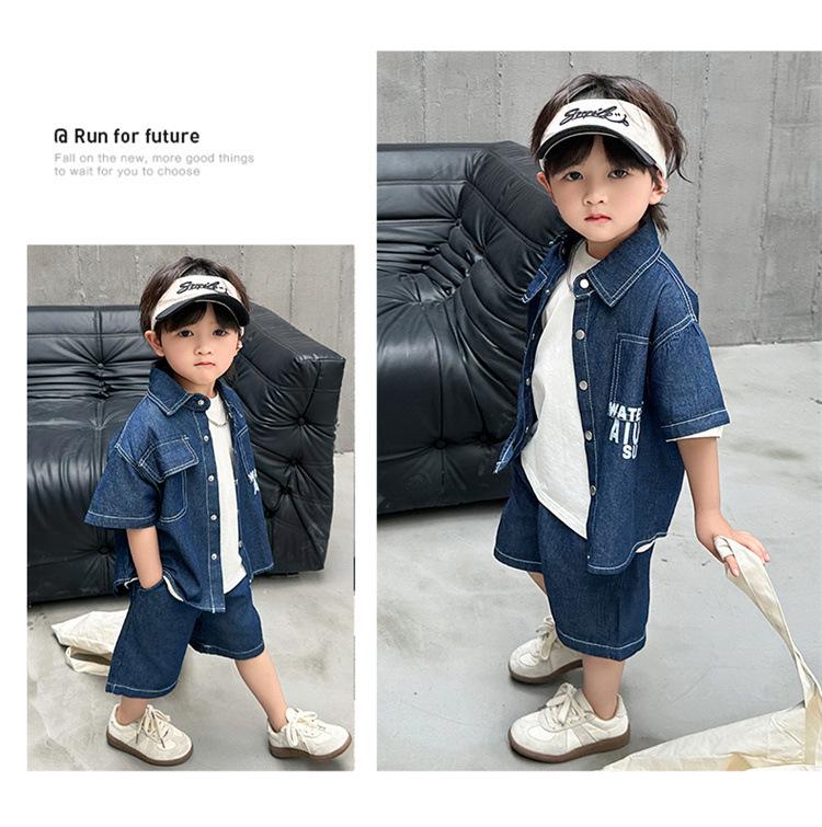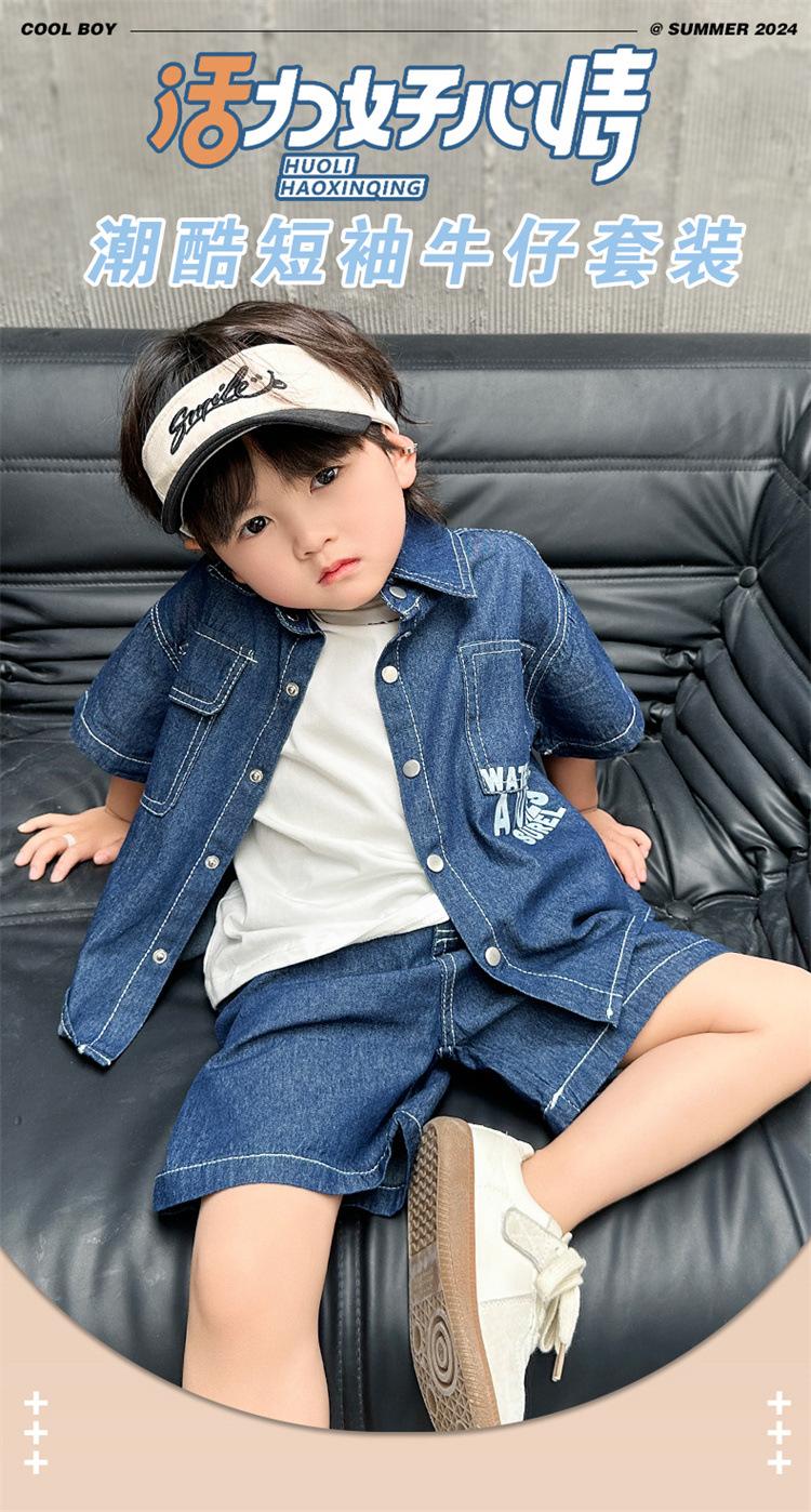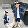 Conjunto de dos piezas de mezclilla de manga corta para verano para niño, guapo casual coreano, conjunto de dos piezas, ropa infantil de comercio exterior, ropa y pantalones de moda