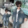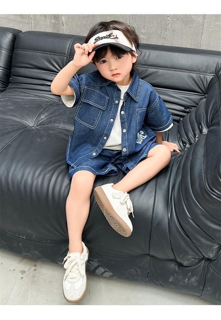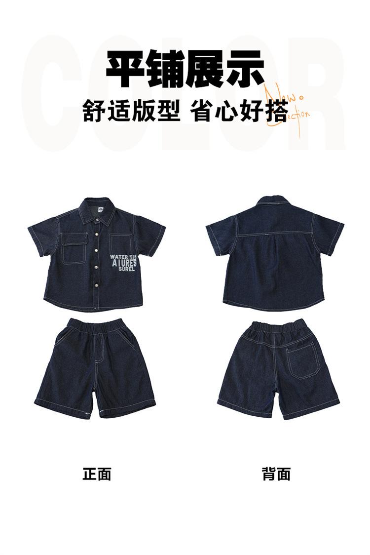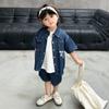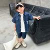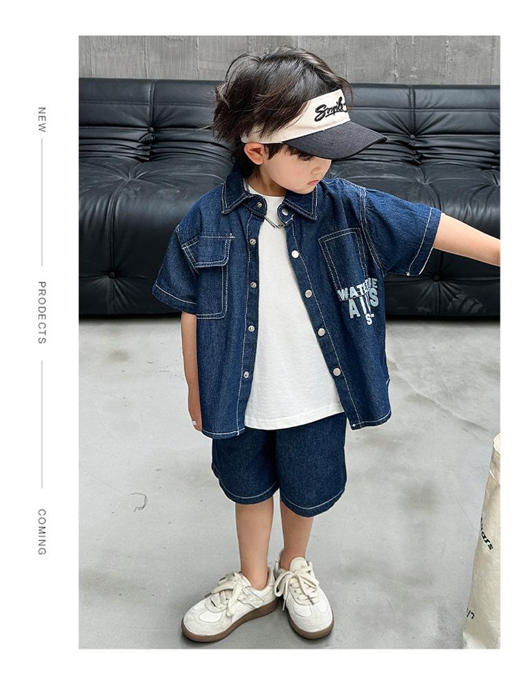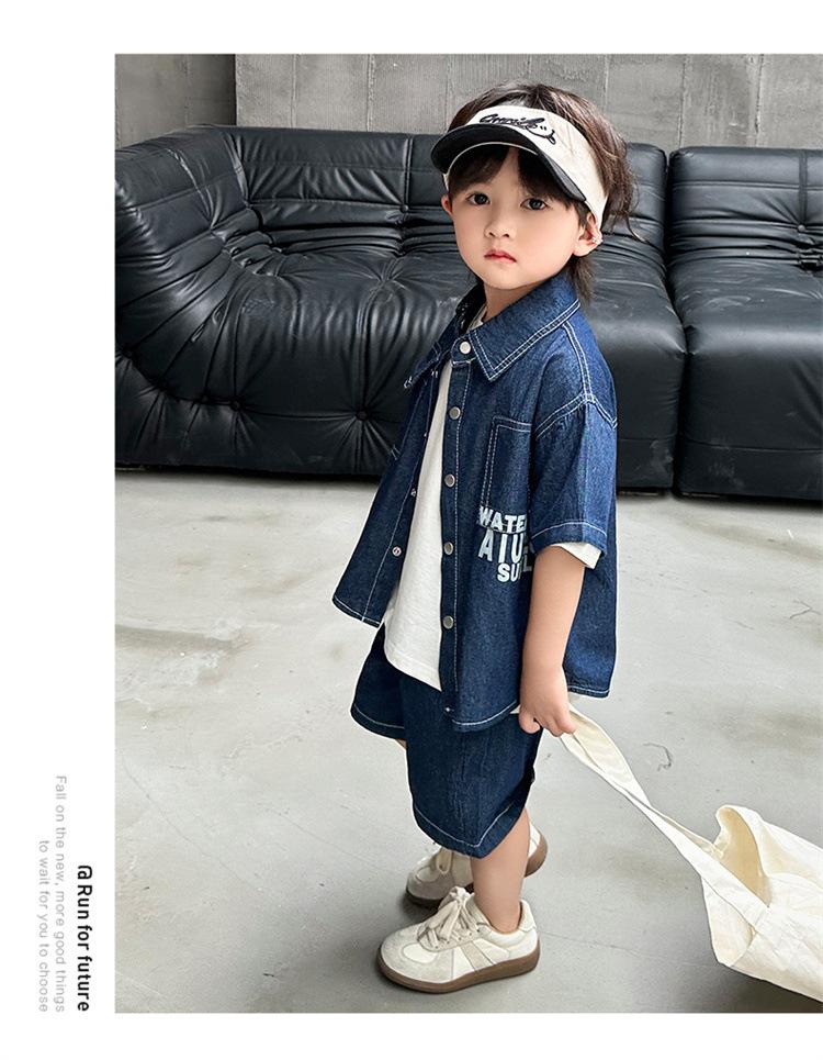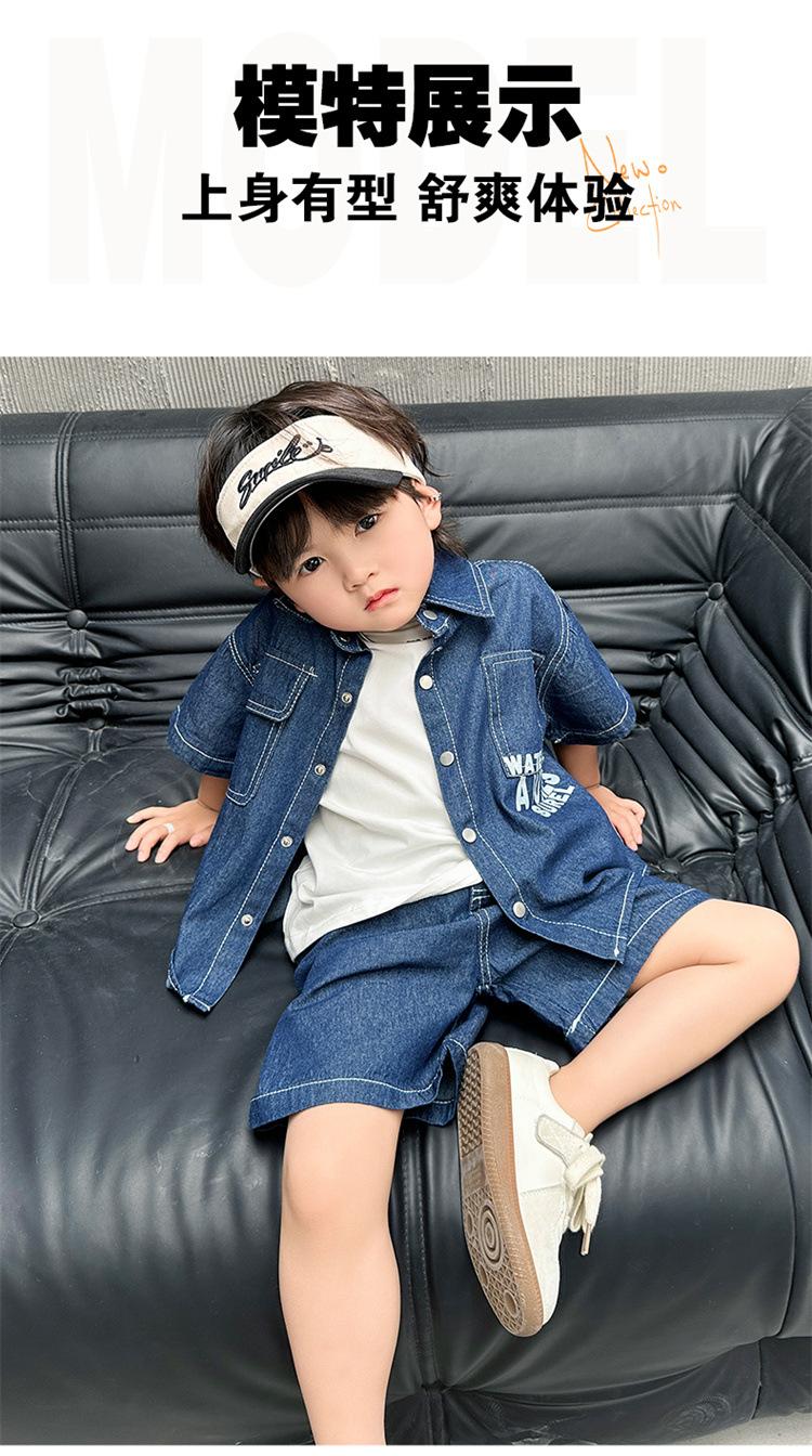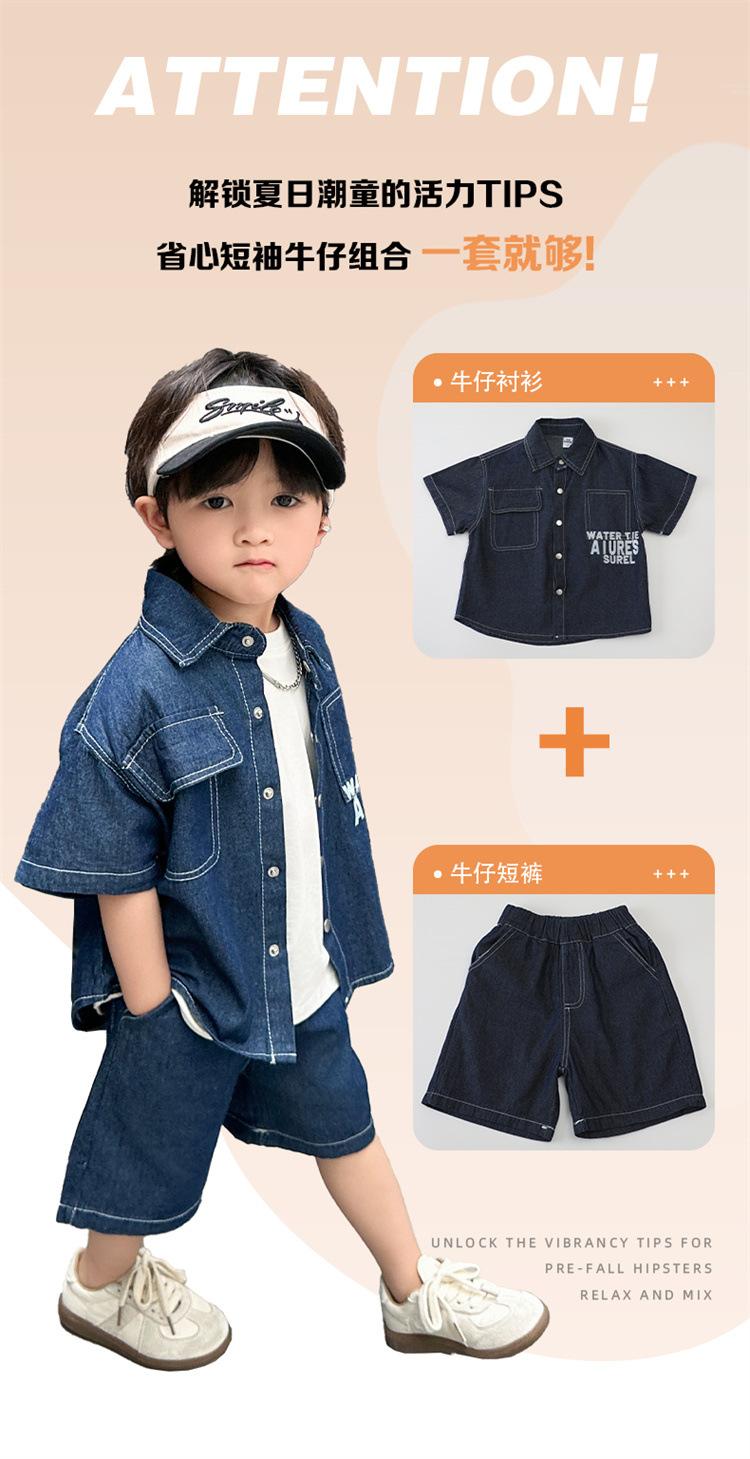 Conjunto de dos piezas de mezclilla de manga corta para verano para niño, guapo casual coreano, conjunto de dos piezas, ropa infantil de comercio exterior, ropa y pantalones de moda