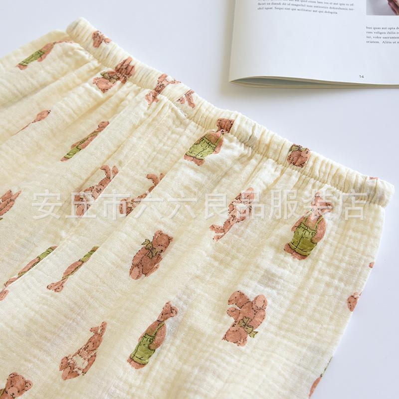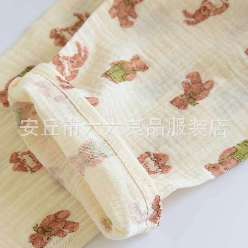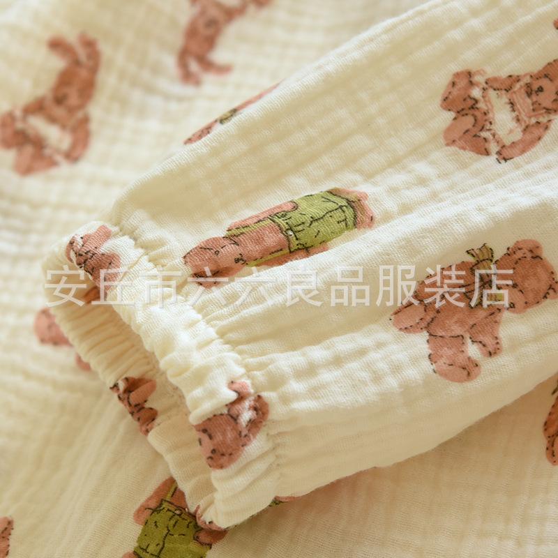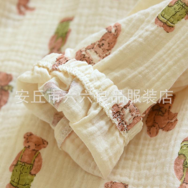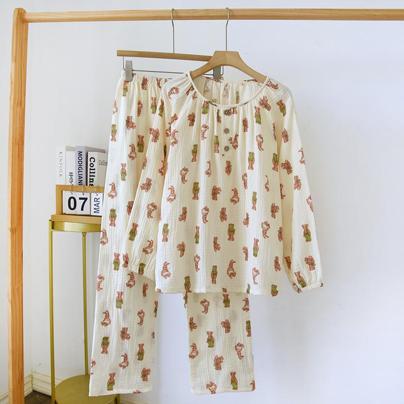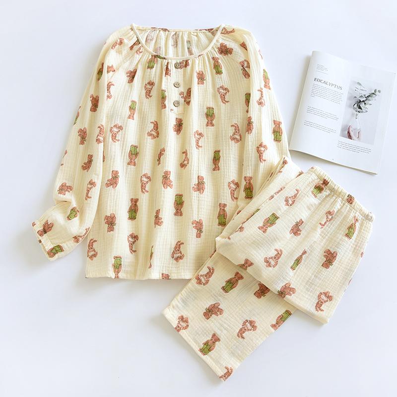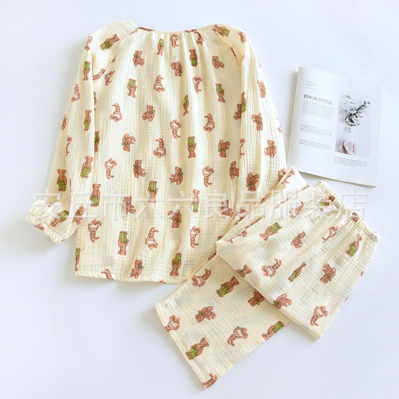 Pijama de Algodón para Bebé para Mujer Primavera y Verano Pantalón de Manga Larga Dos Piezas Otoño e Invierno Cuatro Estaciones Algodón Doble Capa Crepé Pulóver Ropa para el Hogar