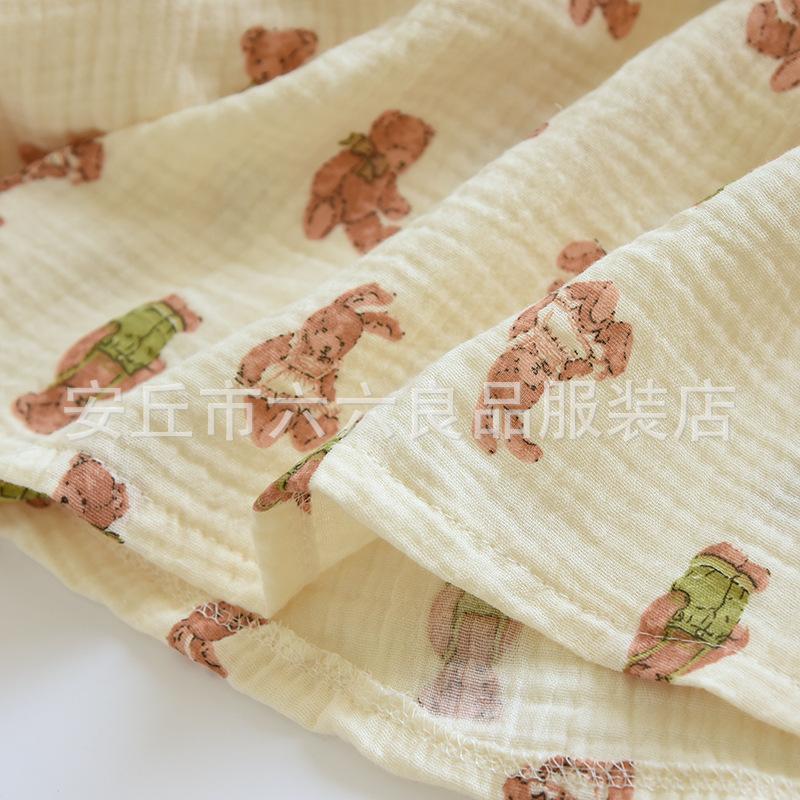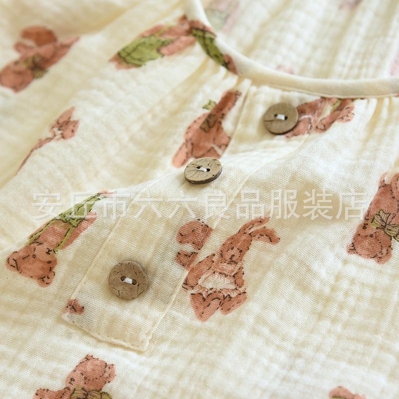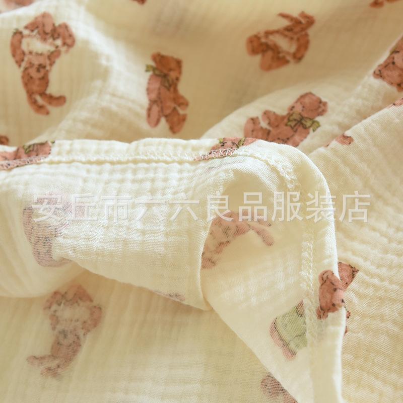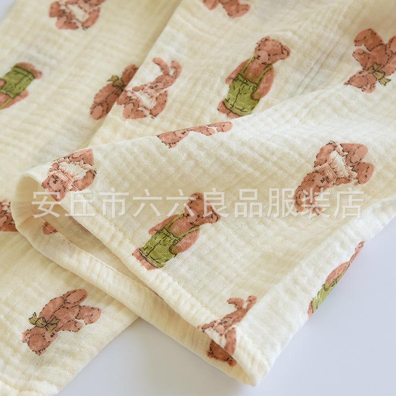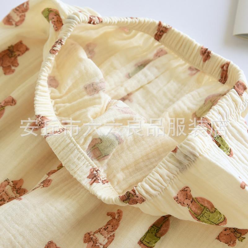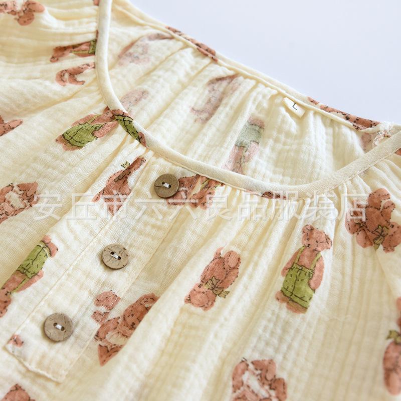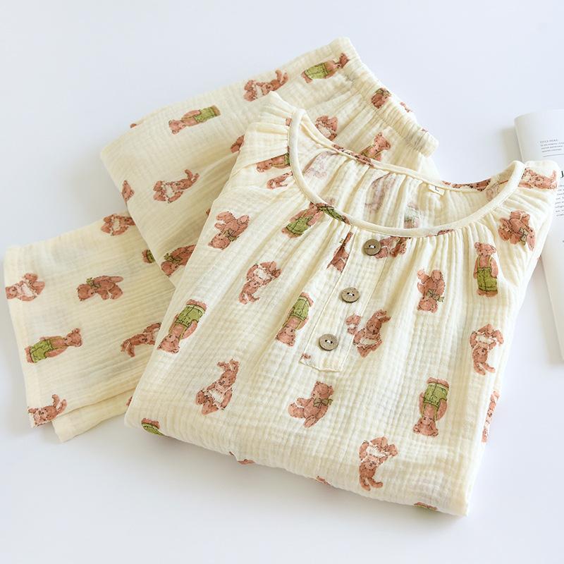 Pijama de Algodón para Bebé para Mujer Primavera y Verano Pantalón de Manga Larga Dos Piezas Otoño e Invierno Cuatro Estaciones Algodón Doble Capa Crepé Pulóver Ropa para el Hogar