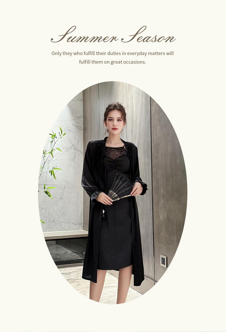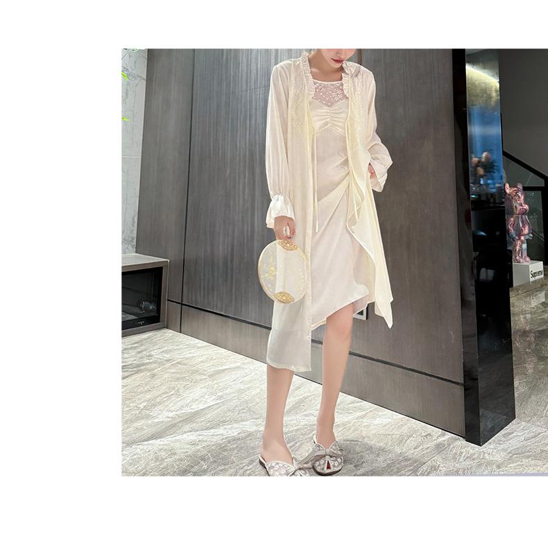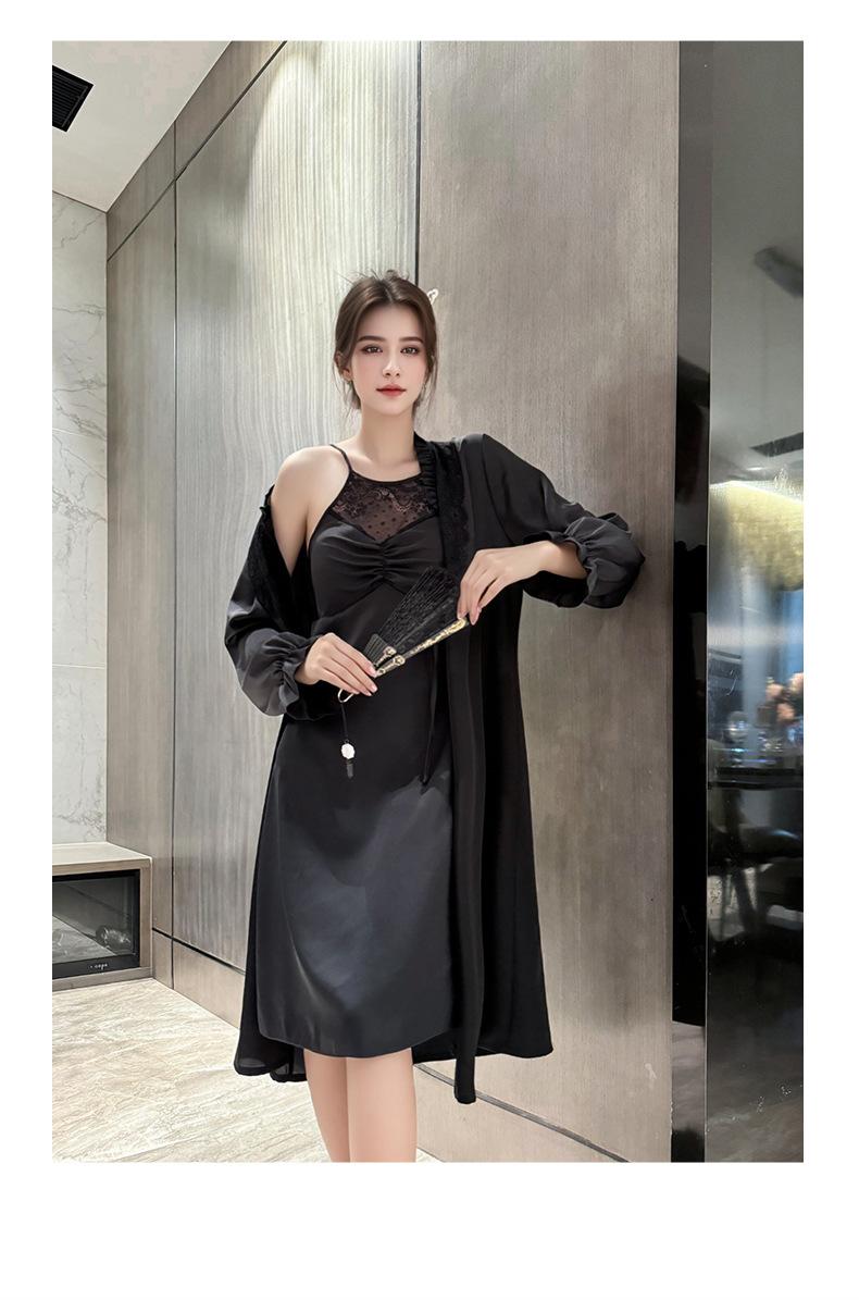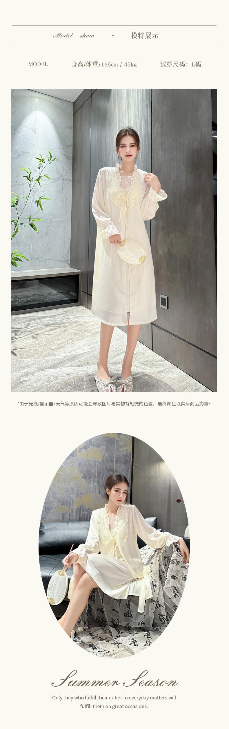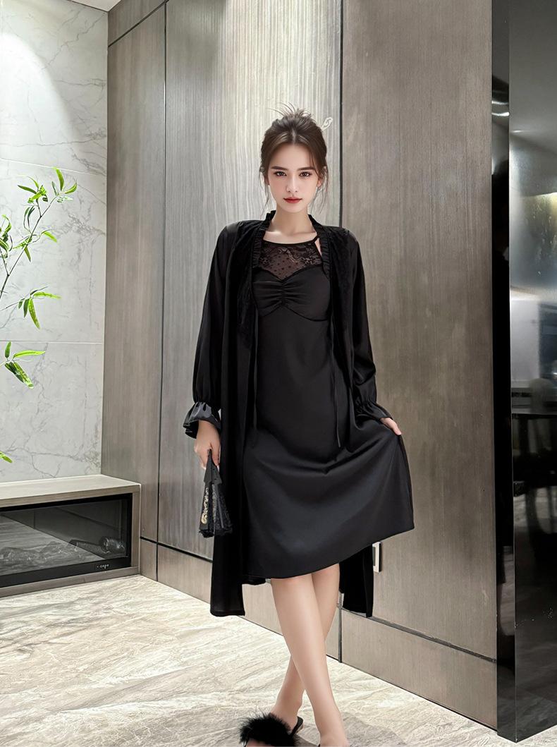 [Estrictamente Seleccionado] Camisón Francés Lazy Largo con Tirantes Conjunto de Dos Piezas, Ropa de Casa Sexy para Habitación Privada, Pijama de Seda de Hielo para Primavera y Otoño