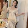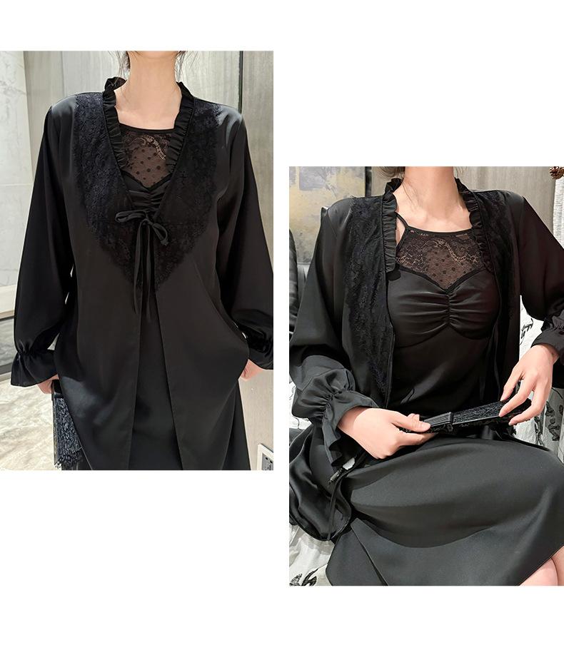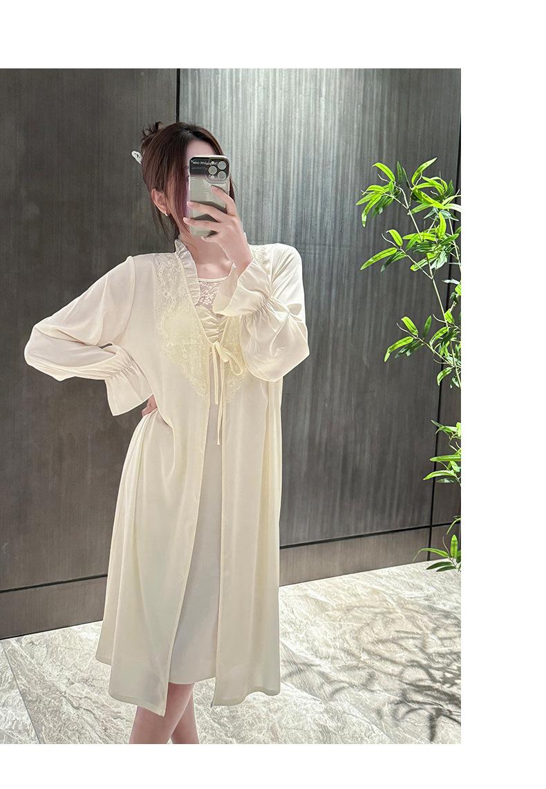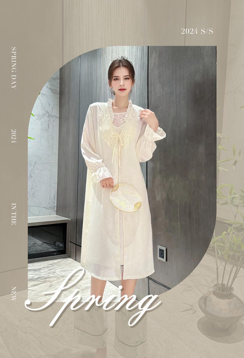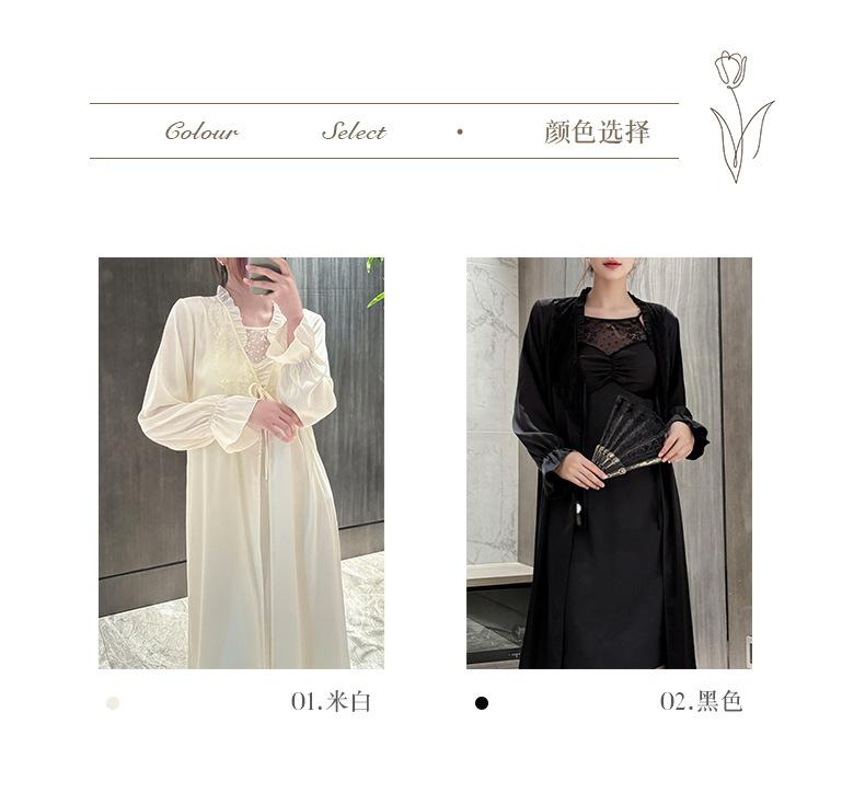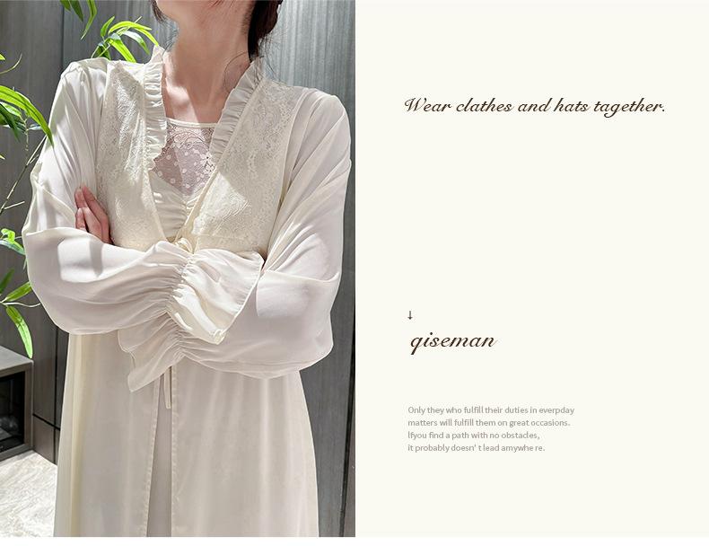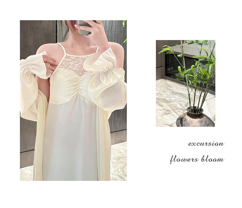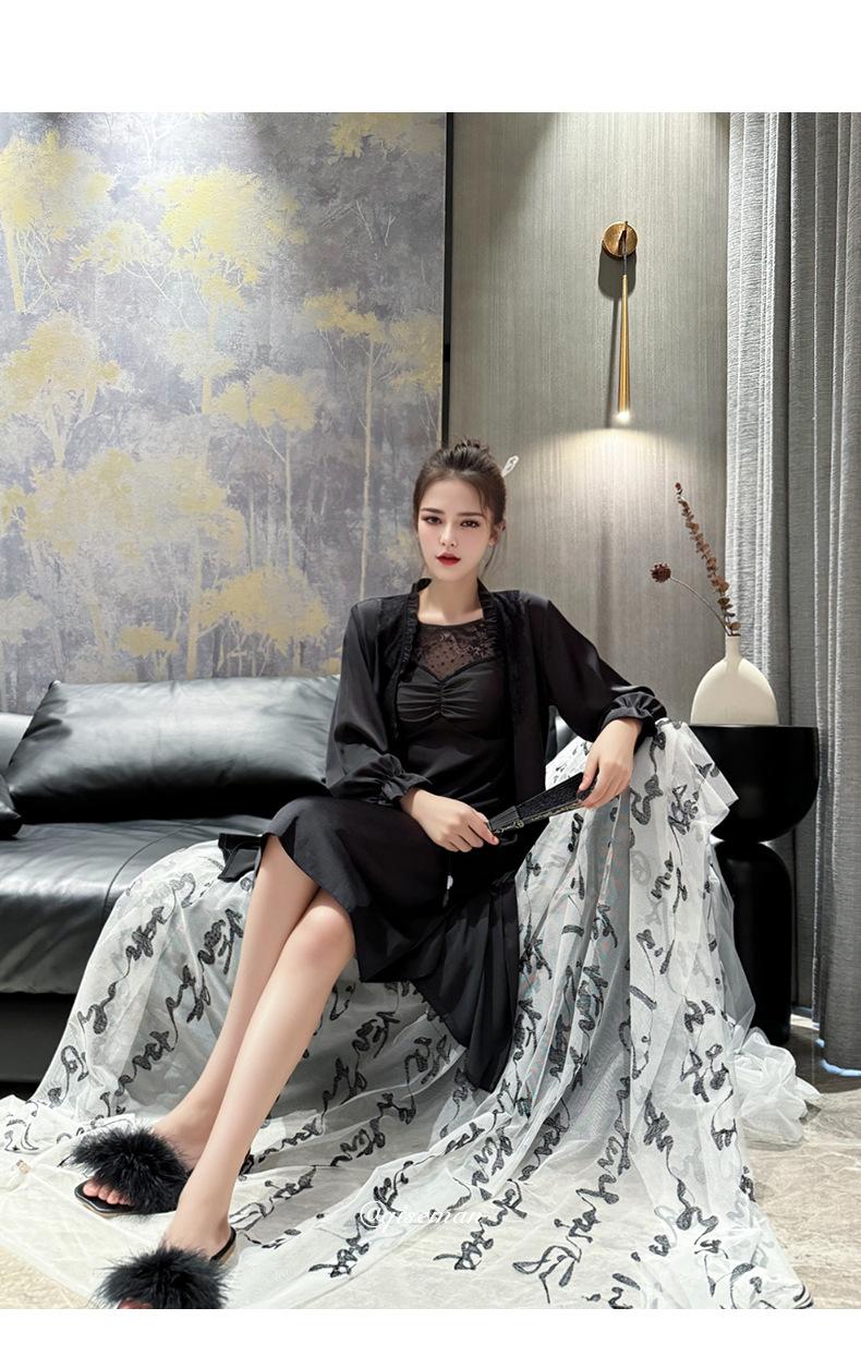 [Estrictamente Seleccionado] Camisón Francés Lazy Largo con Tirantes Conjunto de Dos Piezas, Ropa de Casa Sexy para Habitación Privada, Pijama de Seda de Hielo para Primavera y Otoño