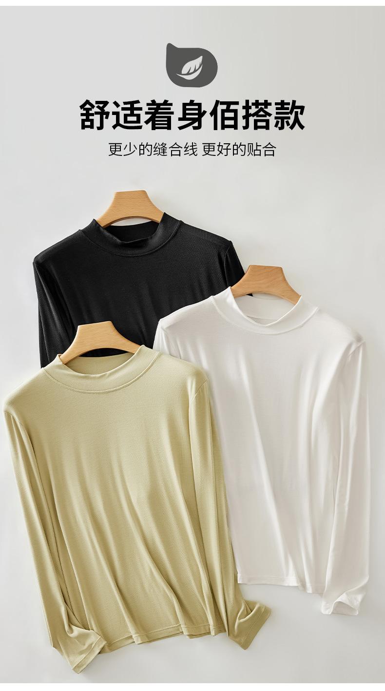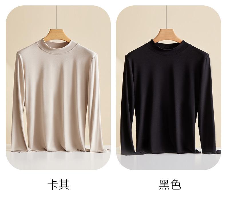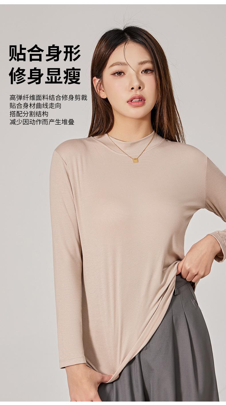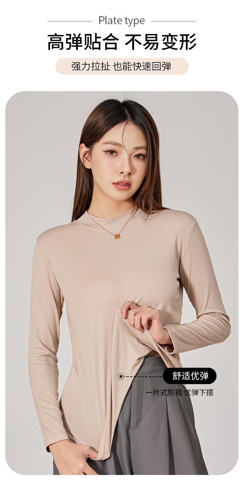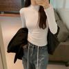 Camiseta Básica de Cuello Alto para Mujer Primavera y Otoño Abrigo Fino de Otoño 2024 Nueva Camiseta de Manga Larga Blanca Top de Cuello Medio