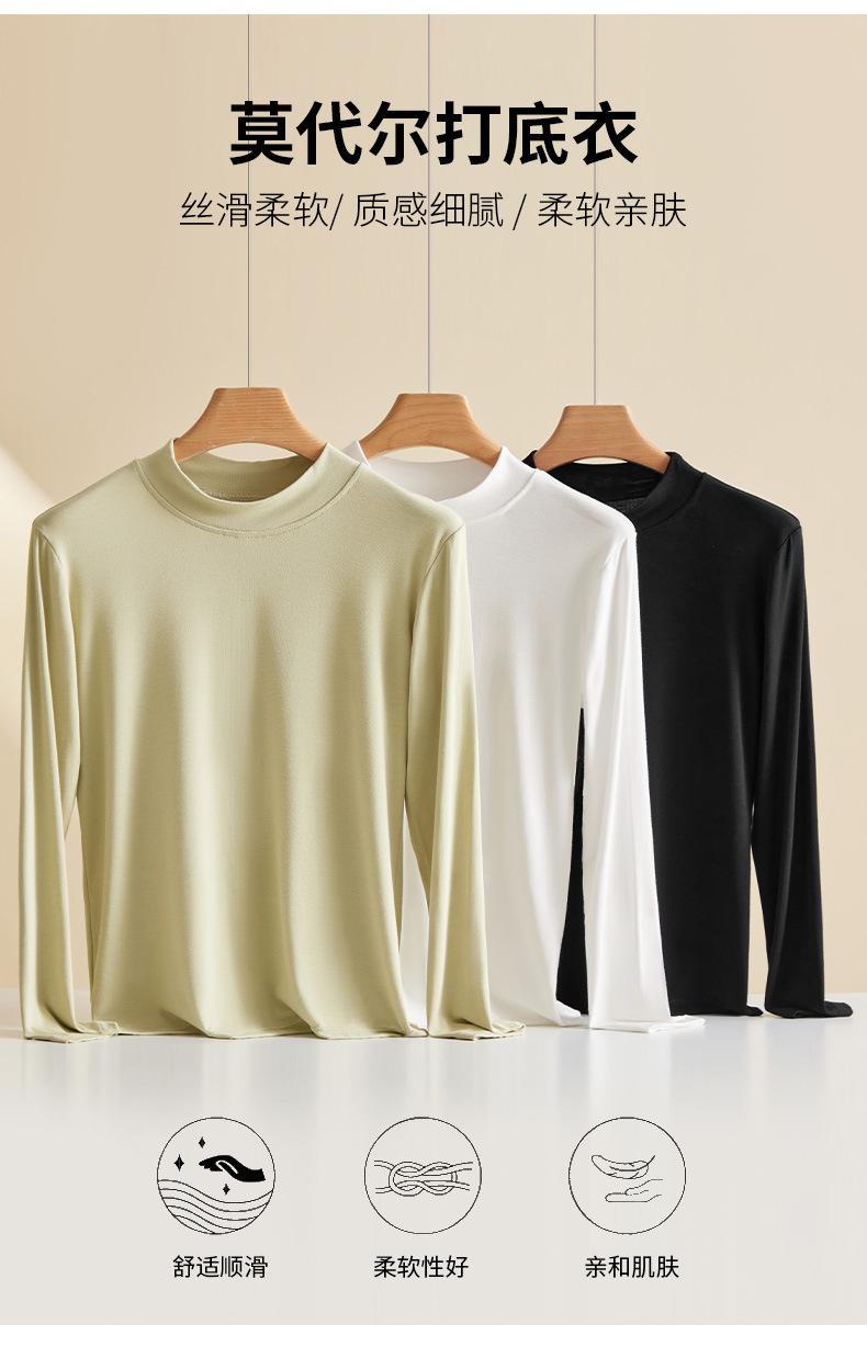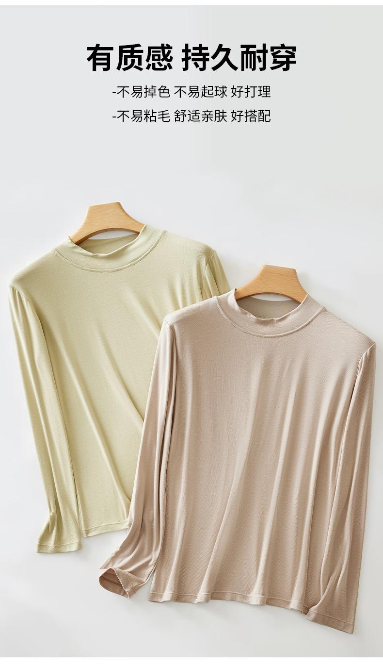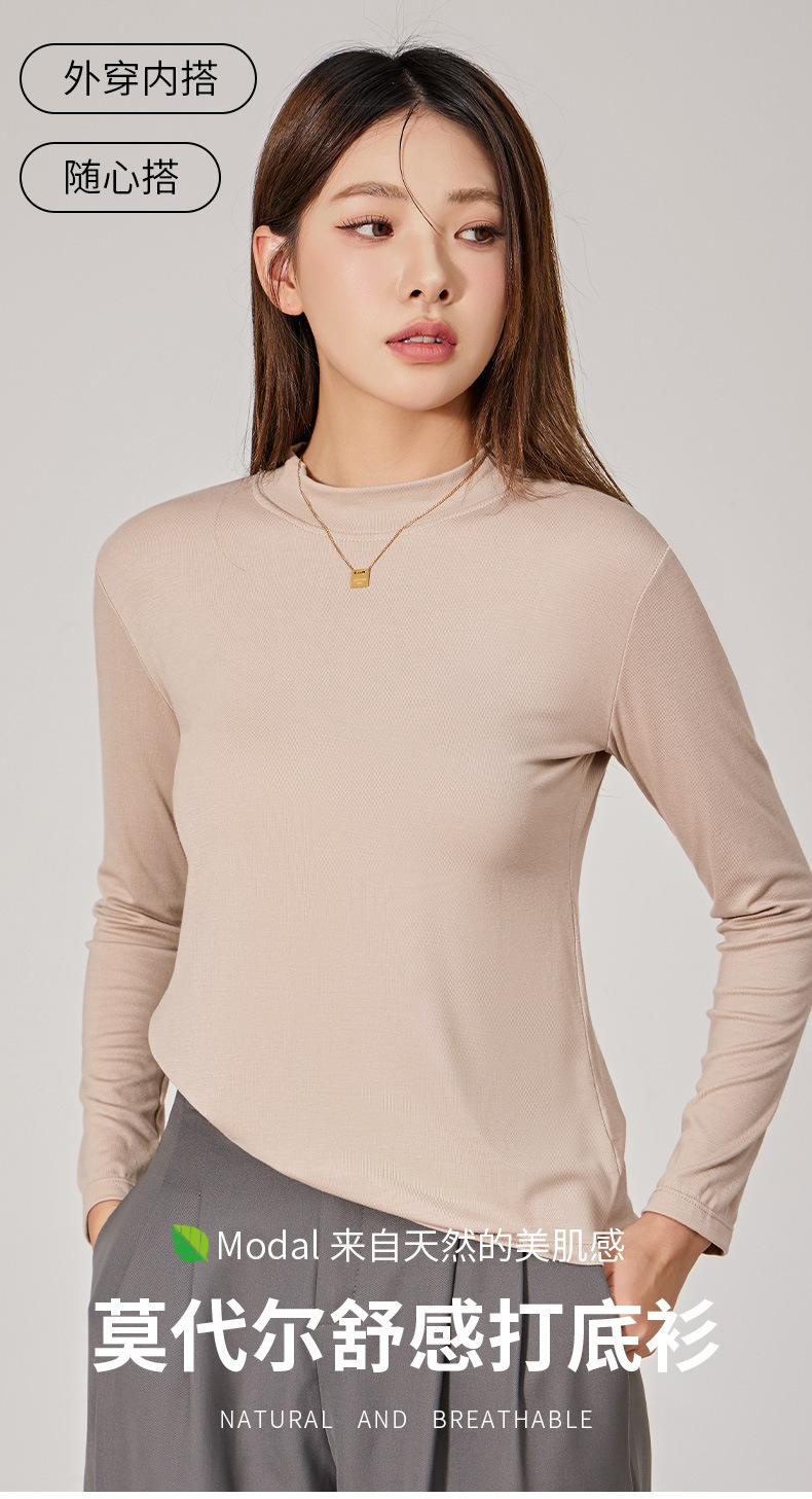 Camiseta Básica de Cuello Alto para Mujer Primavera y Otoño Abrigo Fino de Otoño 2024 Nueva Camiseta de Manga Larga Blanca Top de Cuello Medio