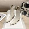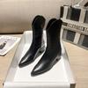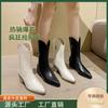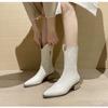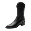 Botas Vaqueras Occidentales para Mujer 2024 Botas de Media Caña de Cuero con Tacones Gruesos, Botas de Cremallera Lateral Estilo Europeo y Americano Adelgazantes de Moda