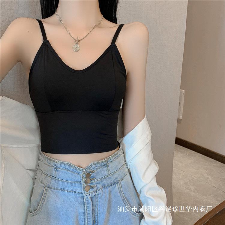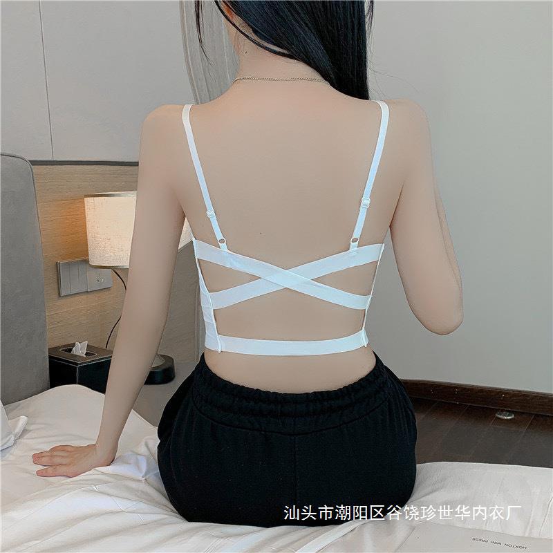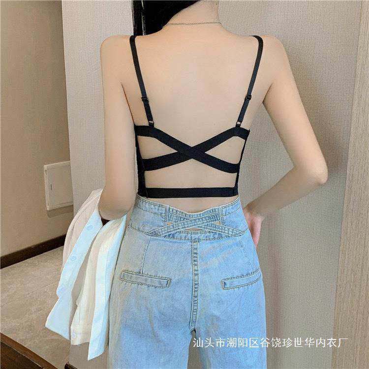 Nuevo Verano Seda de Hielo Hermosa Espalda Cruzada Tirantes Huecos Chaleco Cinturón Almohadilla para el Pecho Sin Marcas Ropa Exterior Base Tubo Superior