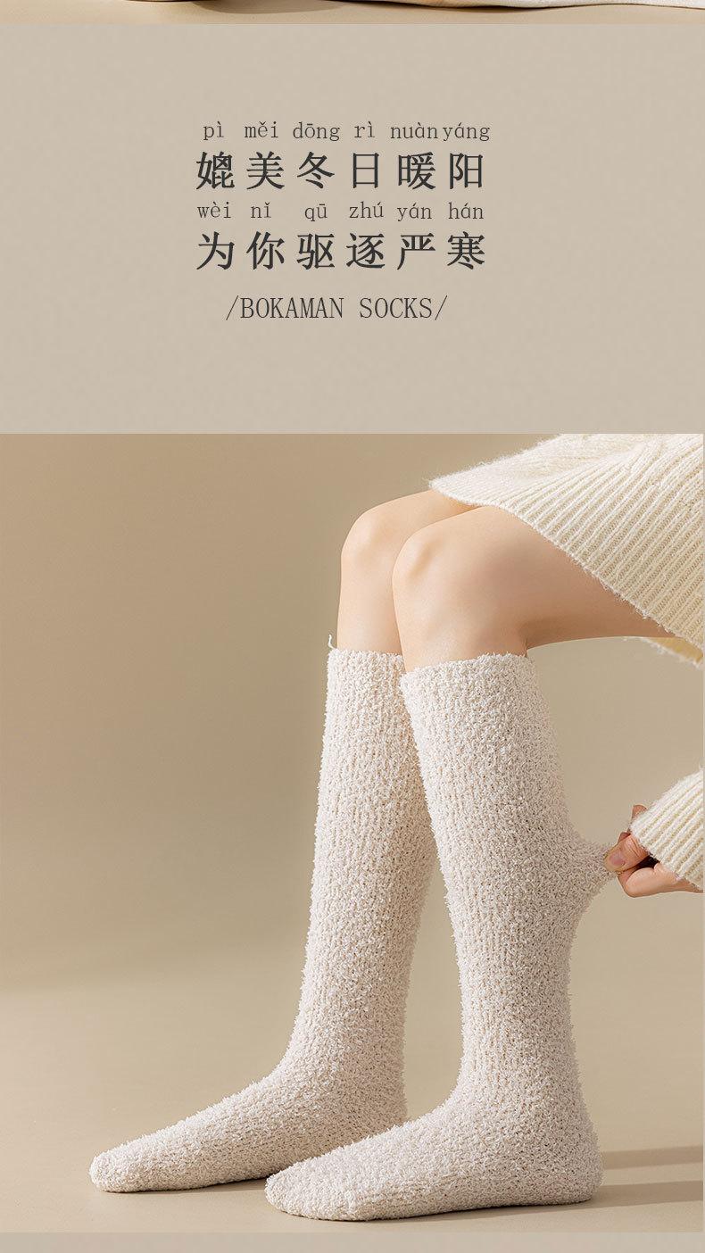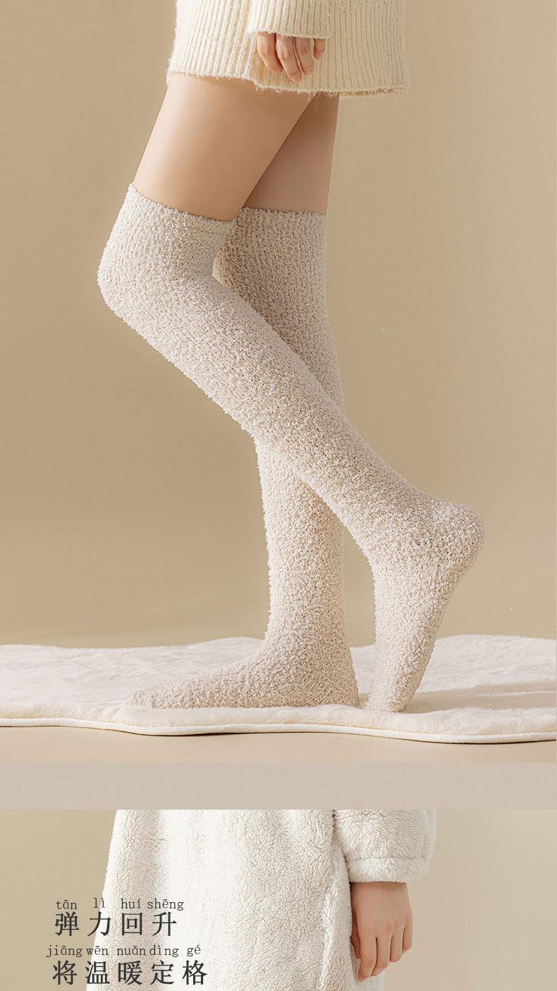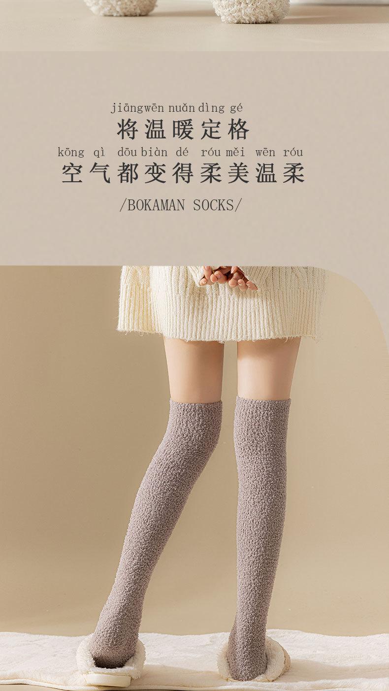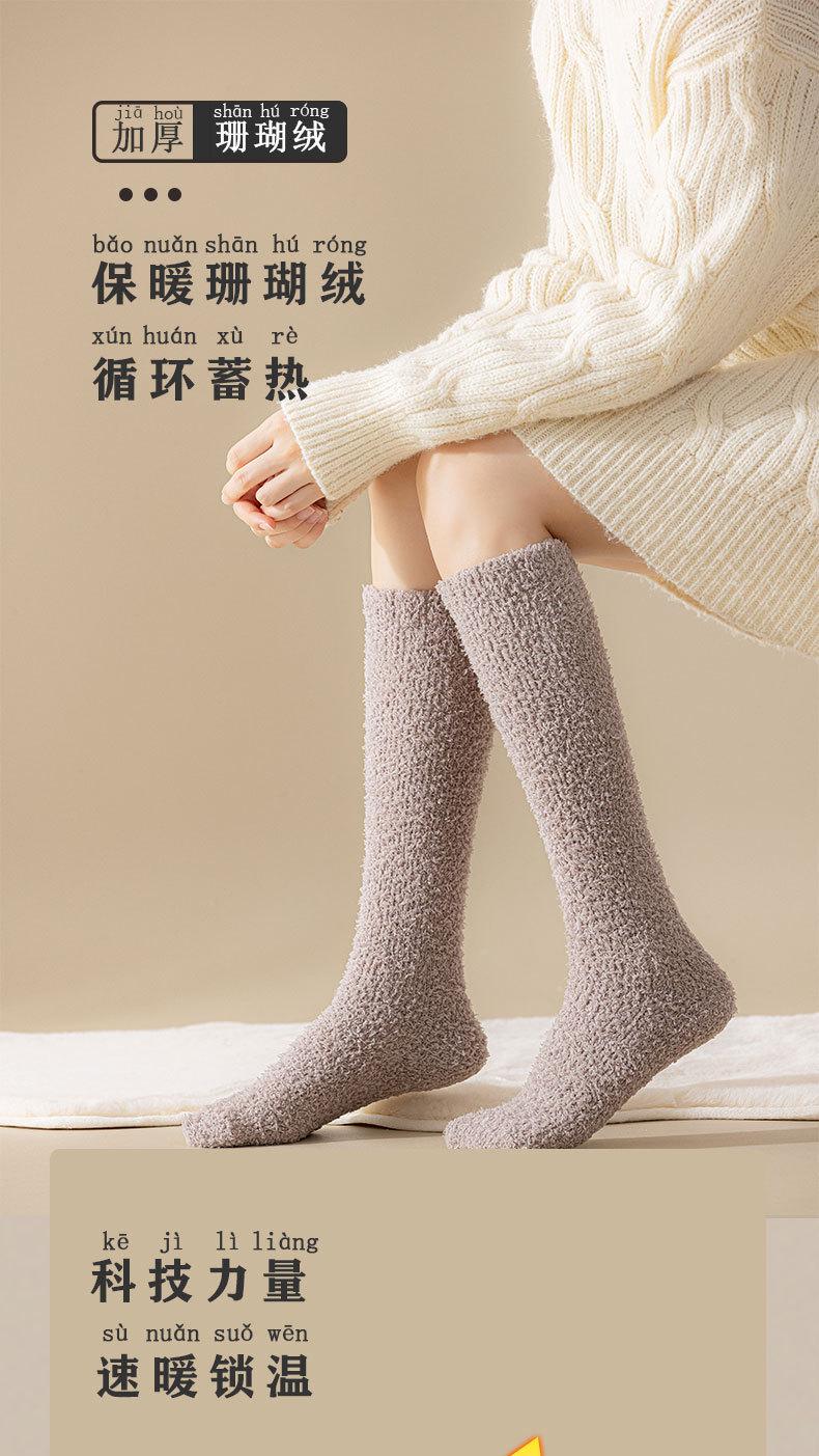 Calcetines de terciopelo coral para mujer, calcetines largos hasta la rodilla con forro polar, calcetines gruesos hasta el muslo, rodilleras, calcetines de suelo para mujer, venta al por mayor