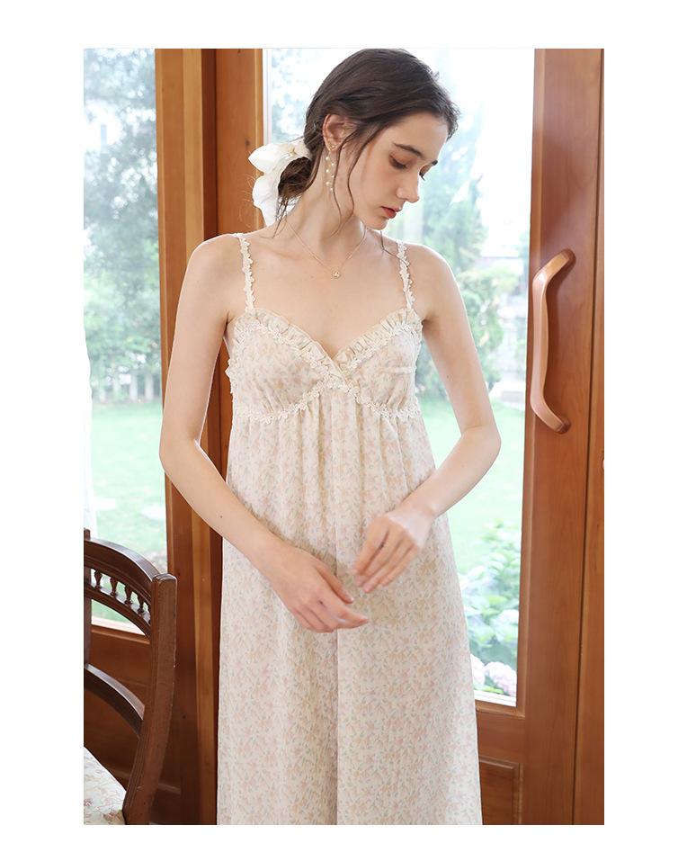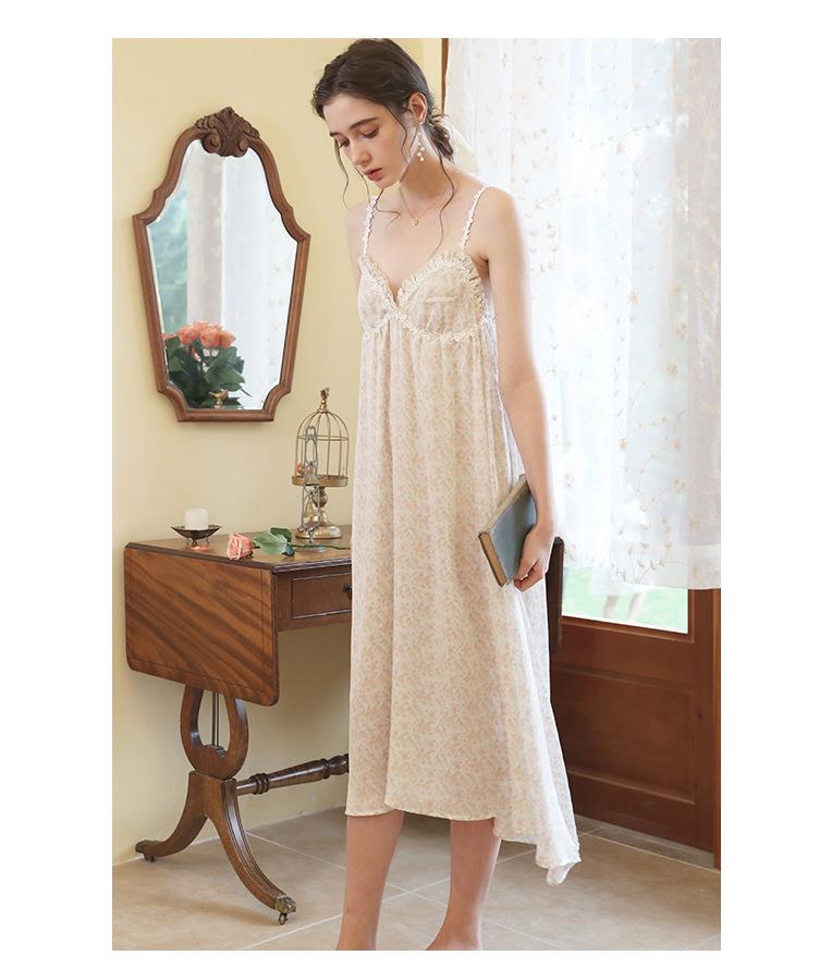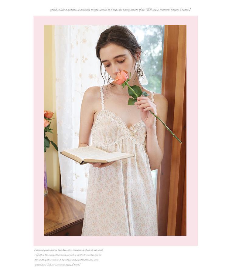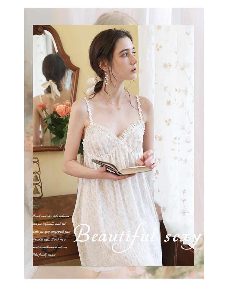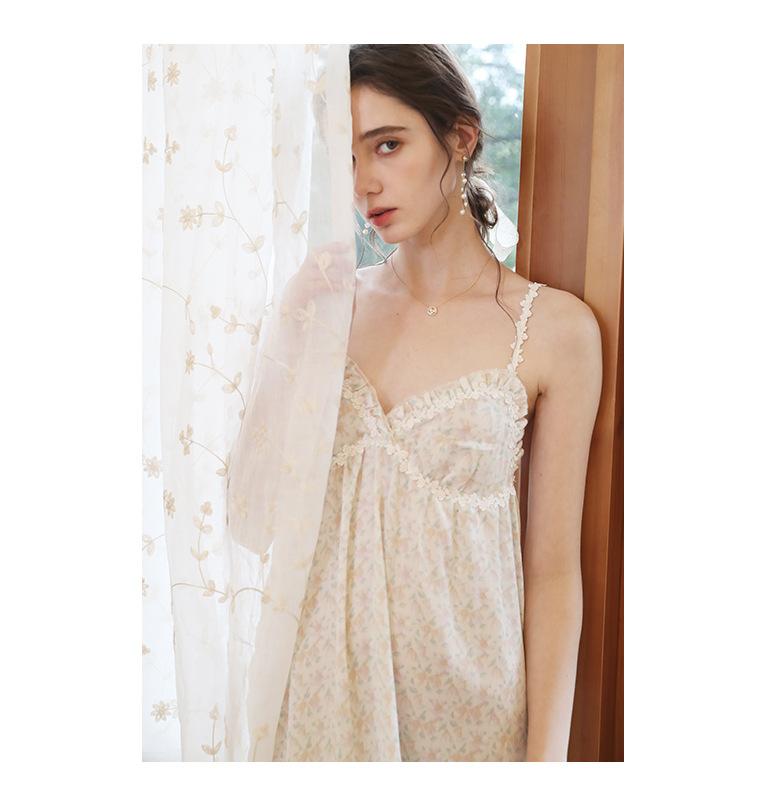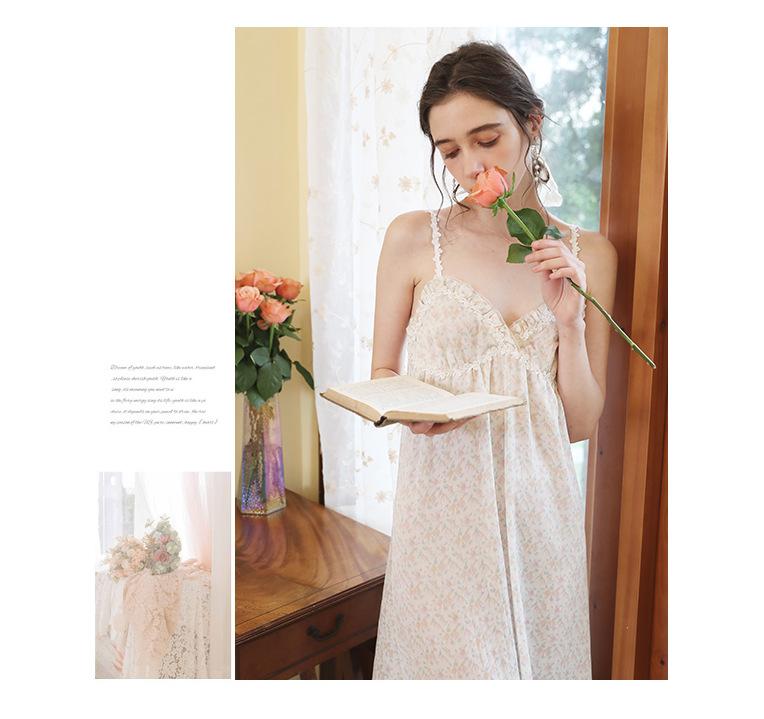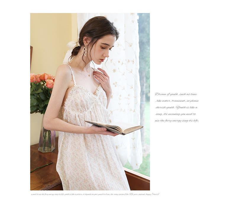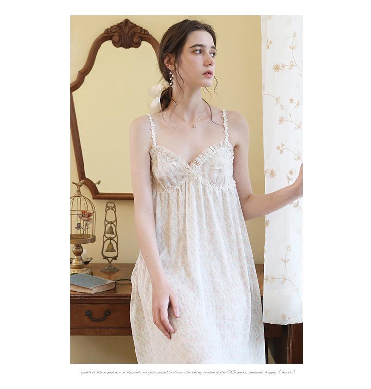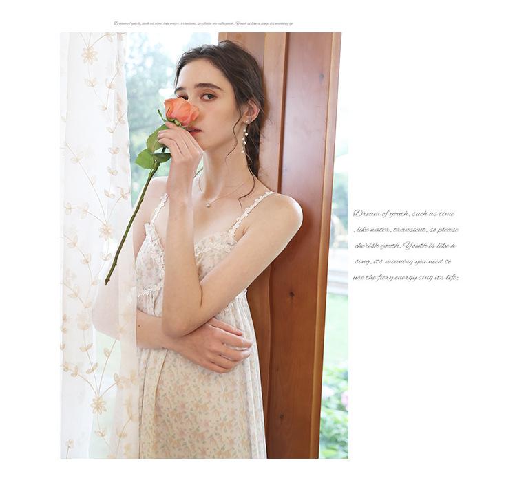 Camisón de Encaje Estampado Estilo Princesa Francesa para Mujer, Nuevo Camisón de Tirantes de Verano, Ropa para el Hogar Sexy y Dulce