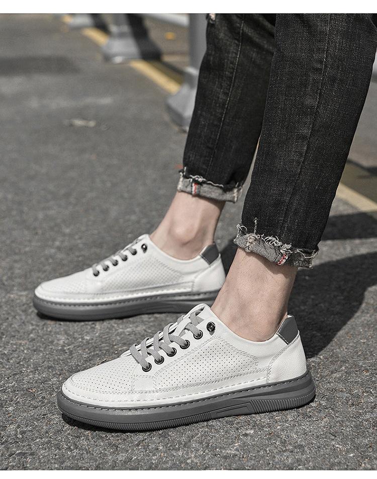 Zapatos Blancos Nuevos 2024 Cuero Vacuno Zapatos de Moda para Hombre Cómodos Zapatos Casuales de Moda para Hombre Exportación Transfronteriza Zapatos Calientes