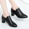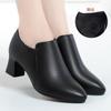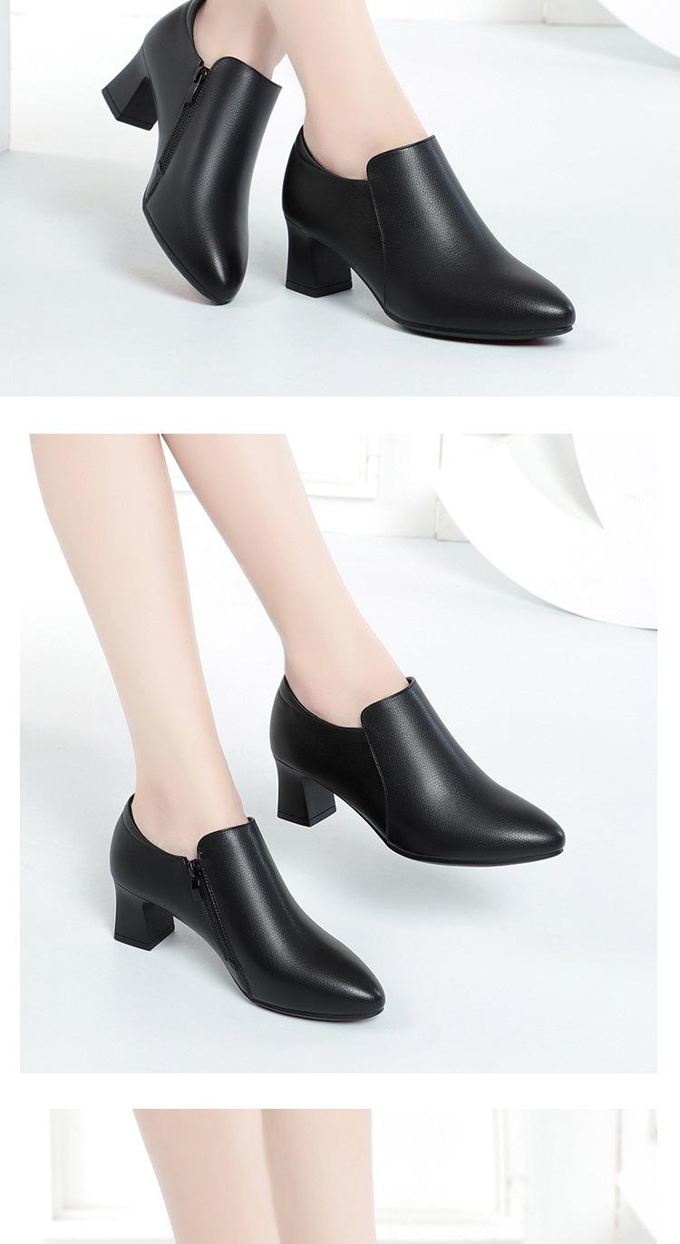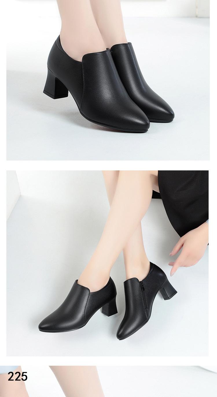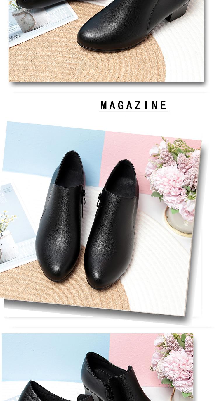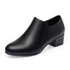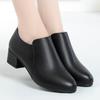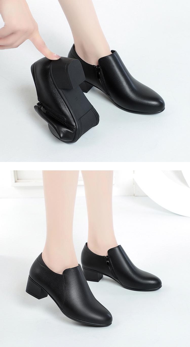 Otoño e Invierno nuevo fondo suave pies no cansados tacón grueso zapatos de mamá ropa formal zapatos profesionales de mujer boca profunda cuero de superficie suave botas cortas transpirables