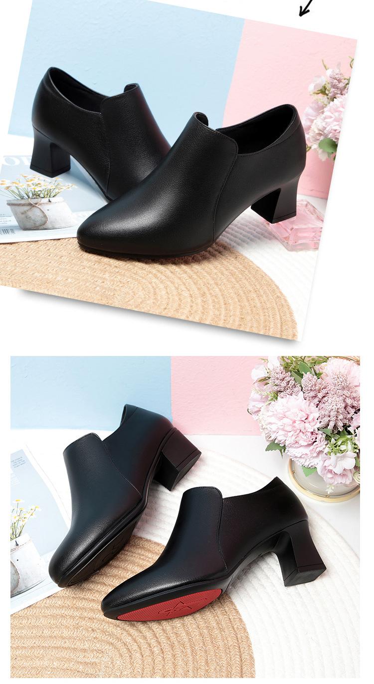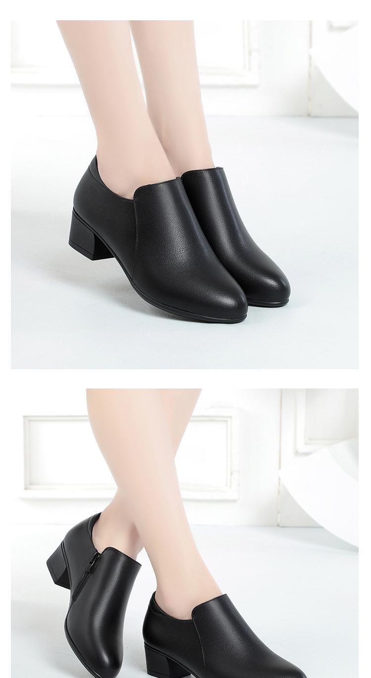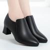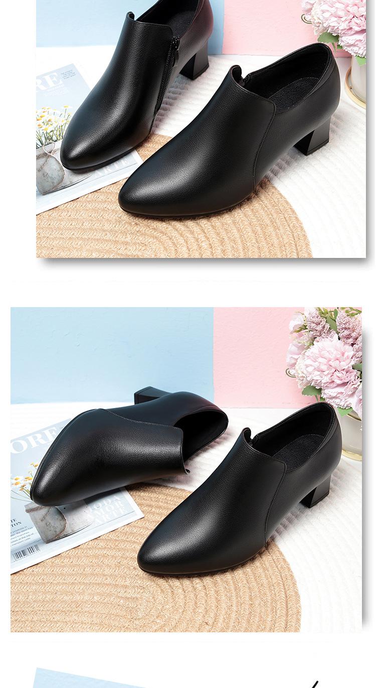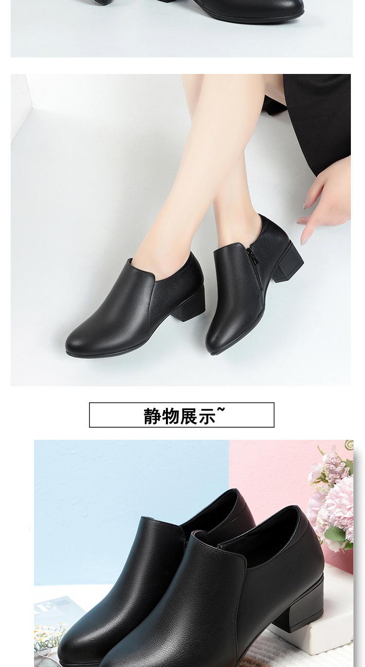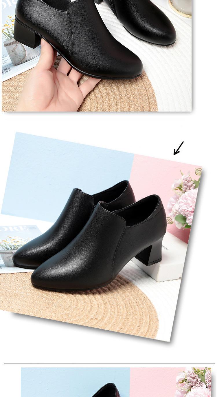 Otoño e Invierno nuevo fondo suave pies no cansados tacón grueso zapatos de mamá ropa formal zapatos profesionales de mujer boca profunda cuero de superficie suave botas cortas transpirables