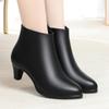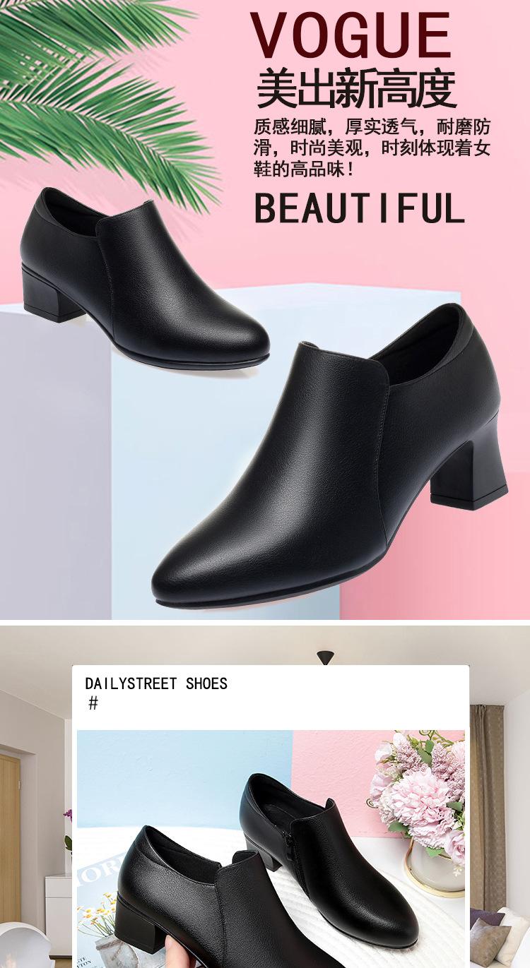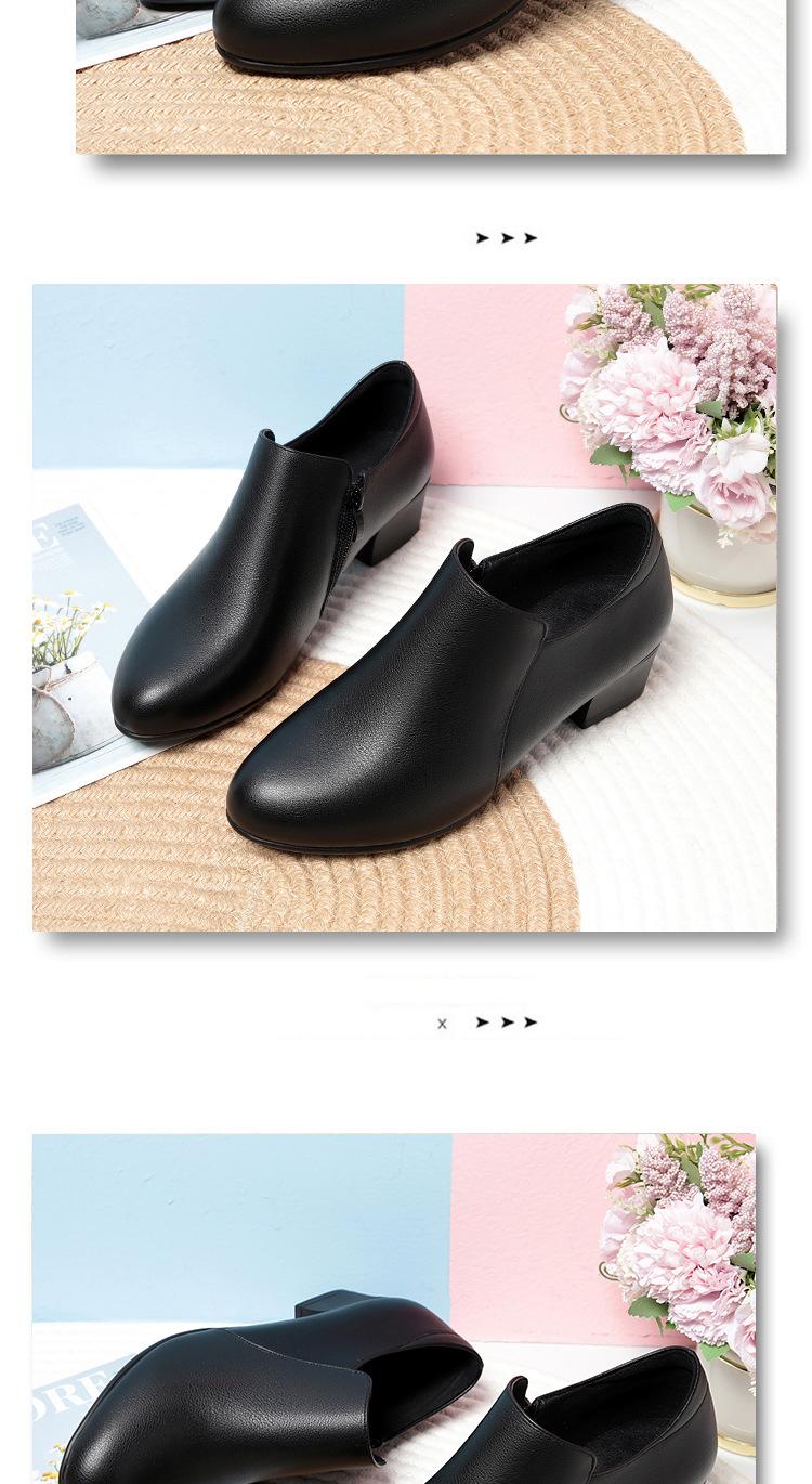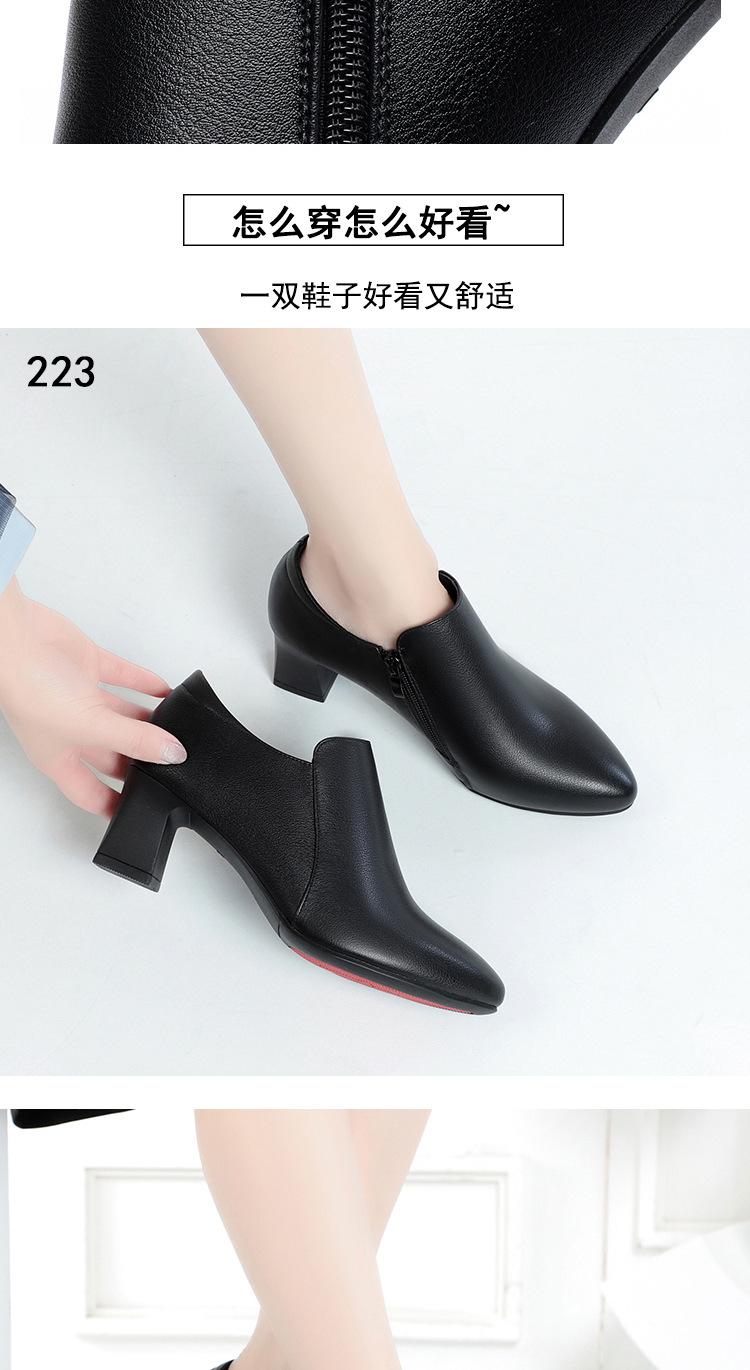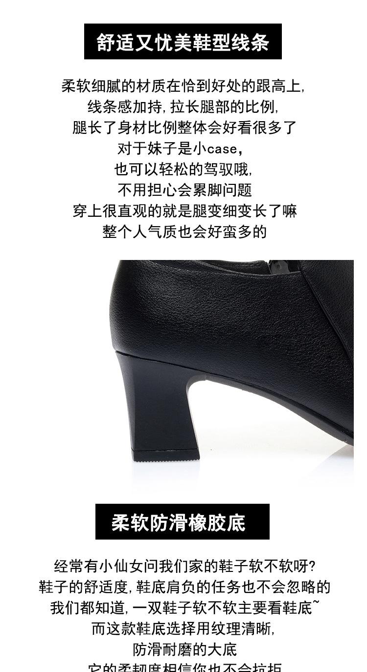 Otoño e Invierno nuevo fondo suave pies no cansados tacón grueso zapatos de mamá ropa formal zapatos profesionales de mujer boca profunda cuero de superficie suave botas cortas transpirables