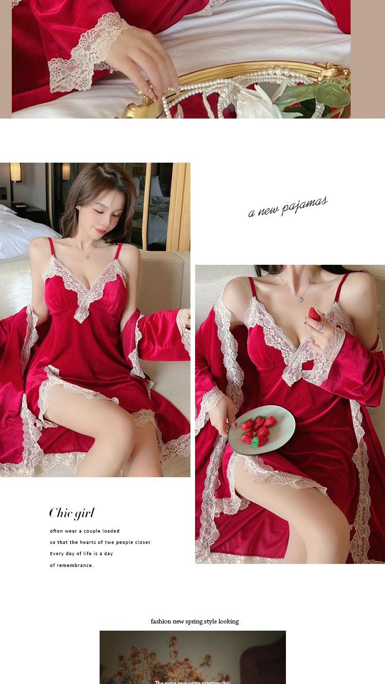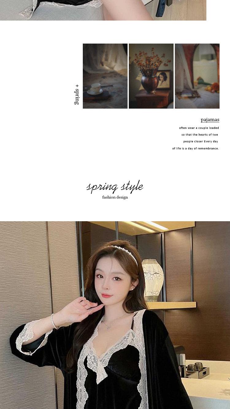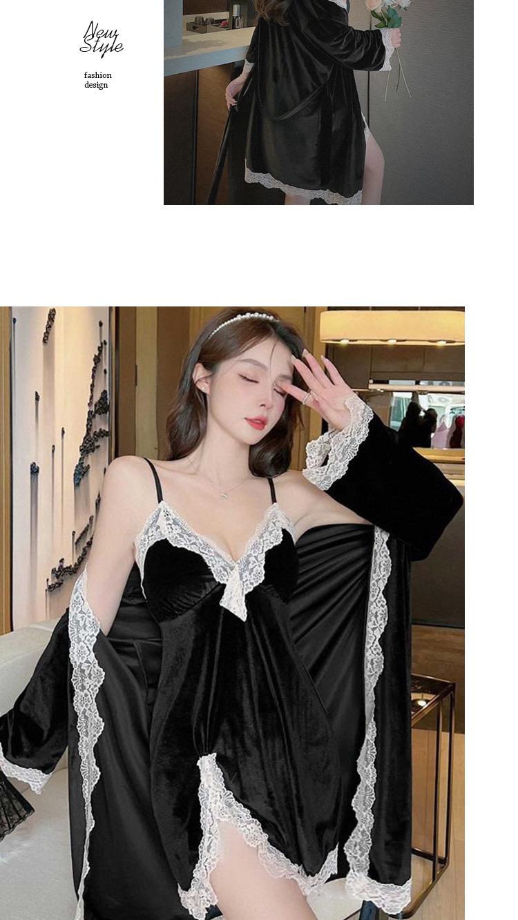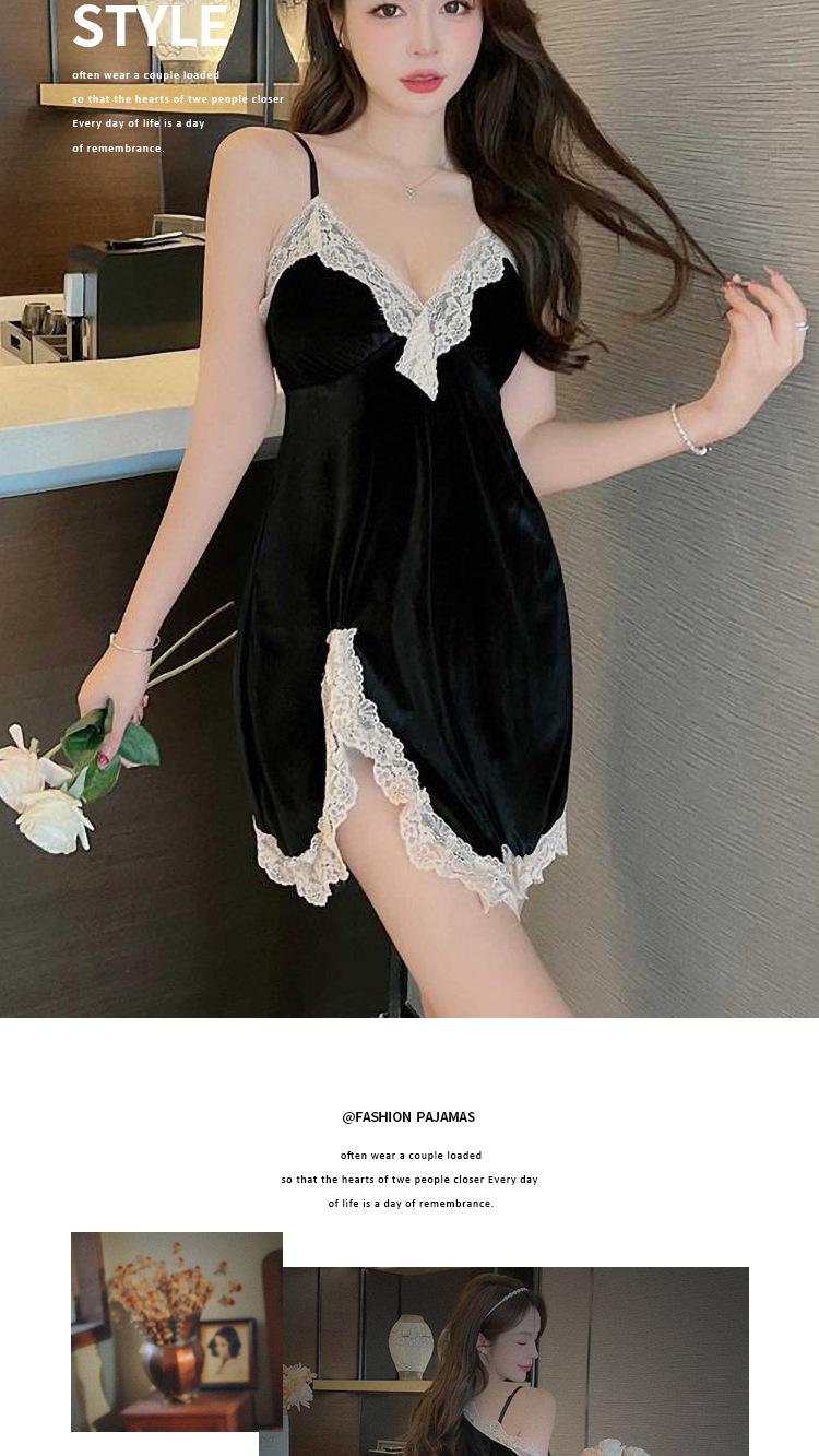 Pijama de terciopelo dorado para otoño e invierno, camisón sexy de encaje puro para mujer, camisón con escote en V profundo y tirantes con almohadilla para el pecho