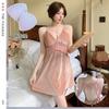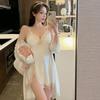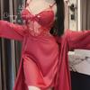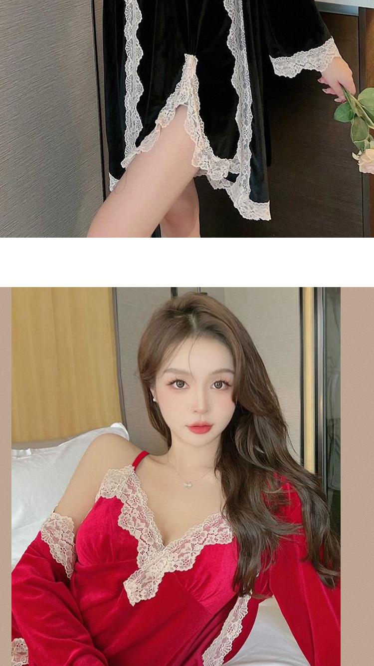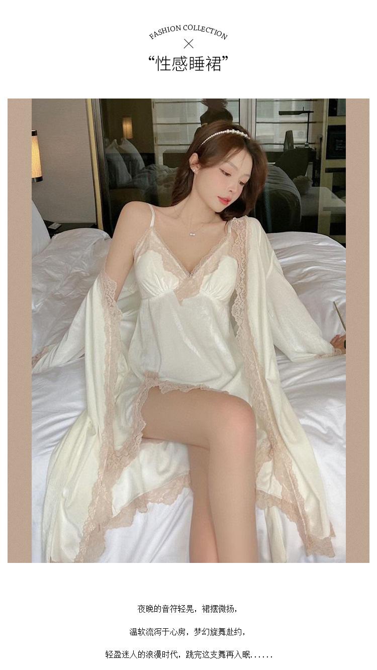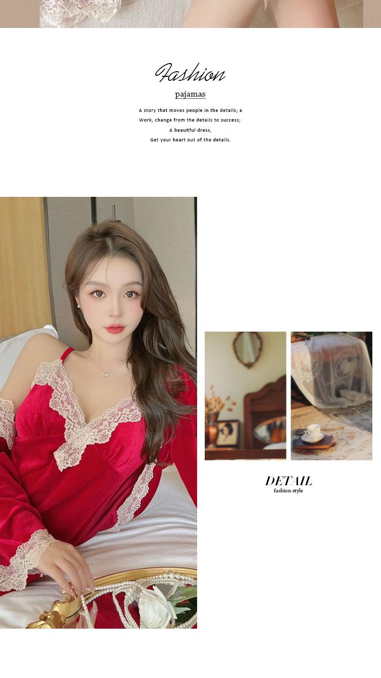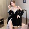 Pijama de terciopelo dorado para otoño e invierno, camisón sexy de encaje puro para mujer, camisón con escote en V profundo y tirantes con almohadilla para el pecho