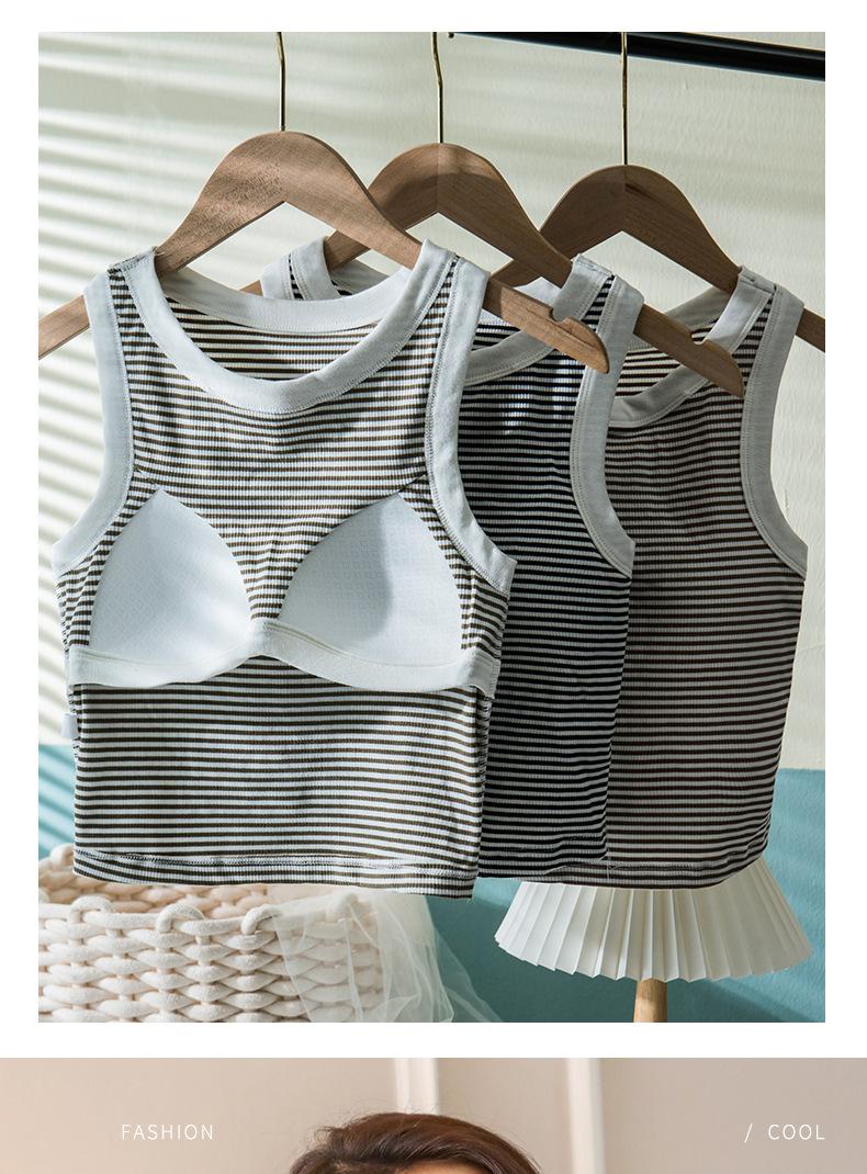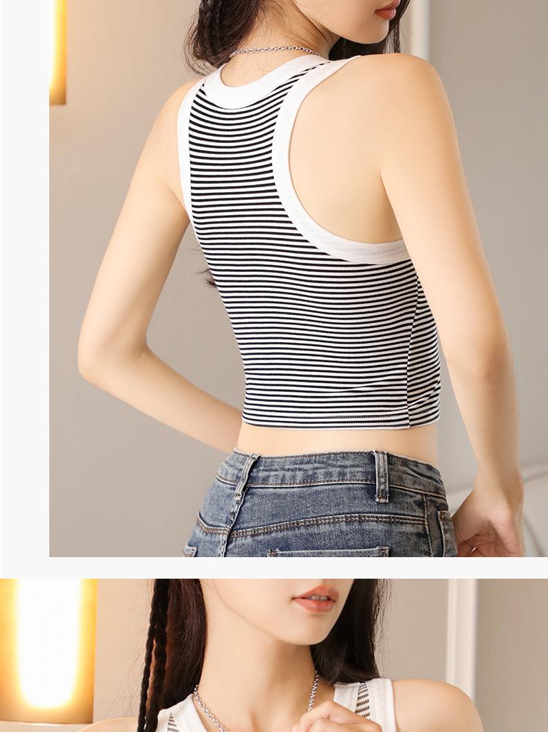 Nuevo chaleco básico a rayas para mujer de una pieza con almohadilla en el pecho en forma de I, hermosa espalda, para uso interior y exterior, top de alta elasticidad para mujer