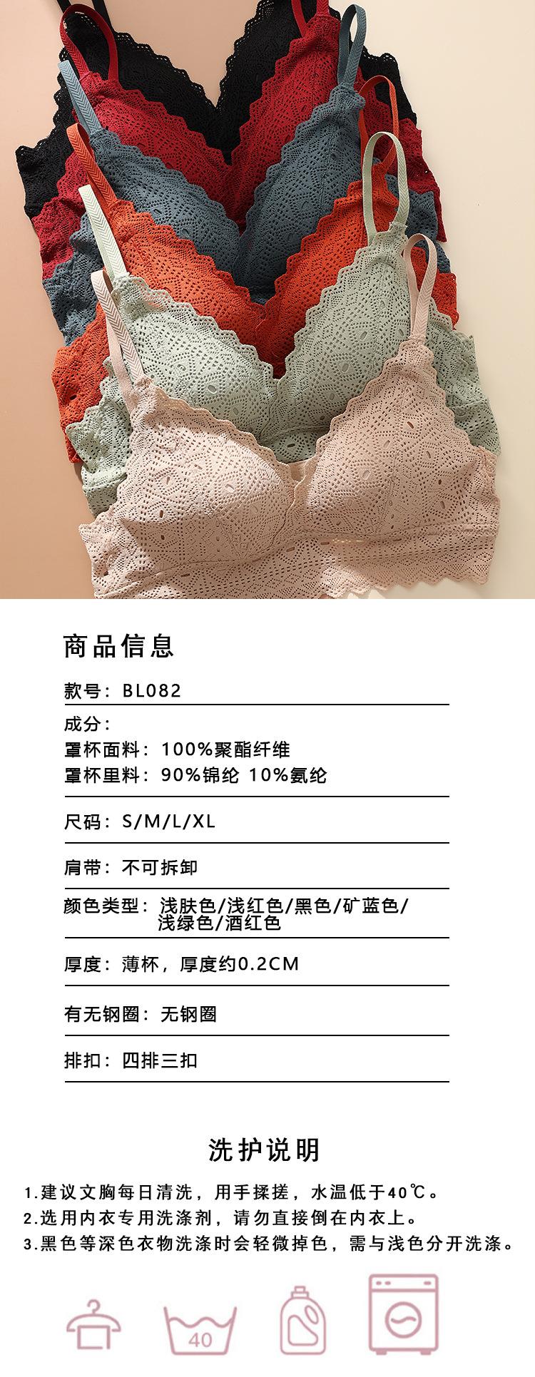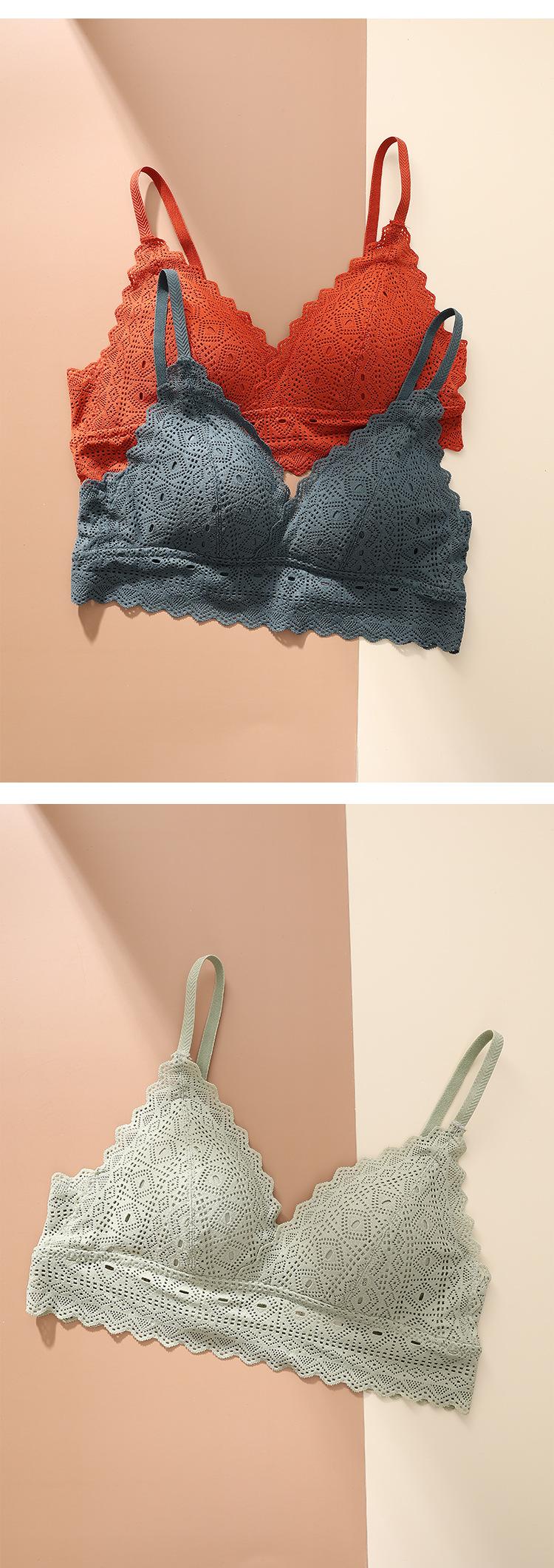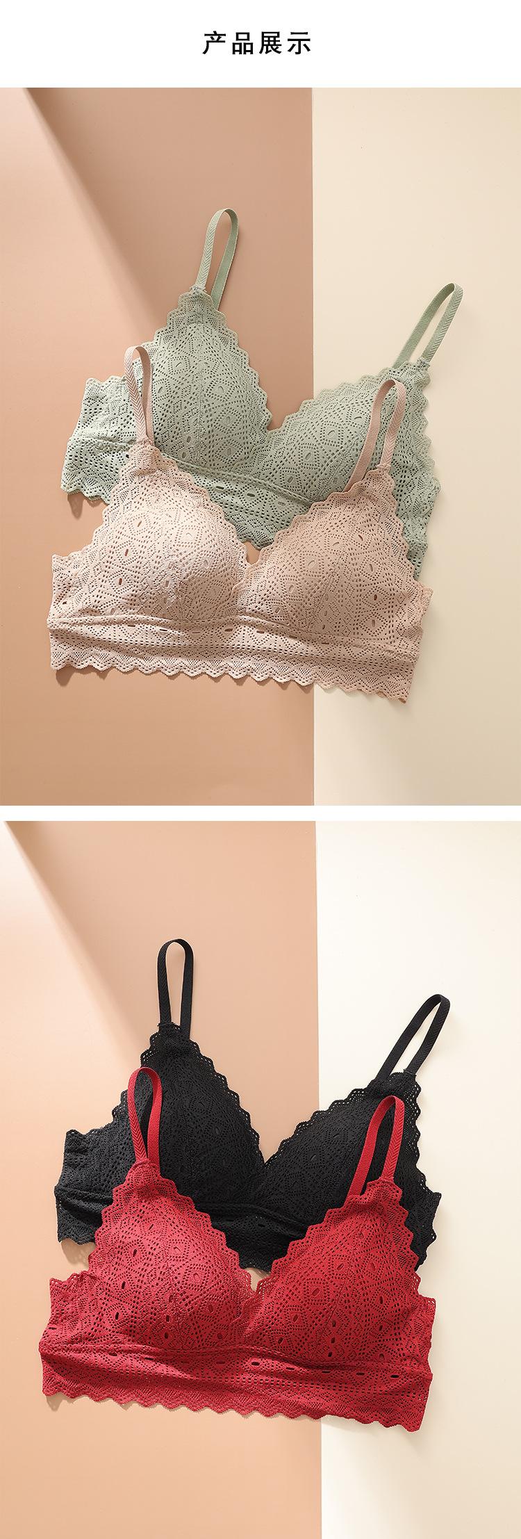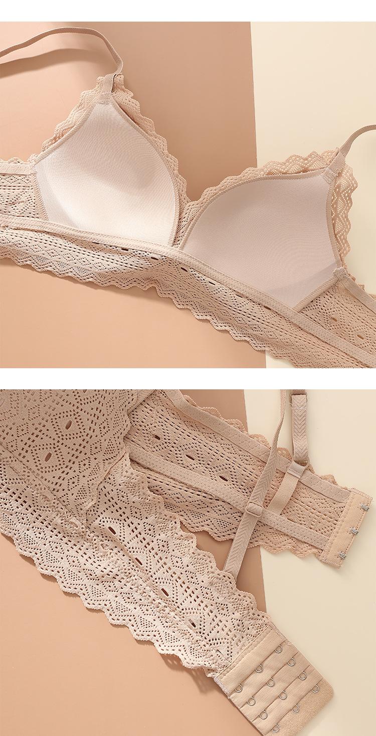 Sujetador de copa triangular francesa, sexy, de encaje, sin aros de acero, fino, fruncido, con escote pequeño, cómodo y transpirable, BL082