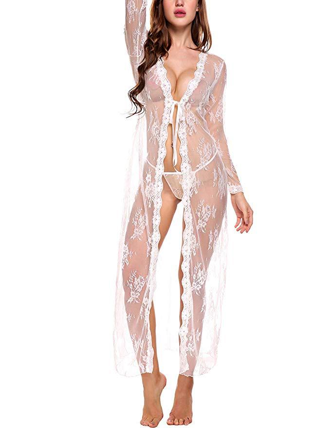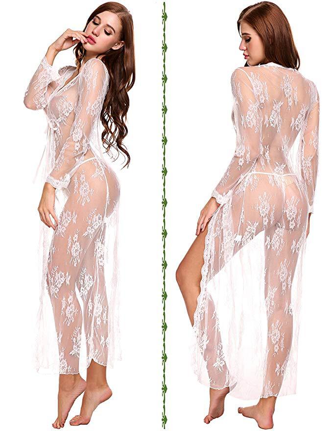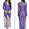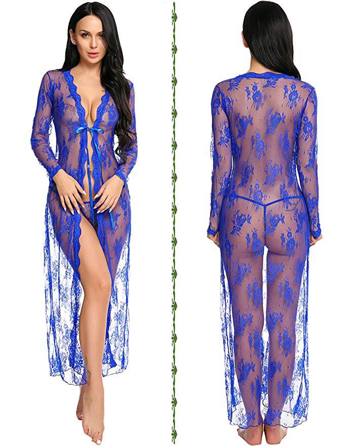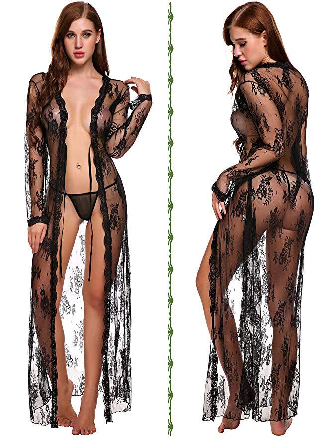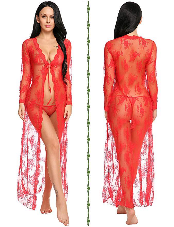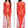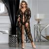 Suministro Transfronterizo Comercio Exterior Europeo y Americano Lencería Sexy Sexy Malla Transparente Camisón de Encaje de Manga Larga Fabricante Venta al por Mayor