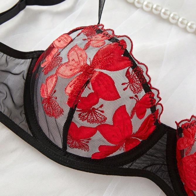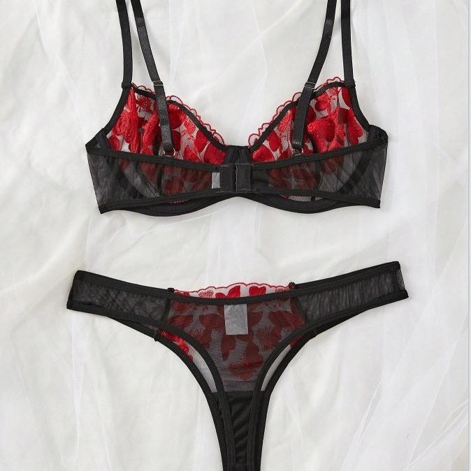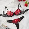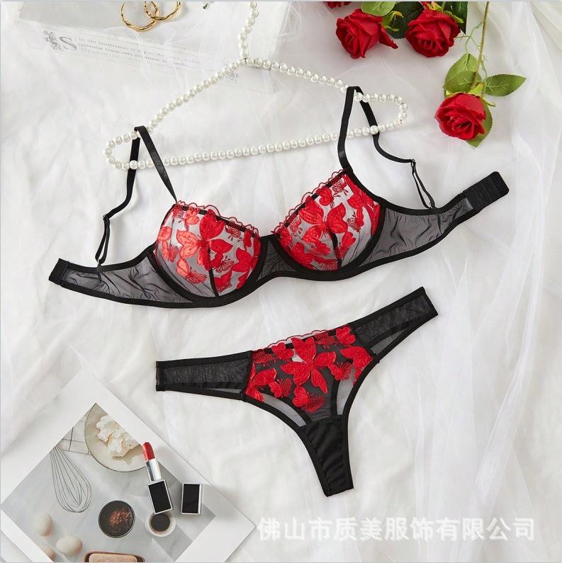 Y2023 Lencería Sexy Transparente Negra Fresca Ultradelgada con Aros Push-Up Set de Brasier y Panties 23049