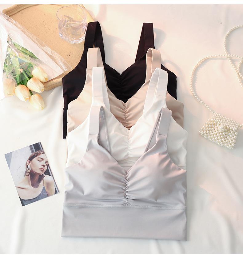 Chaleco de satén de seda de hielo para mujer, sexy, push-up, de látex, cómodo y agradable para la piel, con tirantes anchos, suministro directo de fábrica.