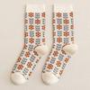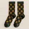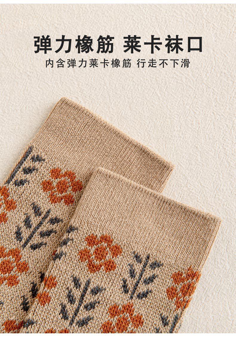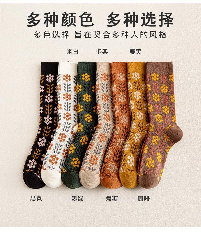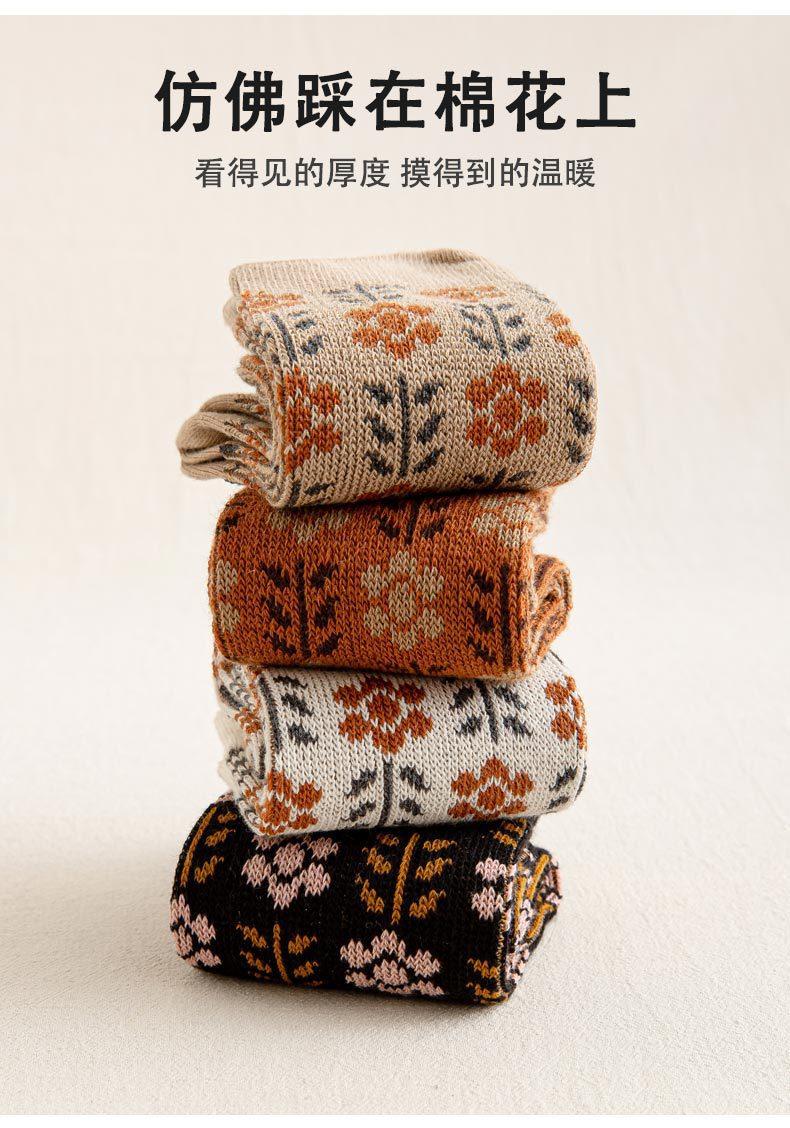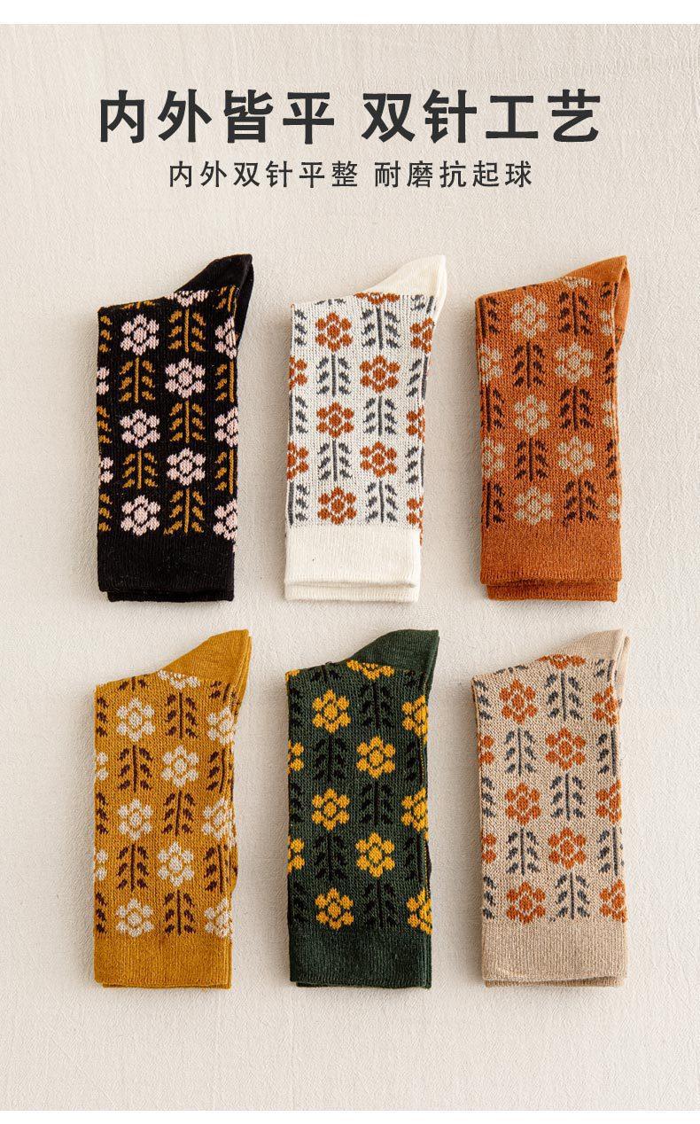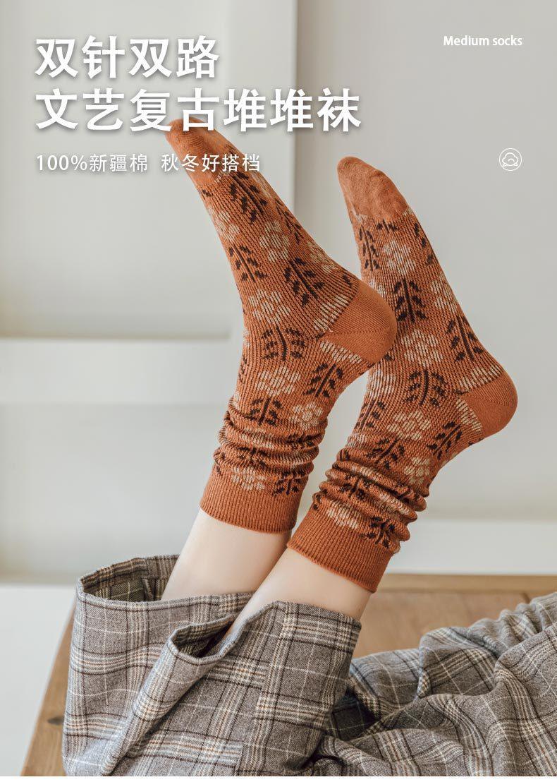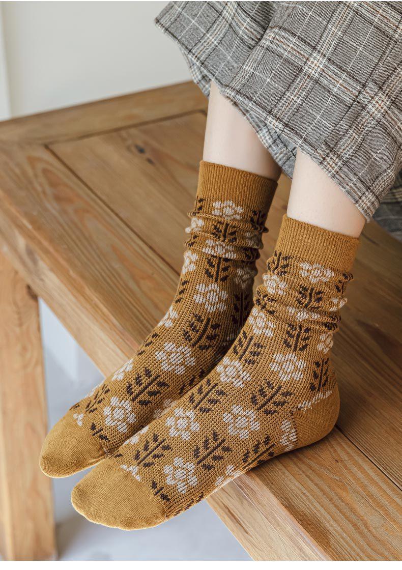 Calcetines Caqui para Mujer Primavera y Otoño Calcetines de Media Caña Algodón Puro Estilo Francés Retro Calcetines Largos de Algodón Doble Aguja Calcetines Acolchados