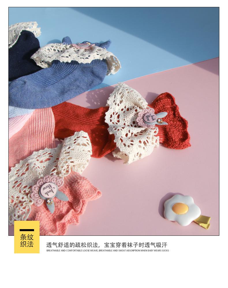 Calcetines de algodón para niñas, calcetines de bebé de primavera y verano, calcetines finos de encaje de princesa, calcetines de tubo para bebés y niños, venta al por mayor