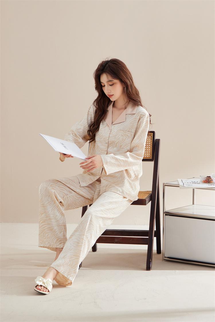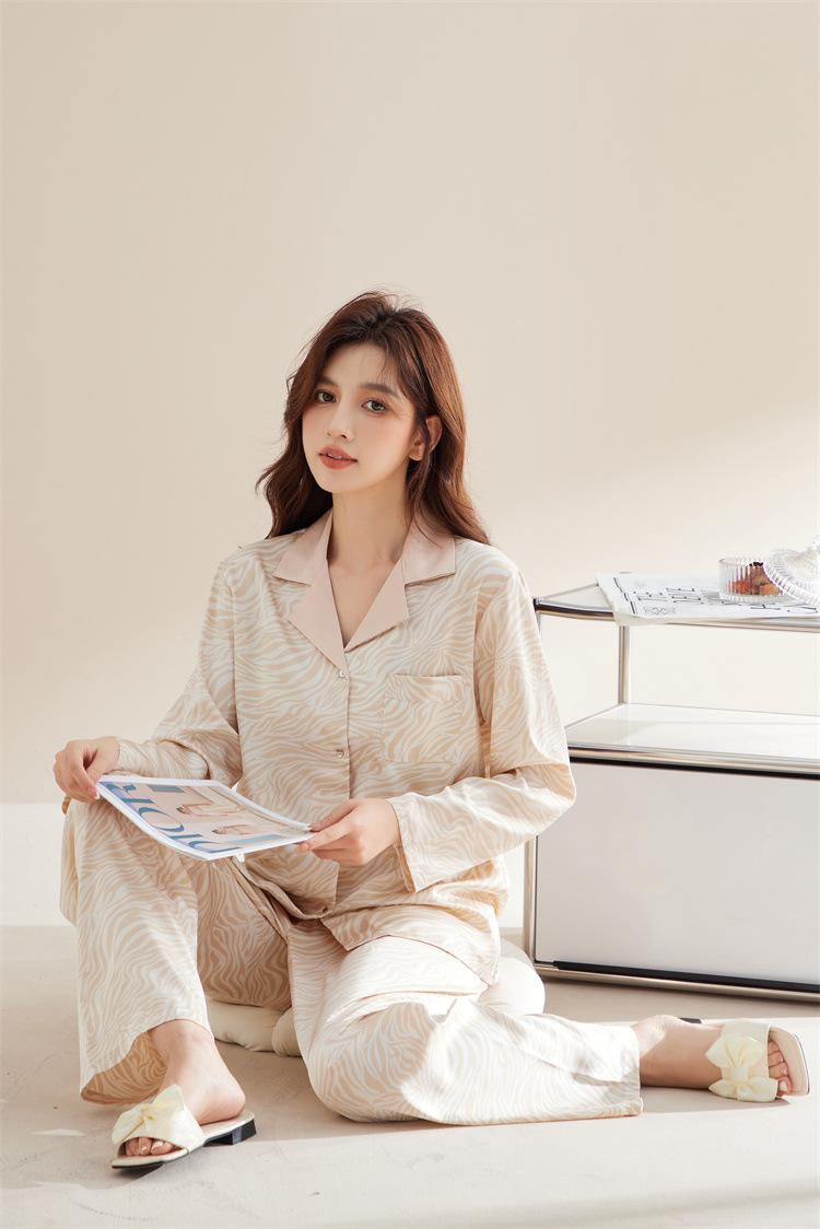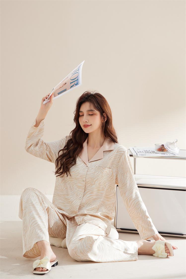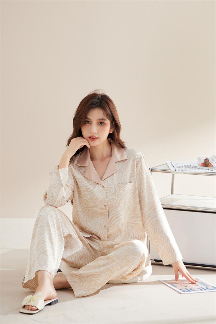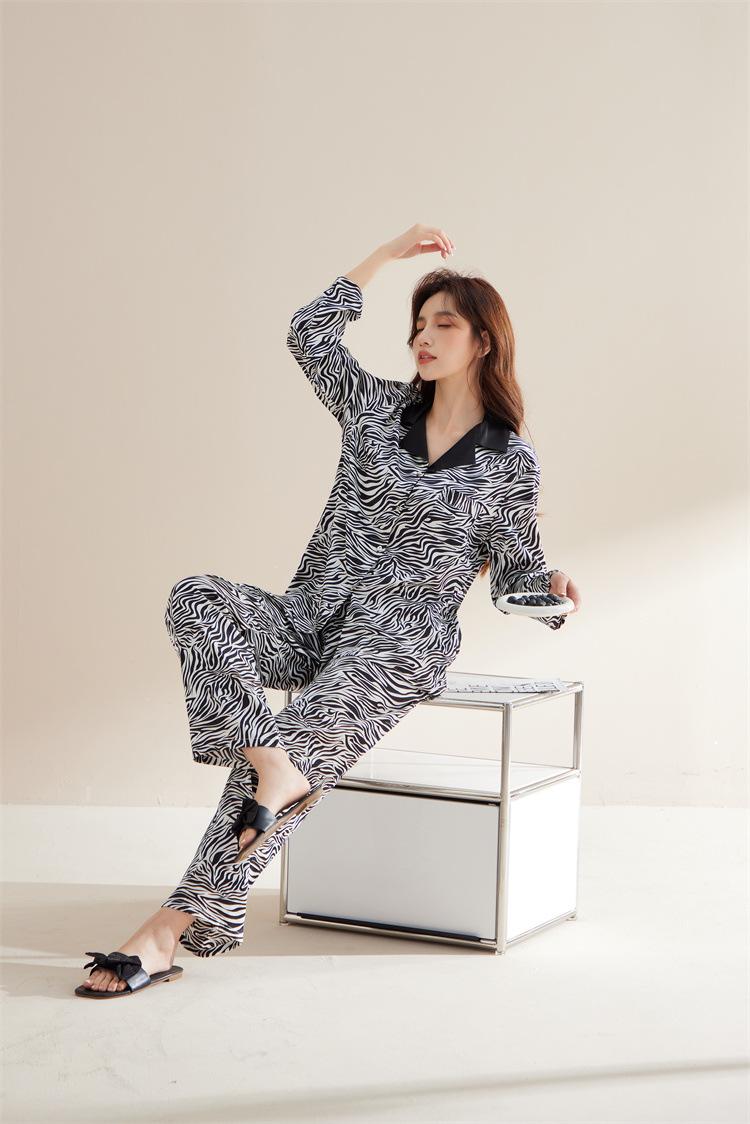 Pijama de Seda de Hielo Nuevo 2024 para Mujer Moda de Primavera y Otoño Estampado de Cebra Manga Larga Pantalón Conjunto de Dos Piezas Ropa para el Hogar