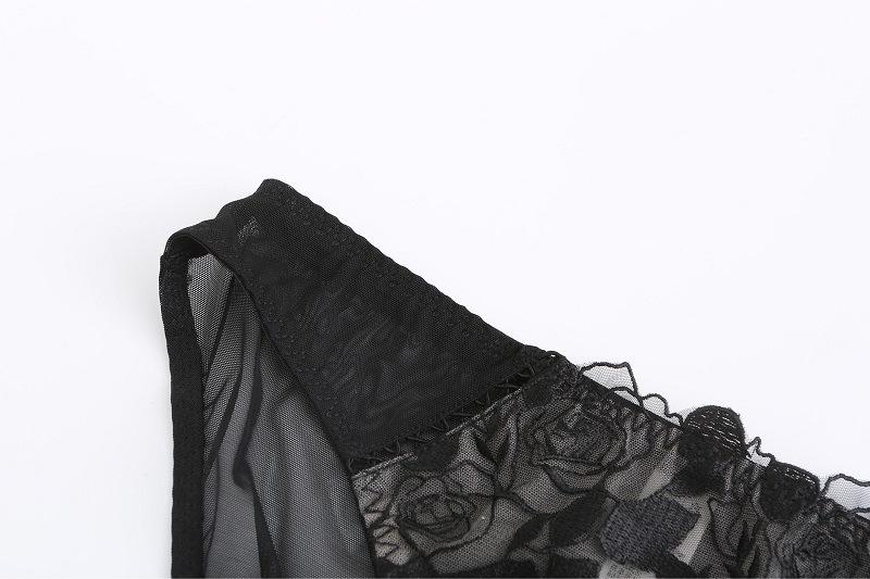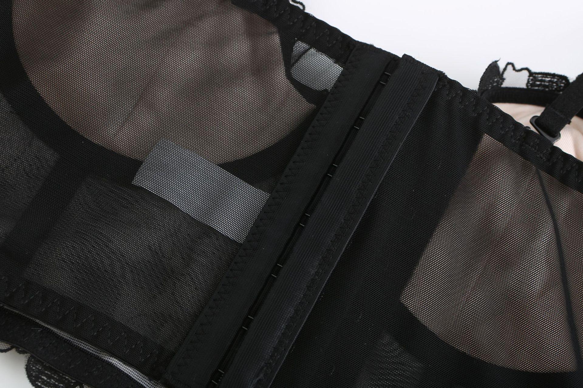 Fabricantes al por mayor de ropa interior de encaje transparente fino y sexy nuevo, sujetador de mujer con escote pequeño fruncido, conjunto de sujetador de talla grande |