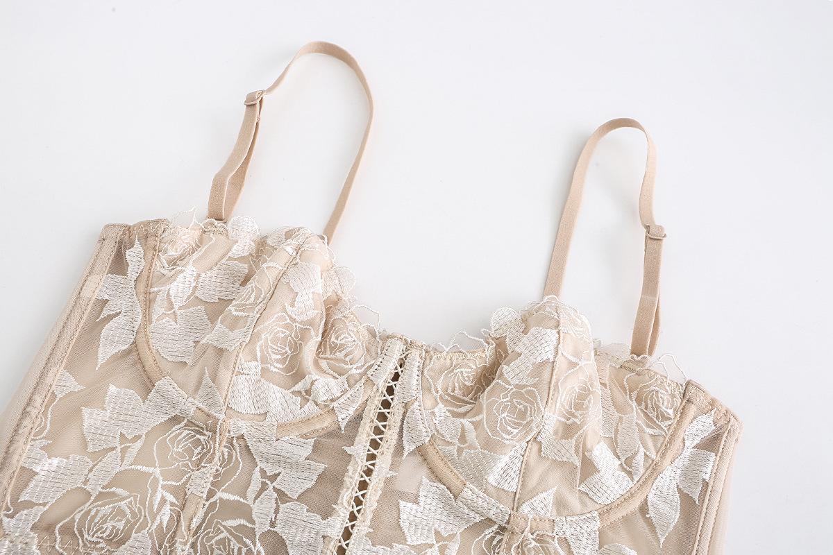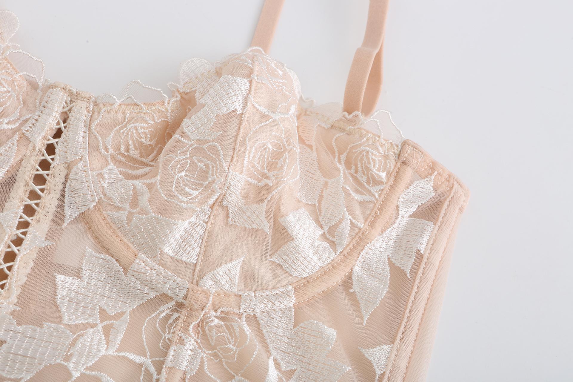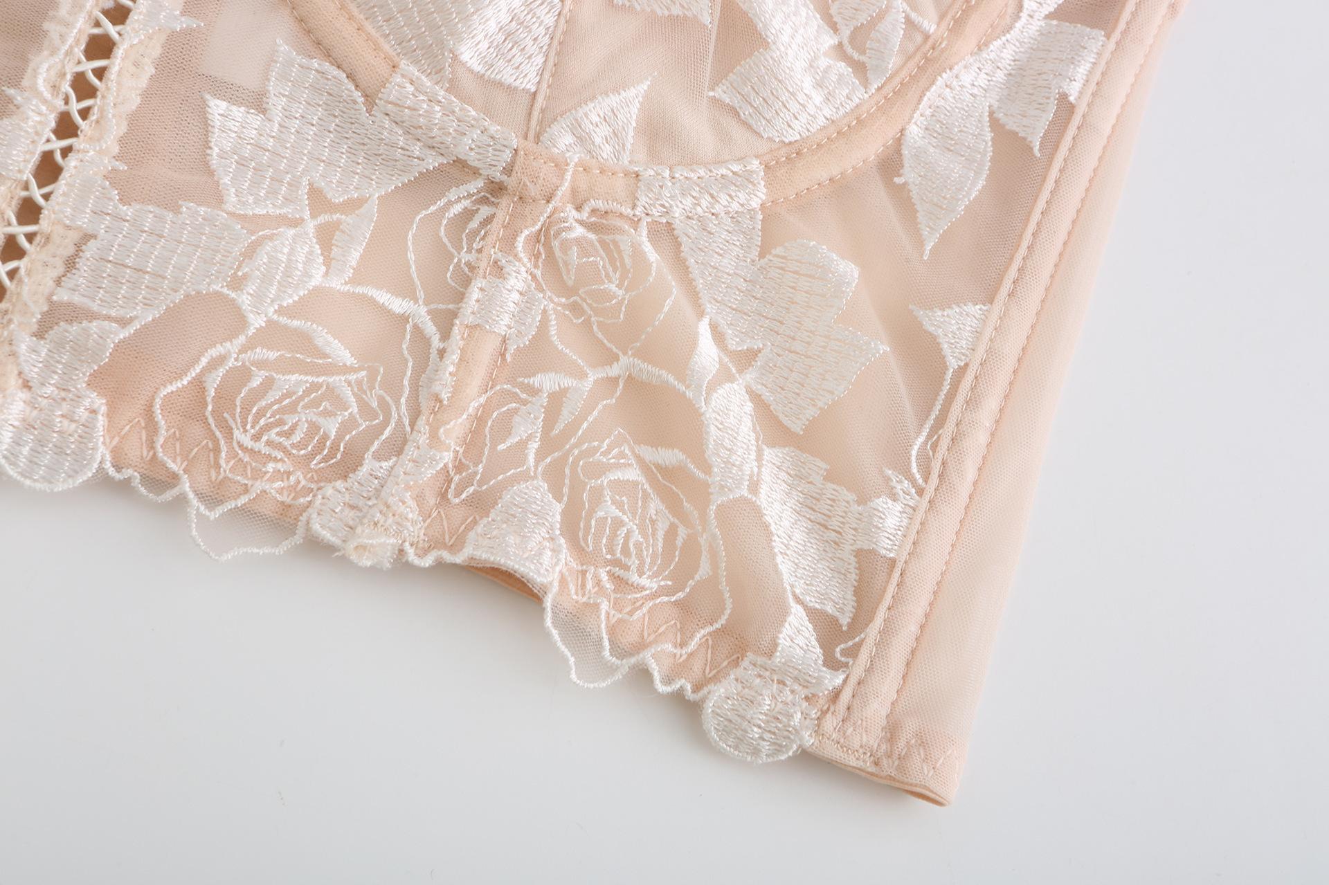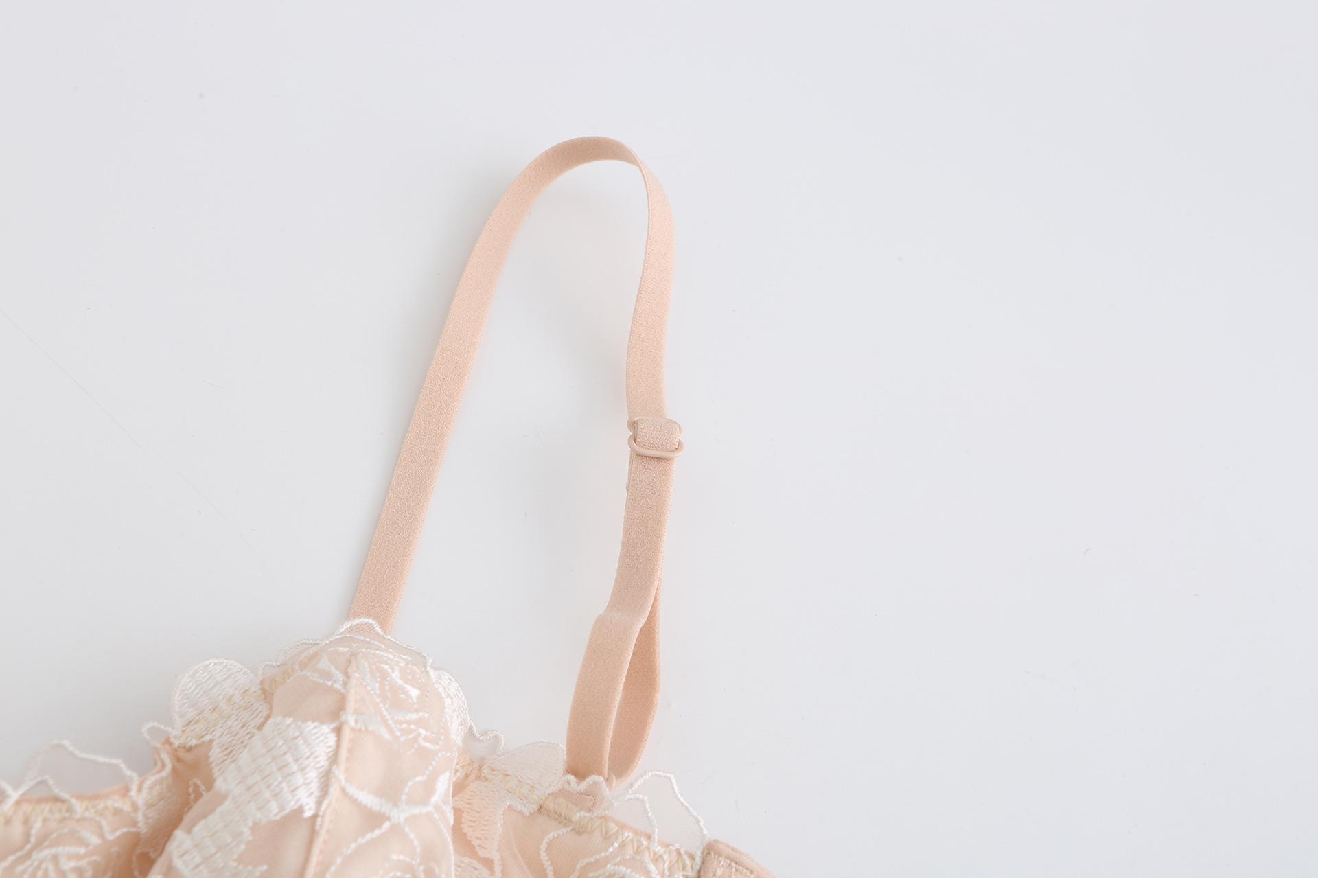 Ropa interior francesa sexy de encaje bordado con flores, sujetador pequeño de pecho grande, conjunto de sujetador fruncido con aro de acero suave y orejas de conejo |