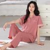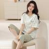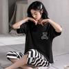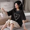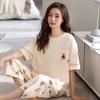 Pijama de Algodón Puro para Mujer de Verano 2025, Pantalones Recortados de Manga Corta, Holgado, Cuello Redondo, Ropa Casual para el Hogar, Traje Simple