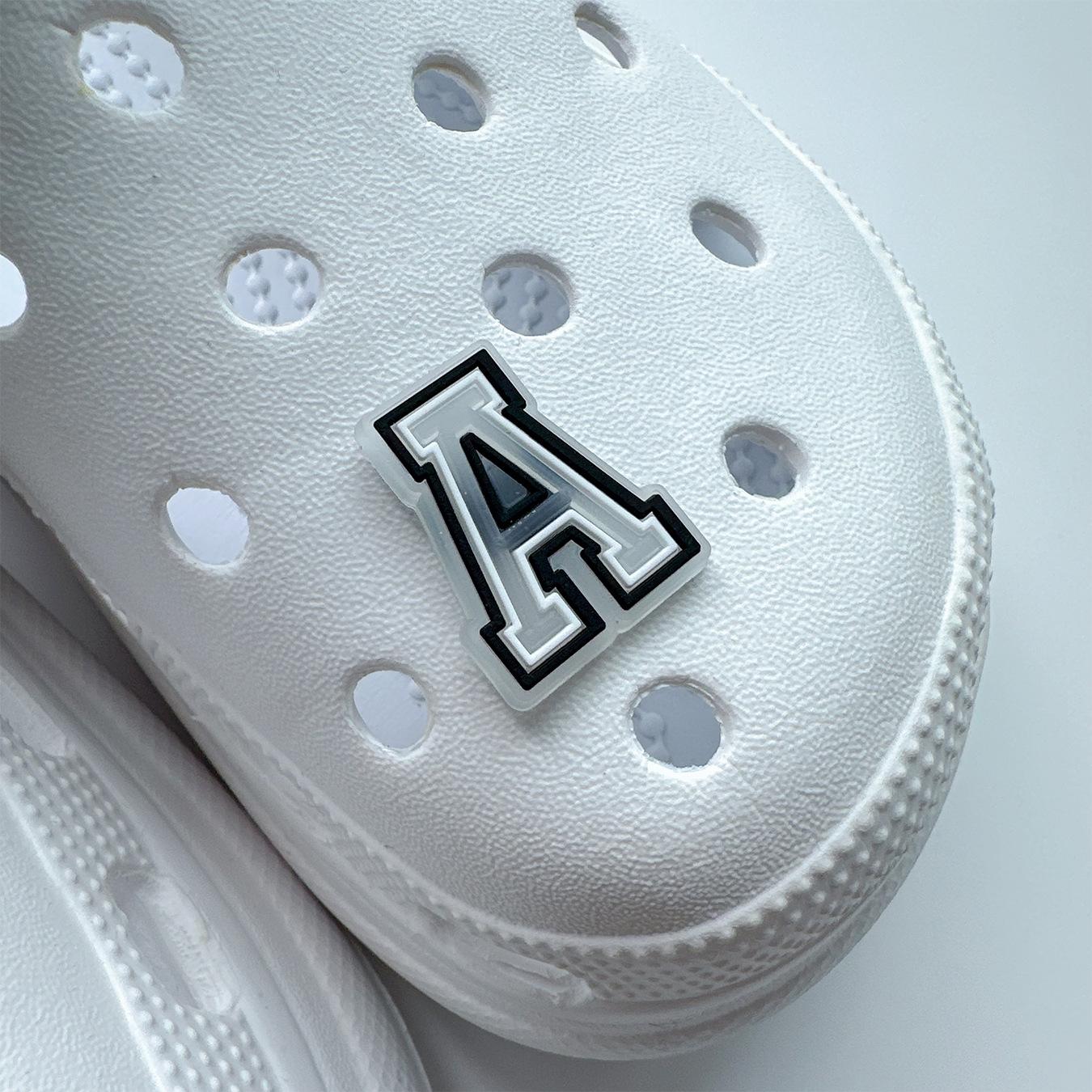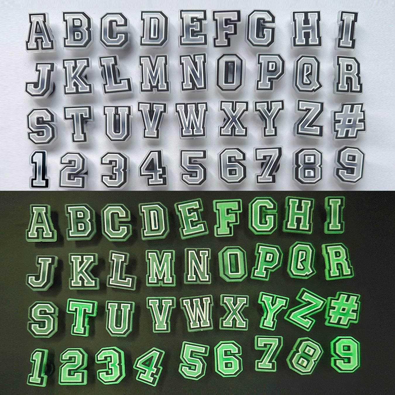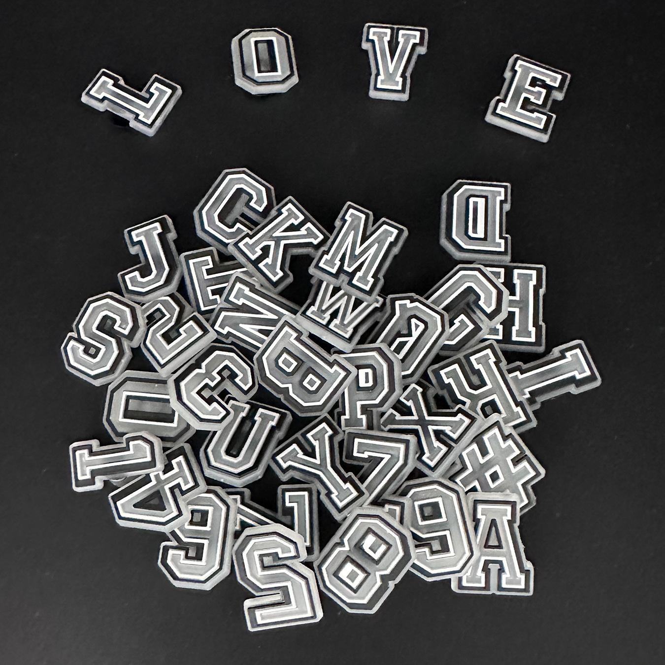 Nuevos Zuecos Luminosos Serie Números Ingleses Blanco y Negro Hebilla de Zapato de Flor Set Zapatos de Jardín de PVC Accesorios para Zapatos DIY