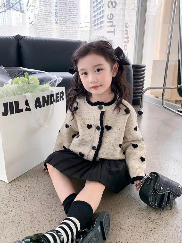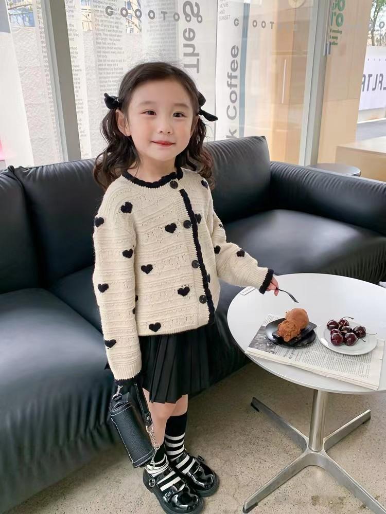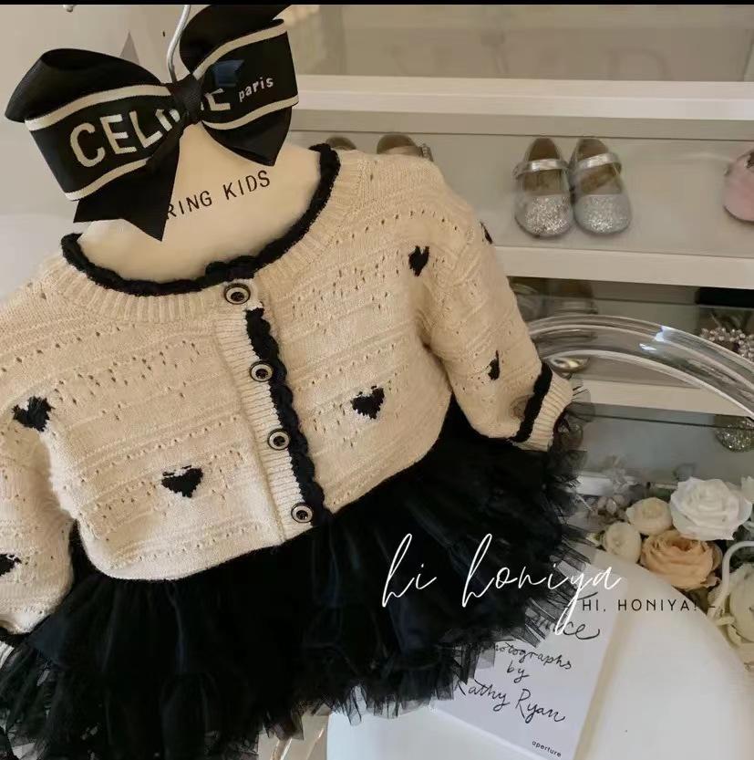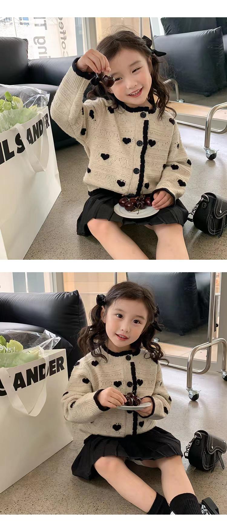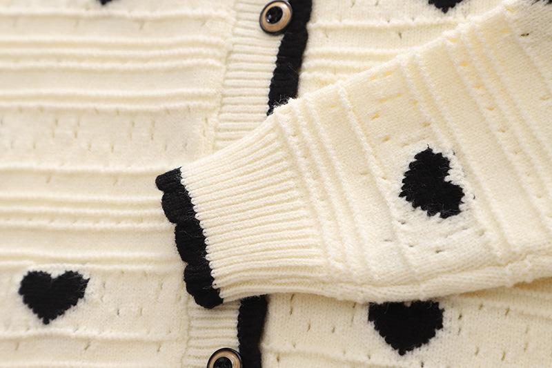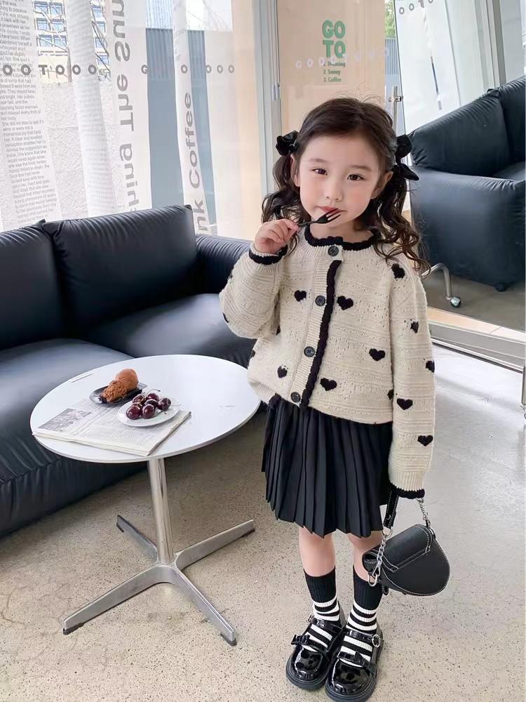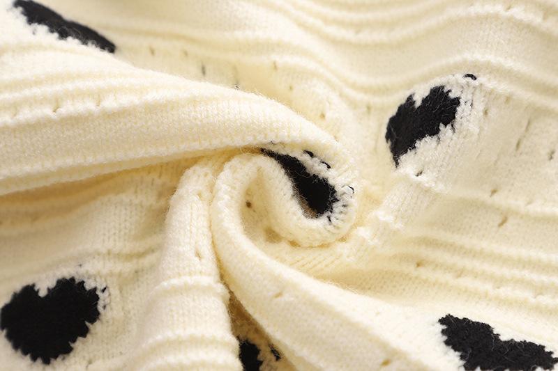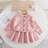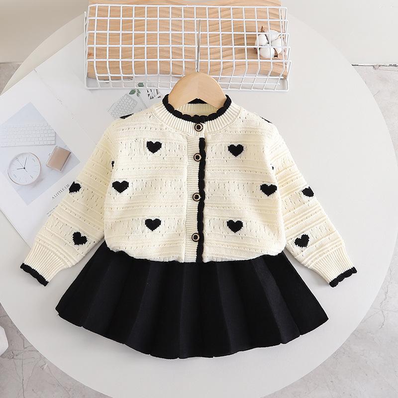 Suéter Cárdigan para Niñas Coreano + Falda 100 veces Otoño e Invierno Nuevo Amor Tejido Manga Larga Falda de Dos Piezas Calado para Mujer