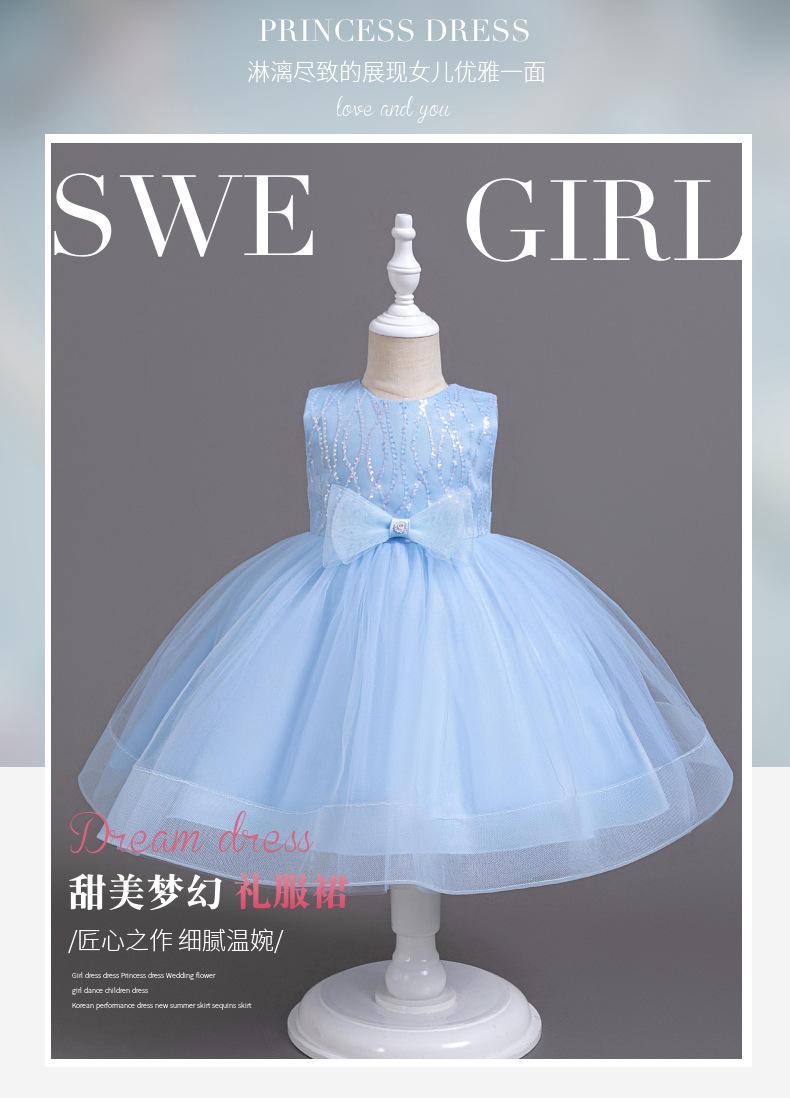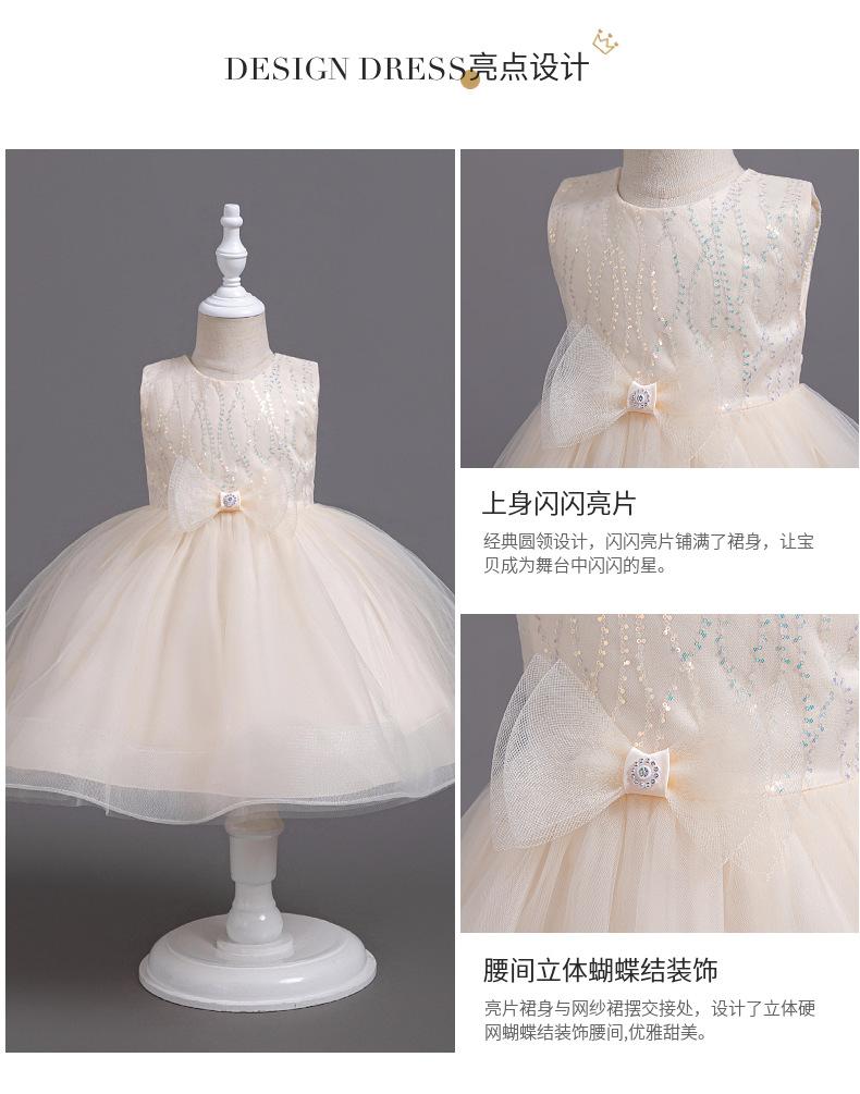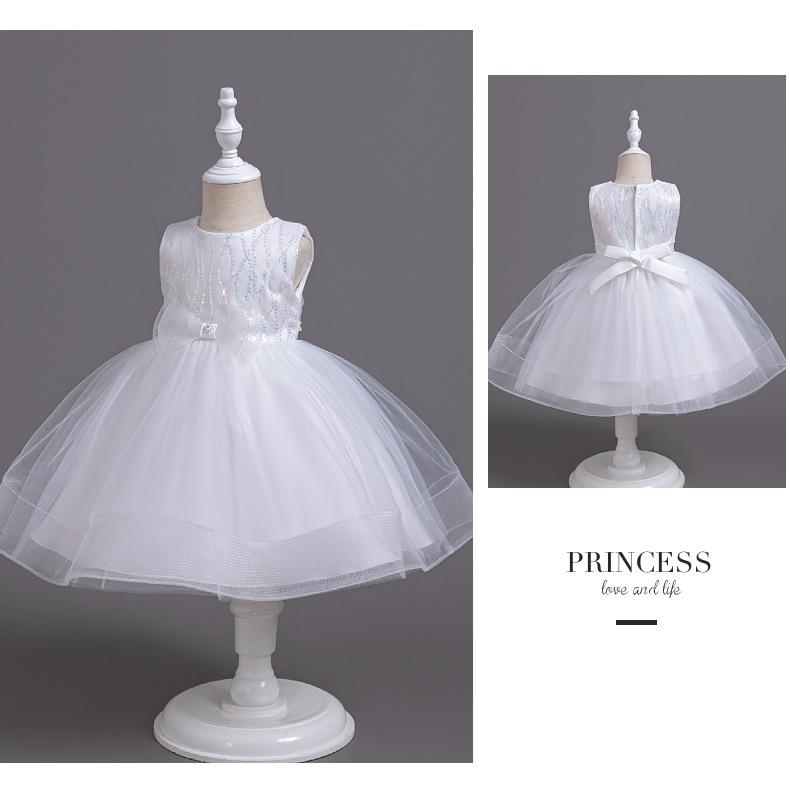 Vestido infantil, vestido de princesa, vestido transfronterizo de verano 2024, ropa infantil, vestido de gasa blanca de actuación para niñas, vestido de cumpleaños infantil