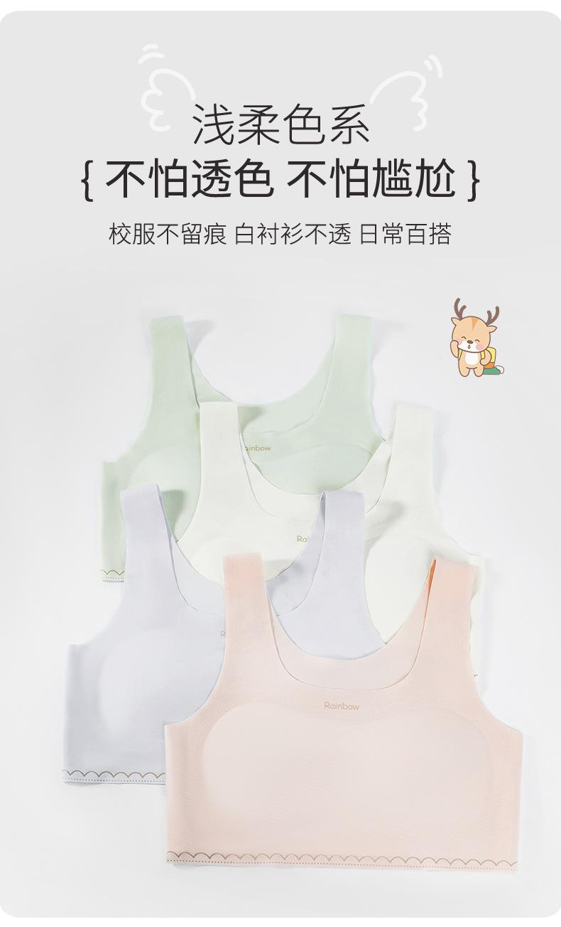 Nuevo Sujetador de Desarrollo Escénico para Niñas Chaleco Sin Costuras Ropa Interior Sin Aro de Acero Copa Fija Tirante Ancho para Hombro Sujetador para Niñas