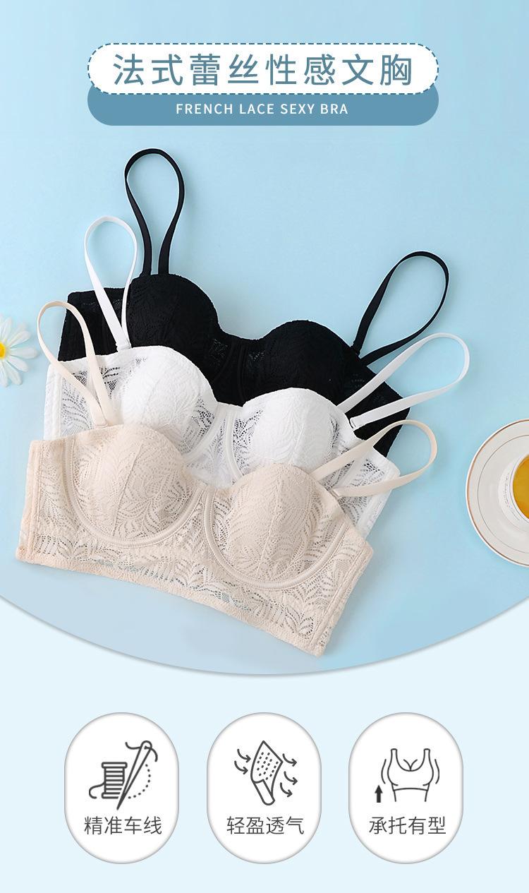 Ropa interior pequeña de estilo francés con pecho grande y copas finas con orejas de conejo, sujetador de encaje antiflacidez, anillo de acero suave, ropa interior sexy, traje